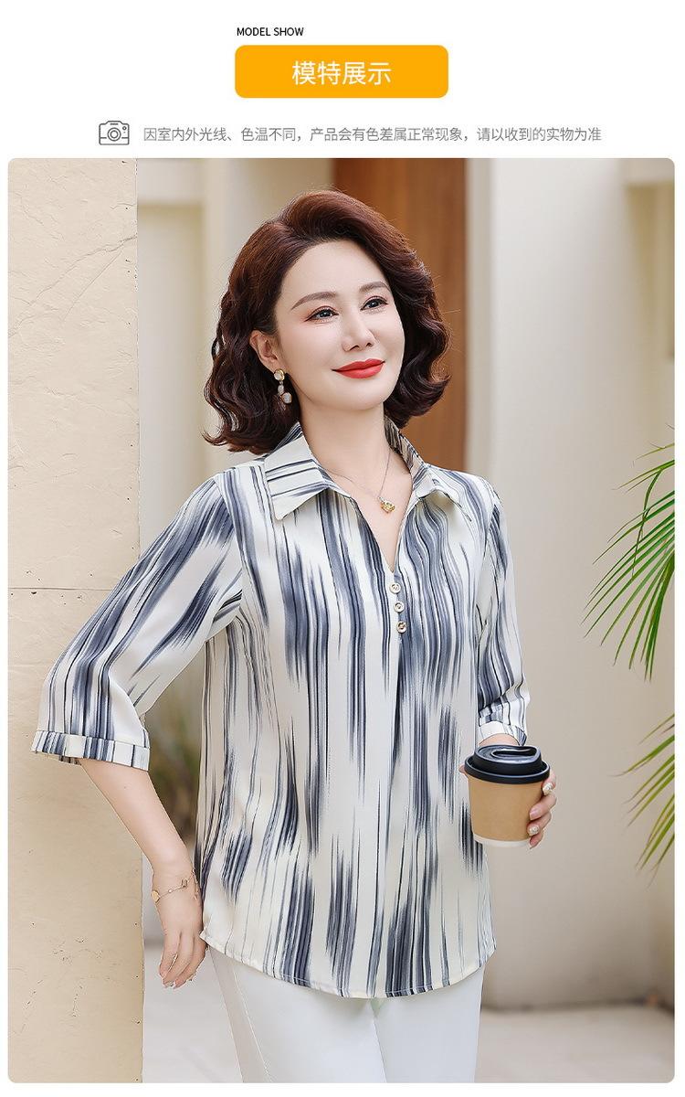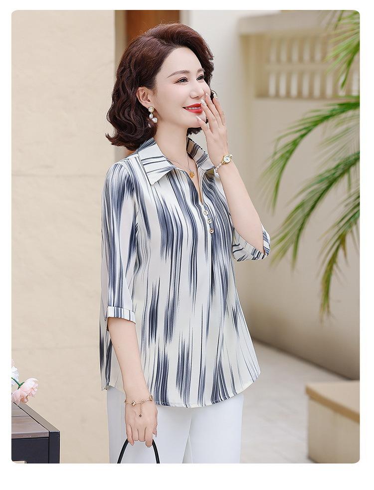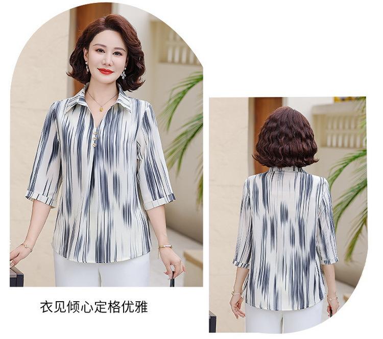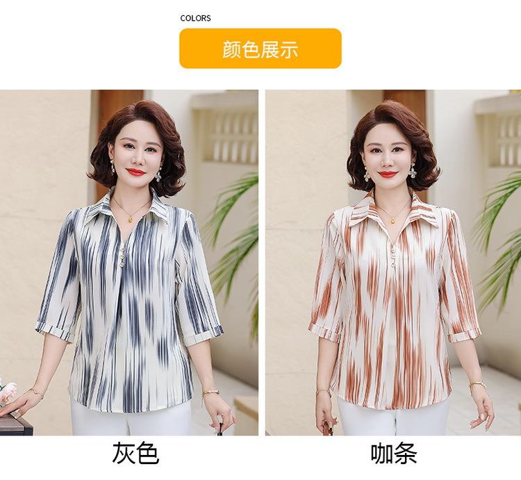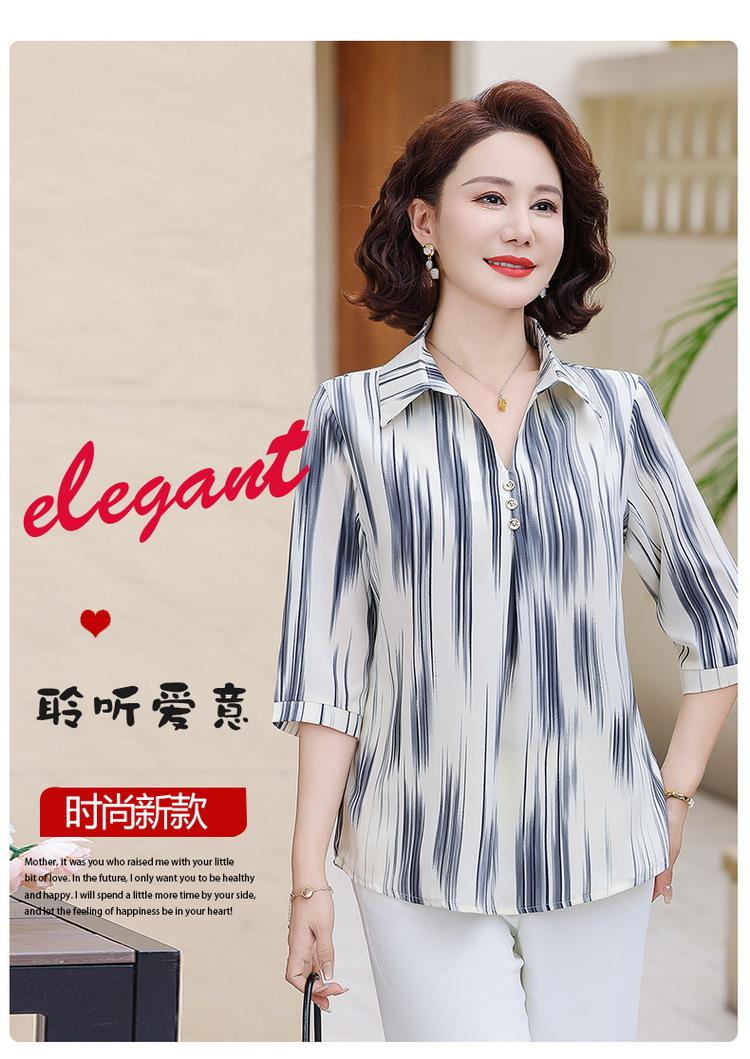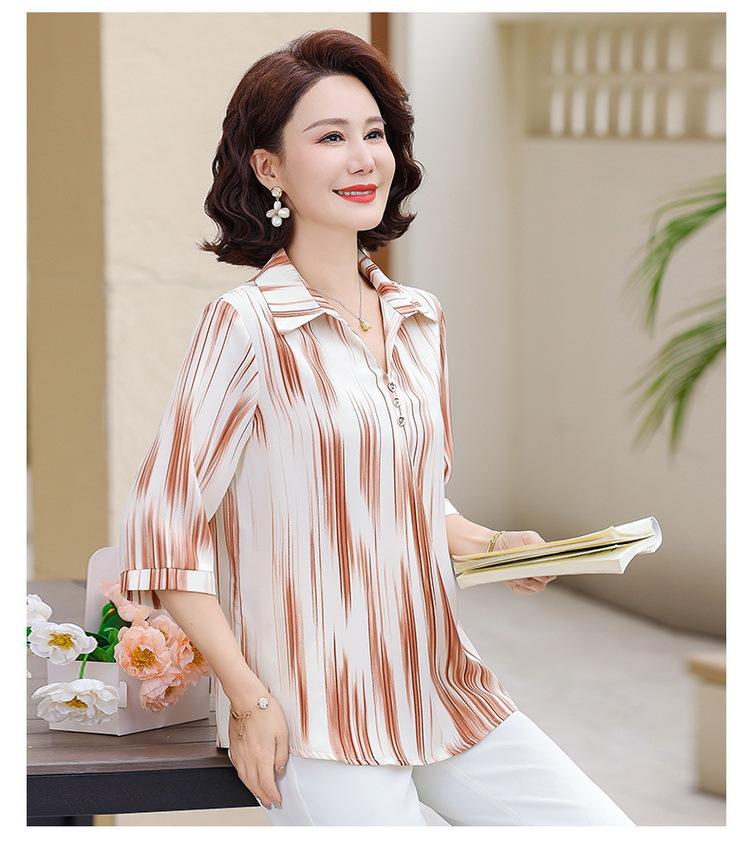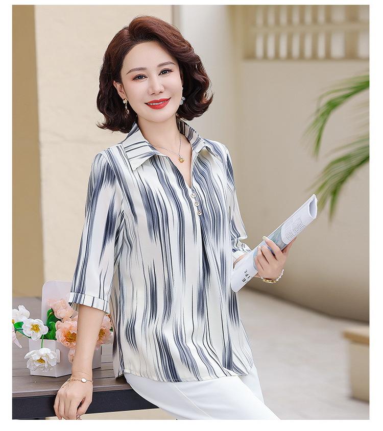 Camisa de Verano de Manga Media para Mamá con Solapa Rayada Ropa para Mujeres de Mediana Edad y Mayores Elegante Camisa de Chifón que Reduce la Edad Camisa de Moda