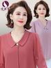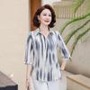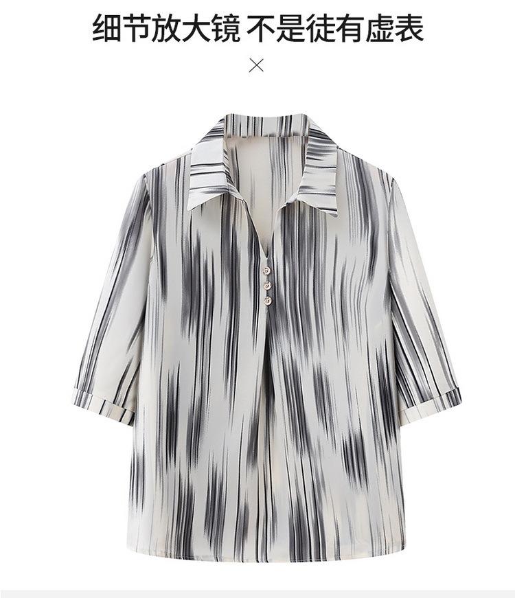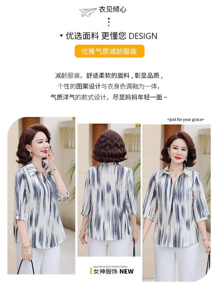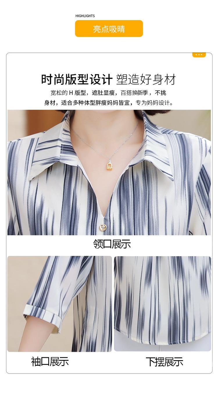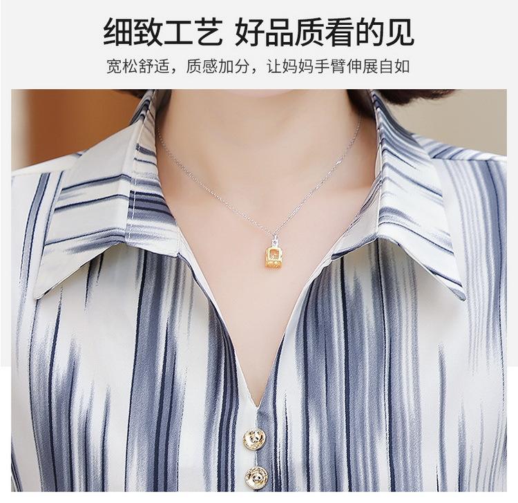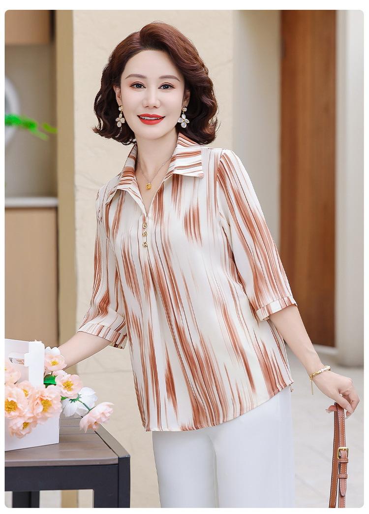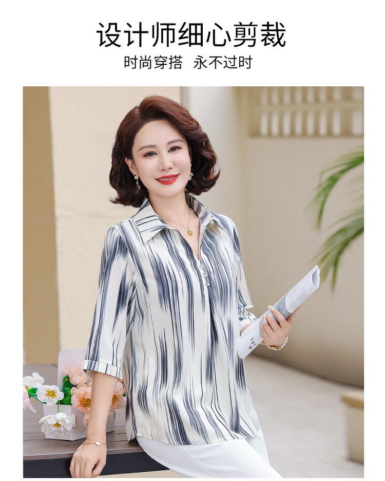 Camisa de Verano de Manga Media para Mamá con Solapa Rayada Ropa para Mujeres de Mediana Edad y Mayores Elegante Camisa de Chifón que Reduce la Edad Camisa de Moda