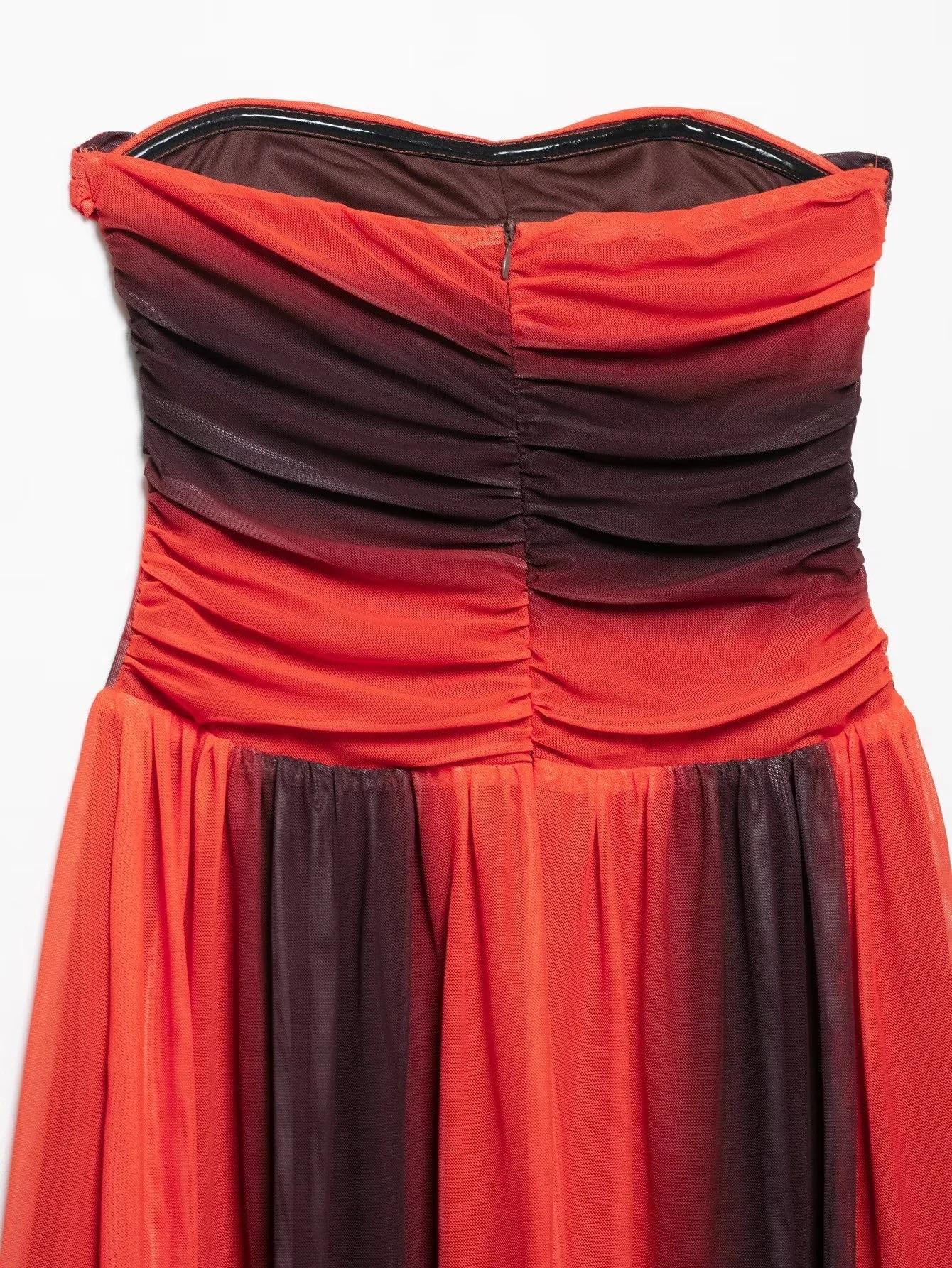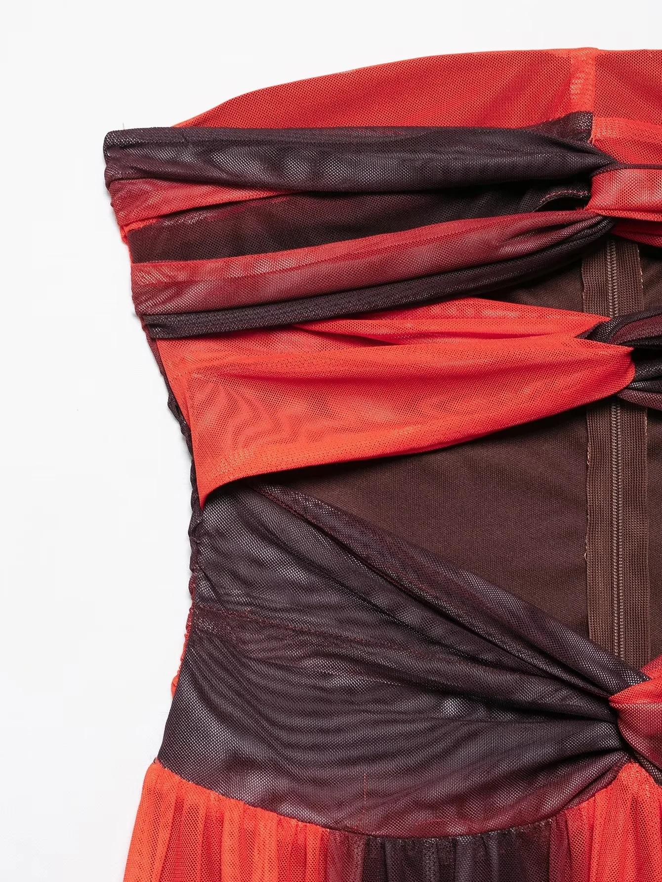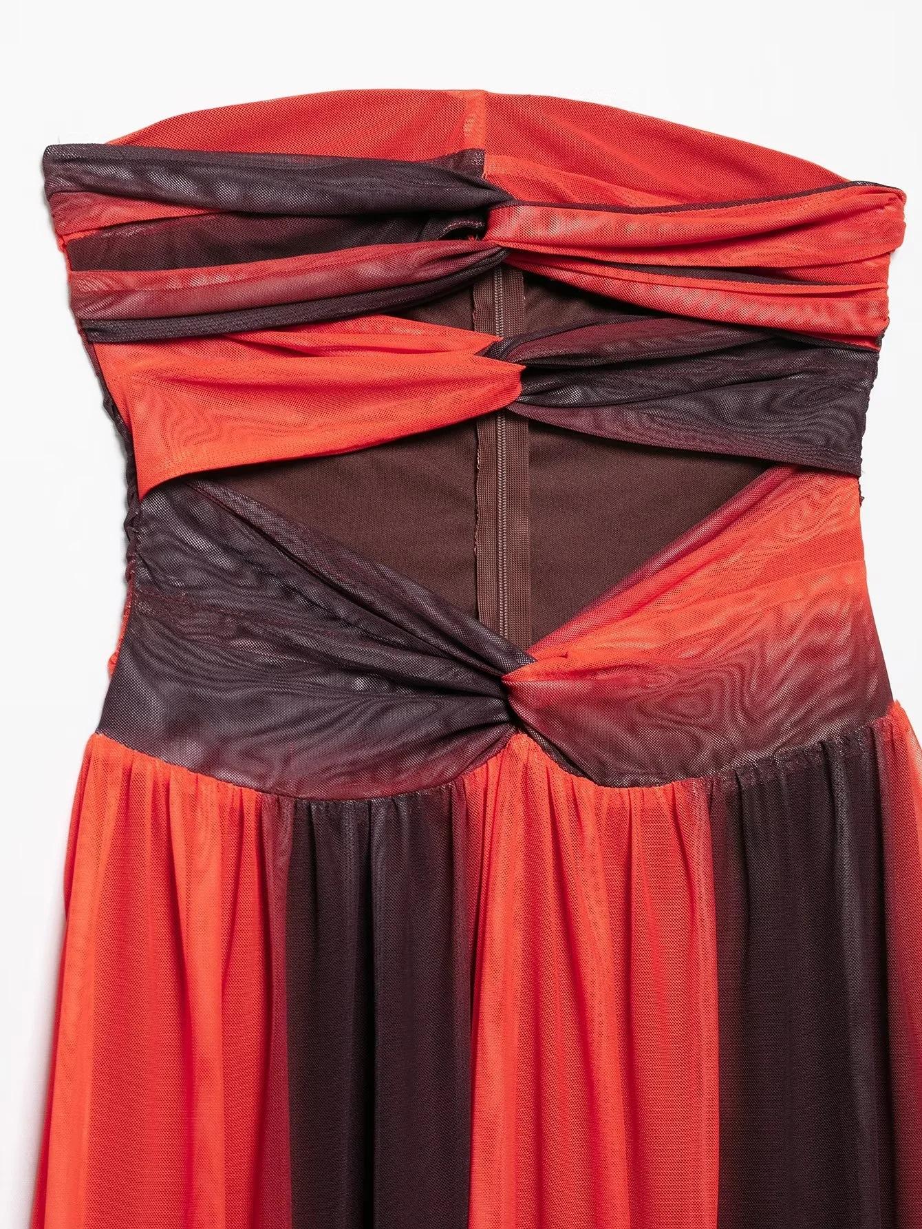 Ropa Europea y Americana Transfronteriza Aliexpress Popular Top de Tubo Estampado Hueco Sin Espalda Vestido de Malla