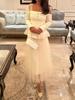Traje de Dos Piezas para Mujer - Top de Malla Patchwork con Cuello Cuadrado + Falda de Cintura Alta de Longitud Media - Moda Primavera 2026