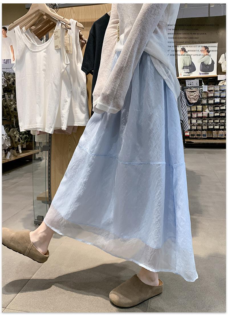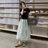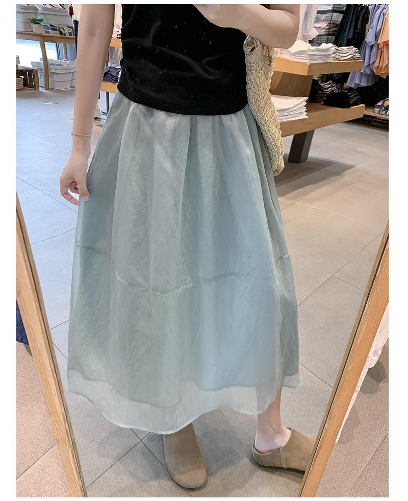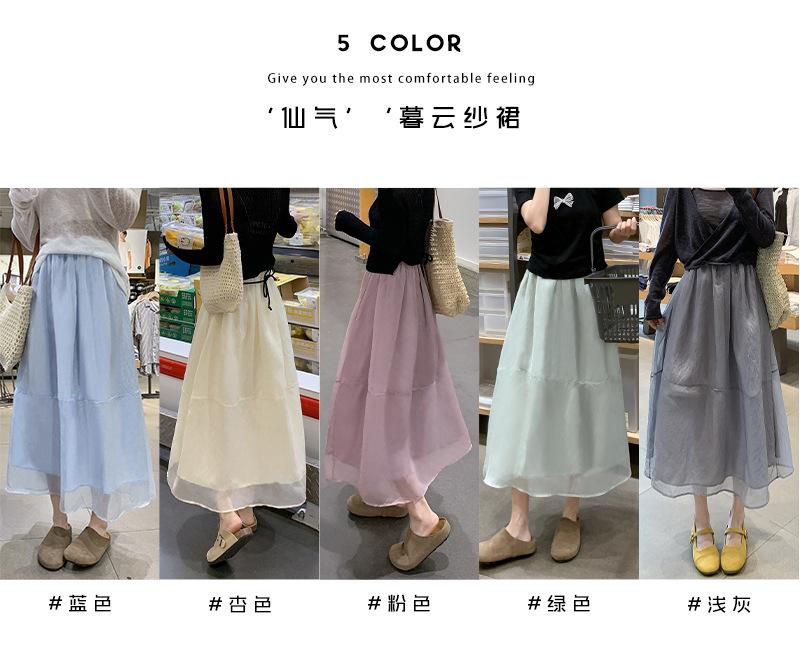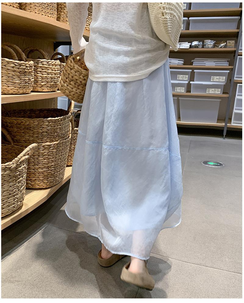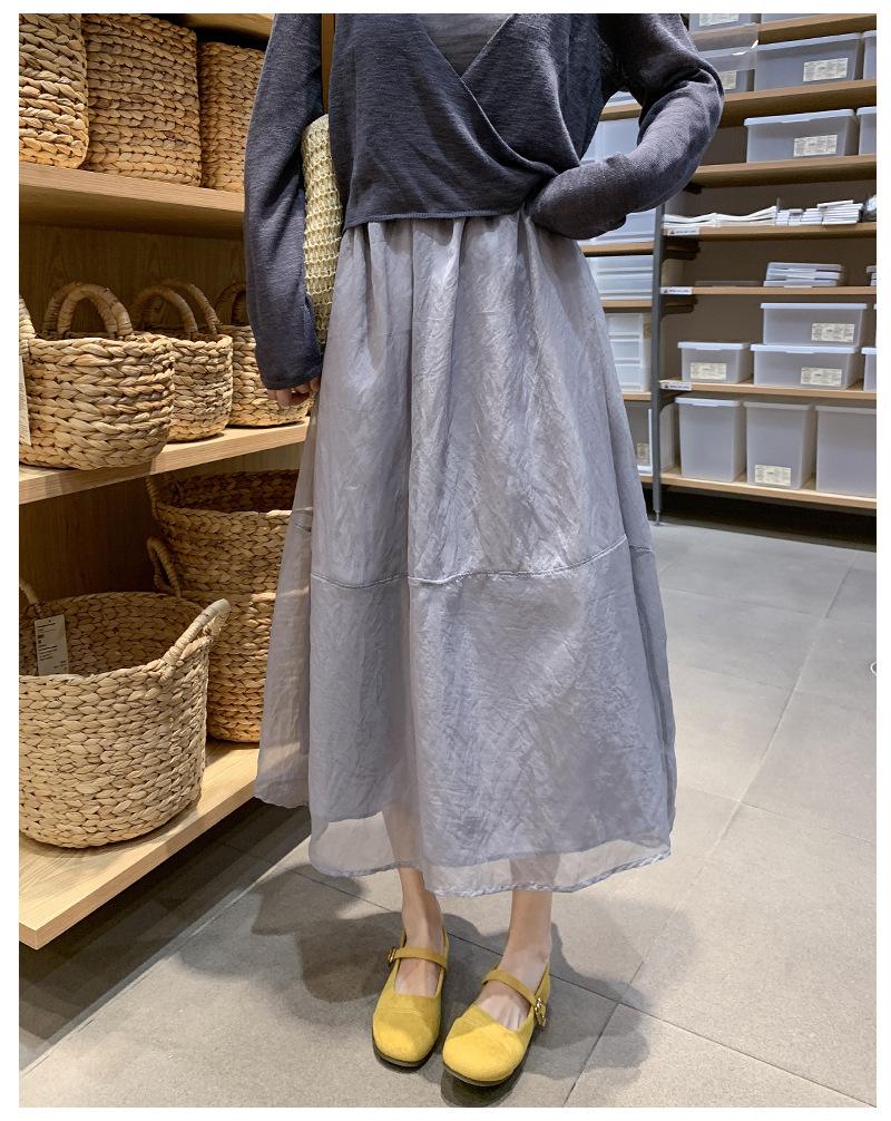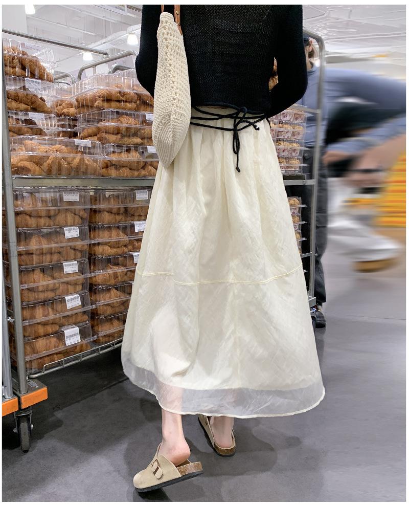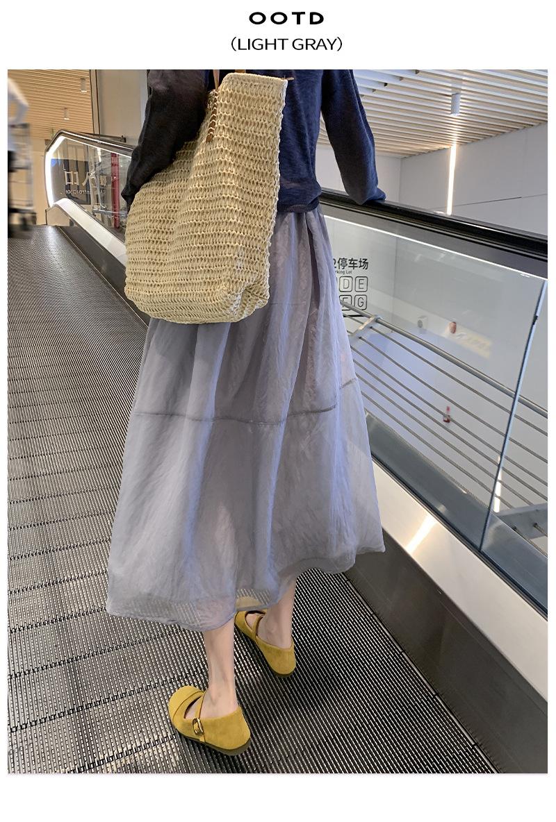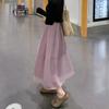 Falda de Malla Francesa para Mujer Verano Cintura Alta Línea A Midi Falda Tutú Suelta Dobladillo Grande Organza Falda Paraguas