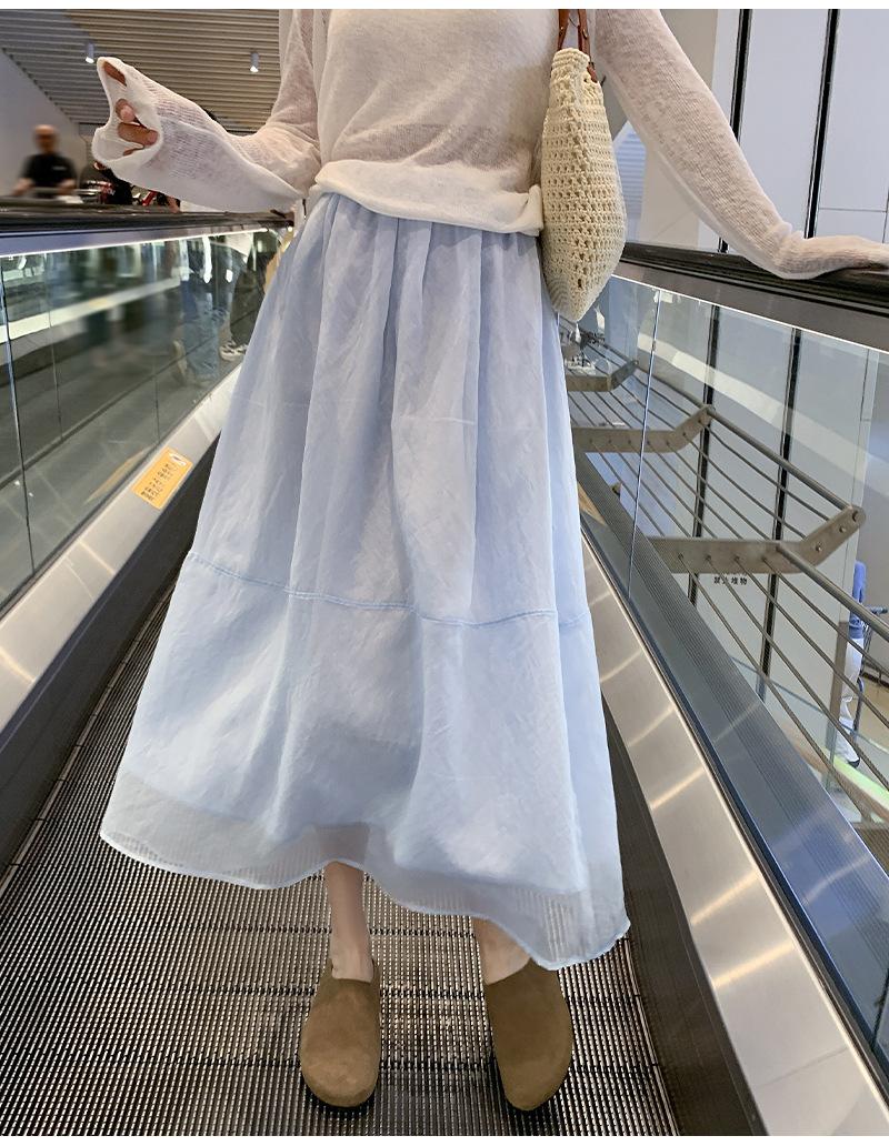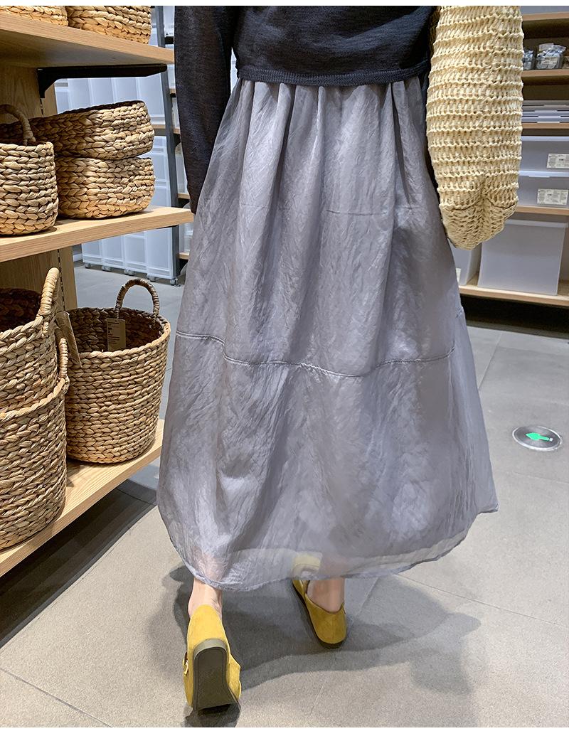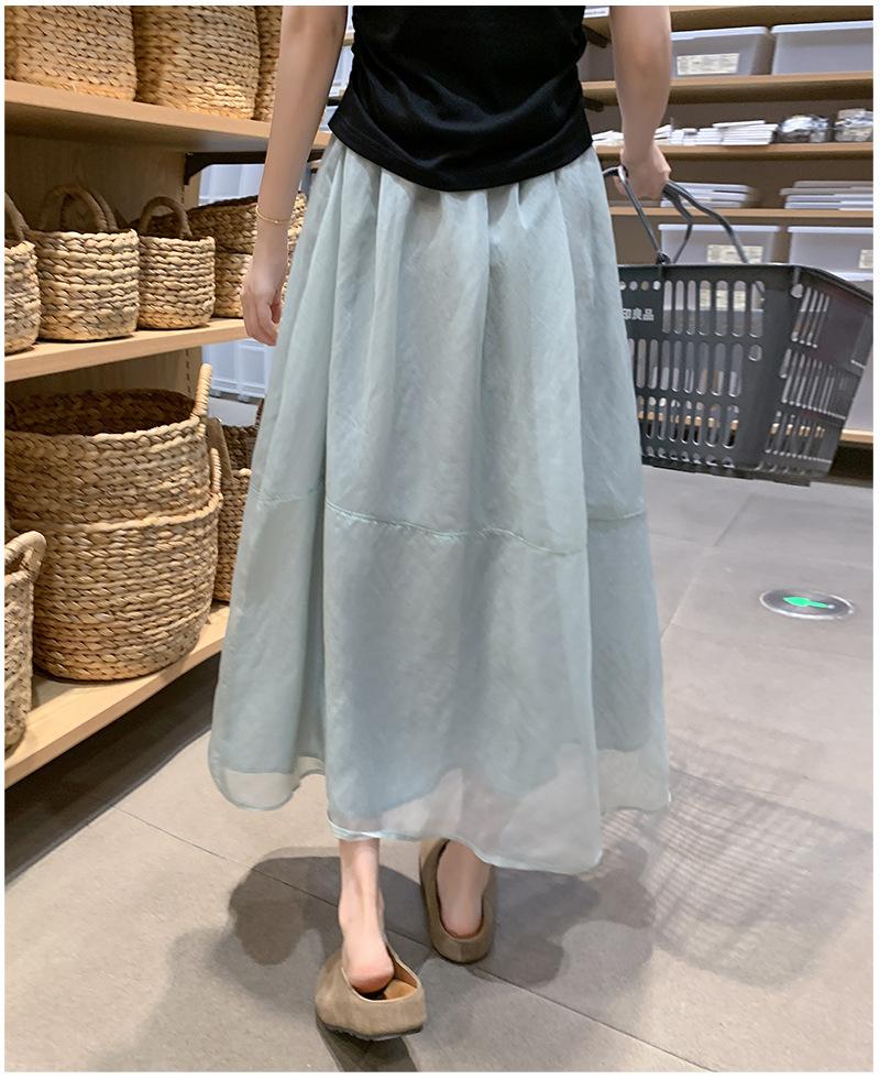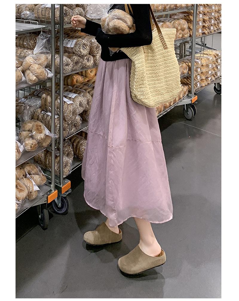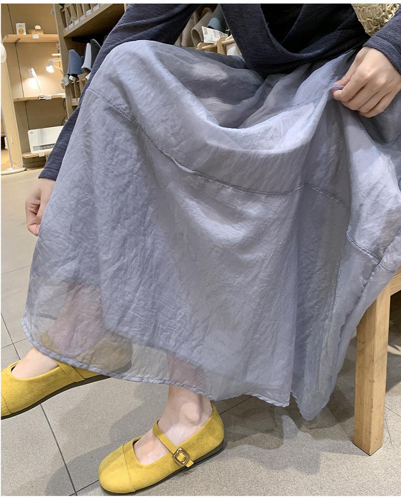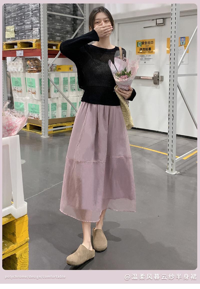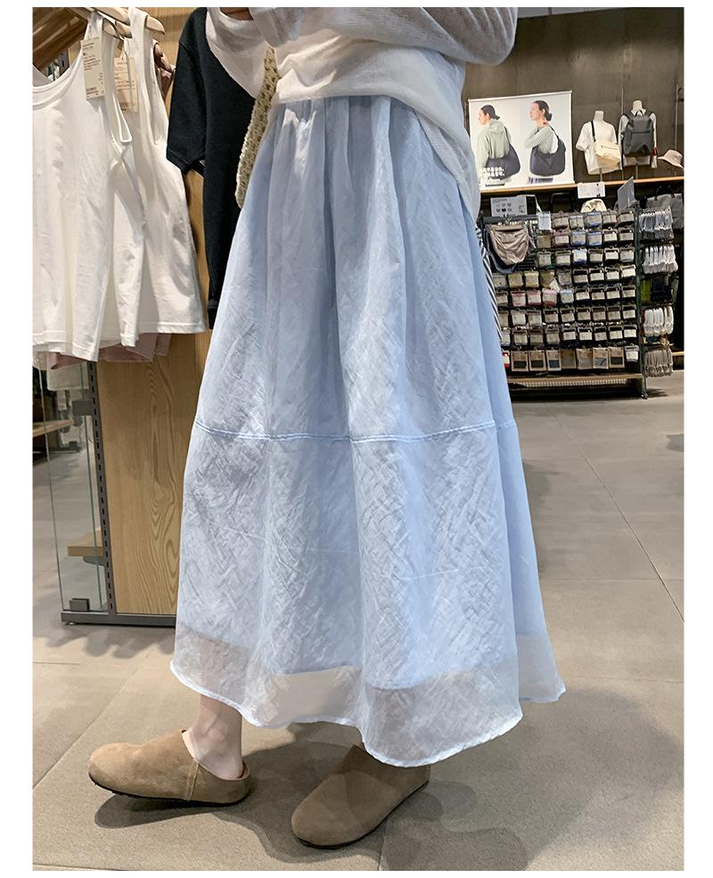 Falda de Malla Francesa para Mujer Verano Cintura Alta Línea A Midi Falda Tutú Suelta Dobladillo Grande Organza Falda Paraguas