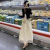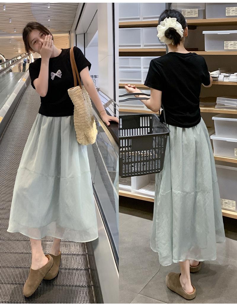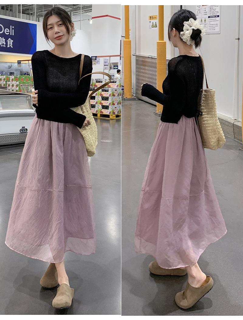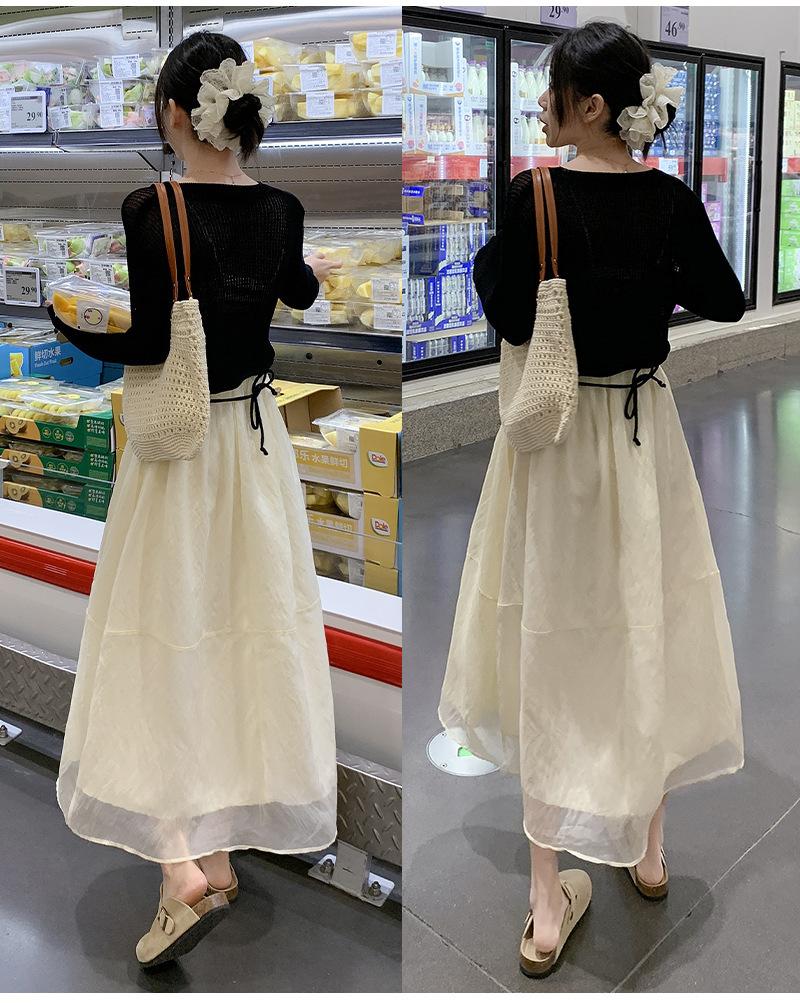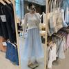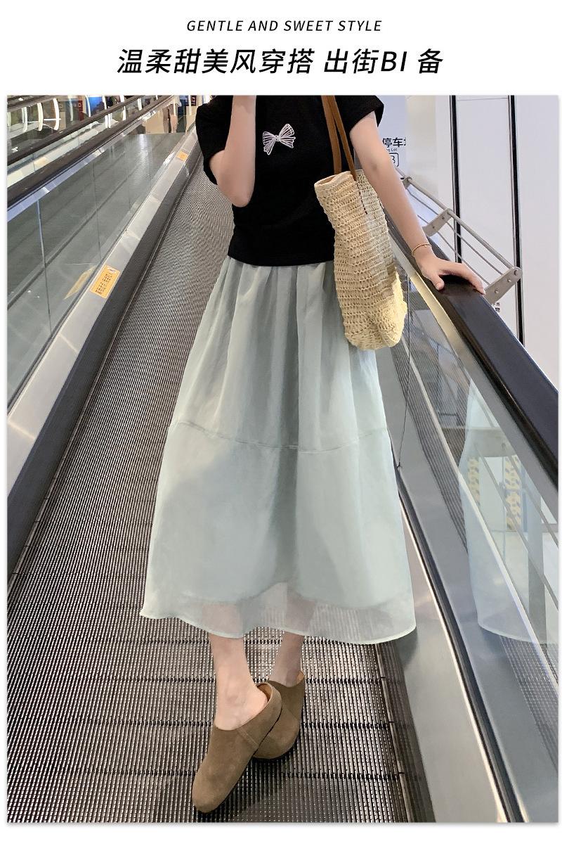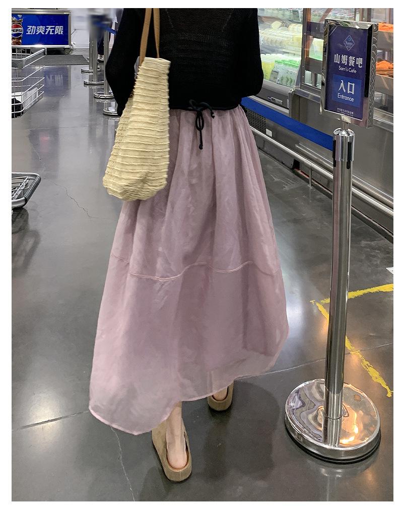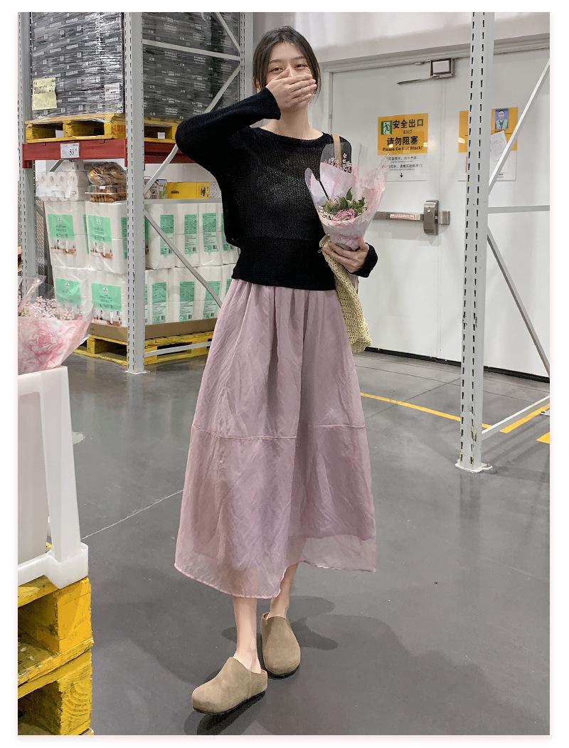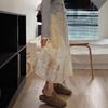 Falda de Malla Francesa para Mujer Verano Cintura Alta Línea A Midi Falda Tutú Suelta Dobladillo Grande Organza Falda Paraguas