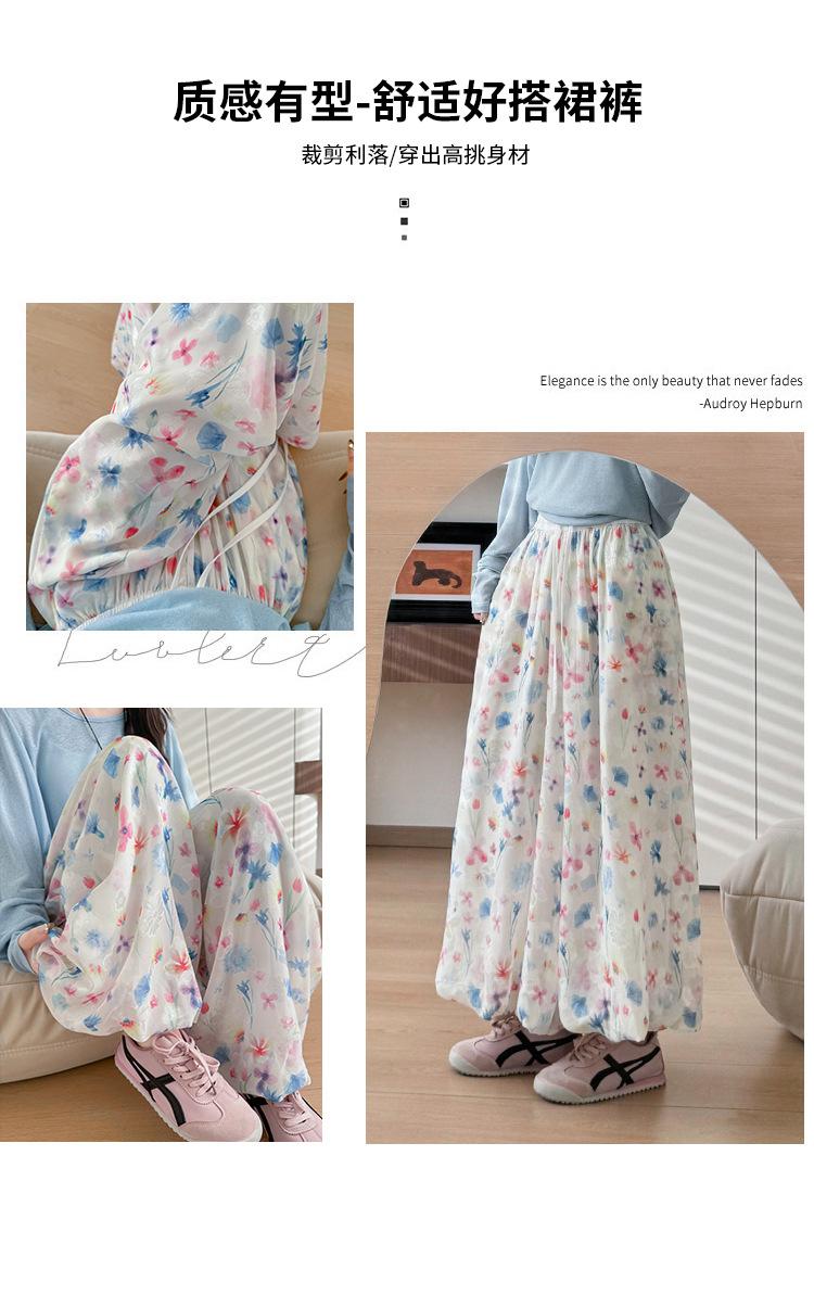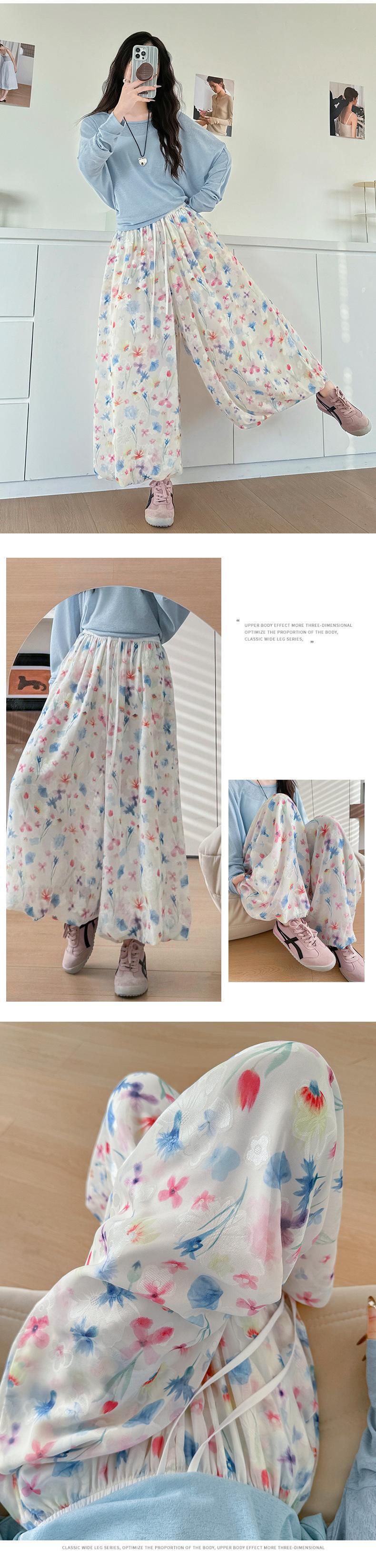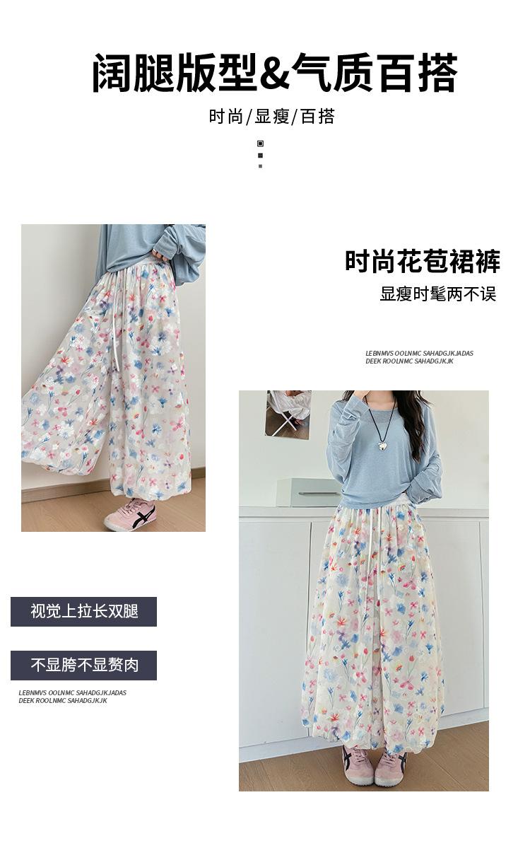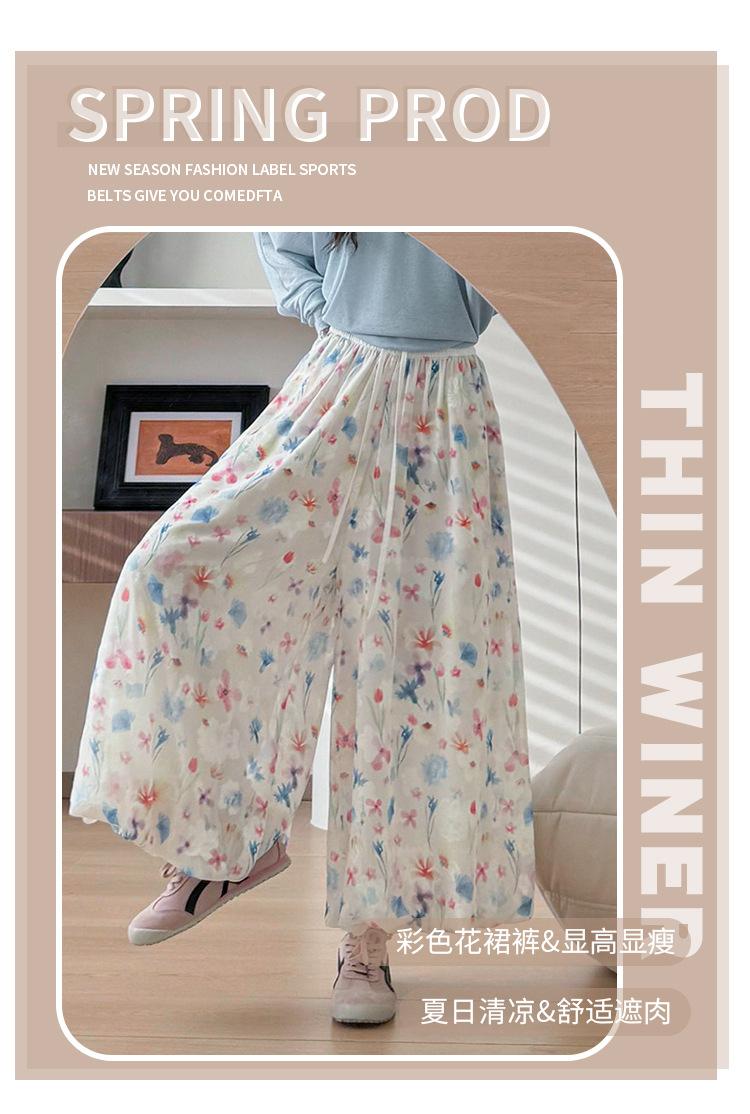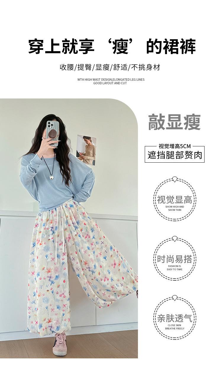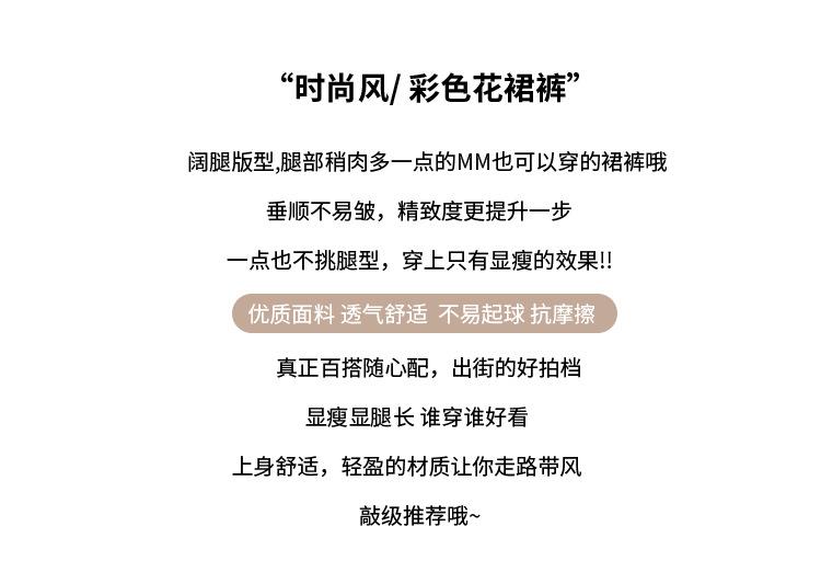 Pantalones Falda Capullo de Flor Coloridos Pantalones de Verano para Mujer Delgados con Caída Suelta Falda Cintura Alta Pequeña Pantalones de Pierna Ancha de Seda Helada