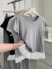 Playera Coreana Dulce Hottie con Encaje Empalmado de Manga Corta 2025 Verano Nuevo Ajuste Slim Top Versátil para Mujer