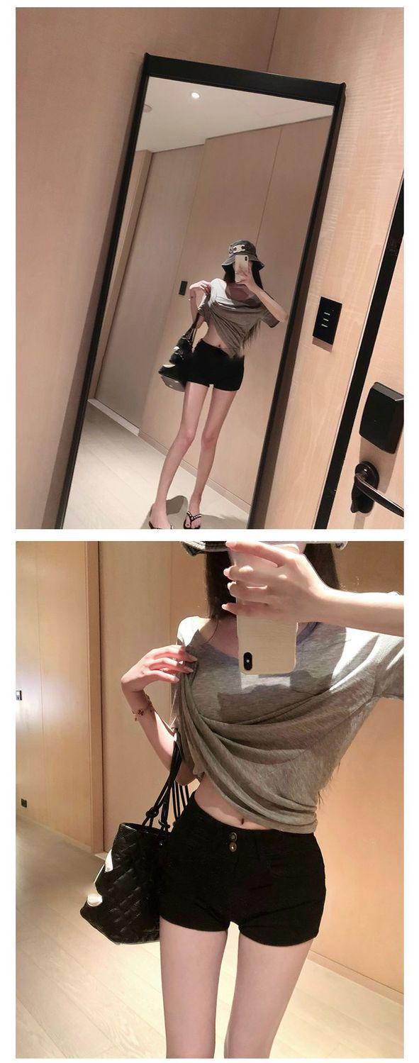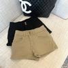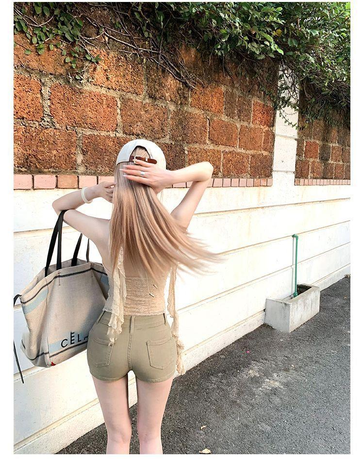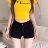 Shorts de Mezclilla Elástica Negros American Hot Girl para Mujer Primavera y Verano Nuevo Estilo Slim Cintura Baja Adelgazantes Ajustados a la Cadera Hot Pants
