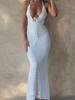Amazon Falda Larga Tejida Sexy sin Espalda Falda de Playa 2024 Primavera y Verano Cuello Comercio Exterior Transfronterizo Vestido Europeo y Americano