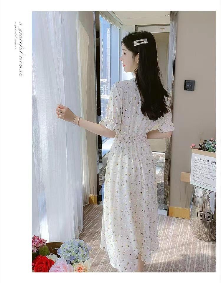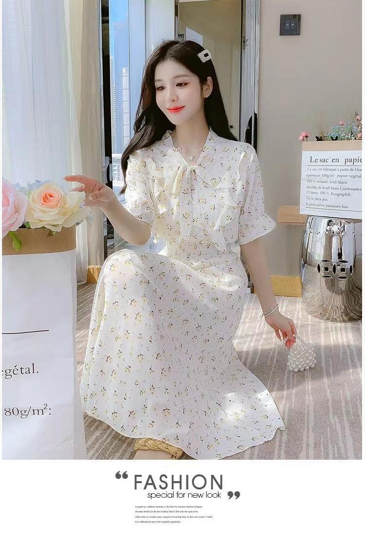 Vestido nuevo de primavera y verano 2024, chic francés, floral, de gasa, para mujer, temperamento de alta gama, delgado, pequeño