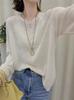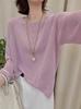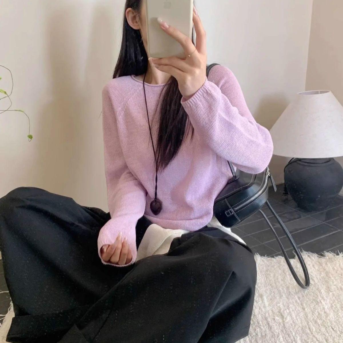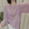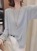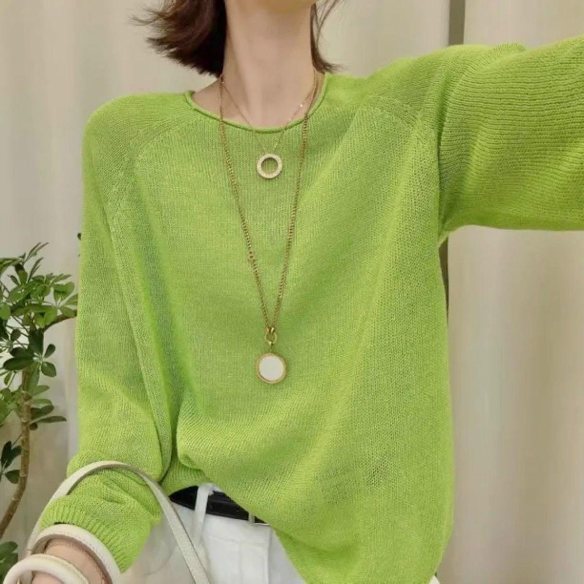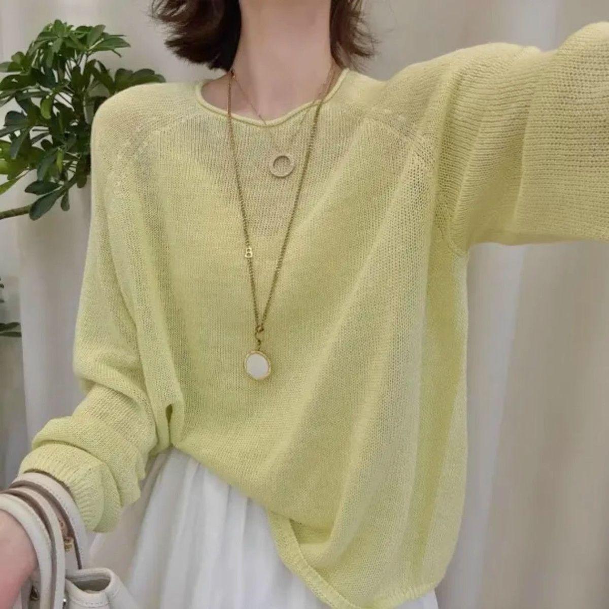 Tejido de punto de manga larga de color puro de alta gama estilo coreano a la moda para mujer 2025 verano nuevo cuello redondo blusa top protección solar