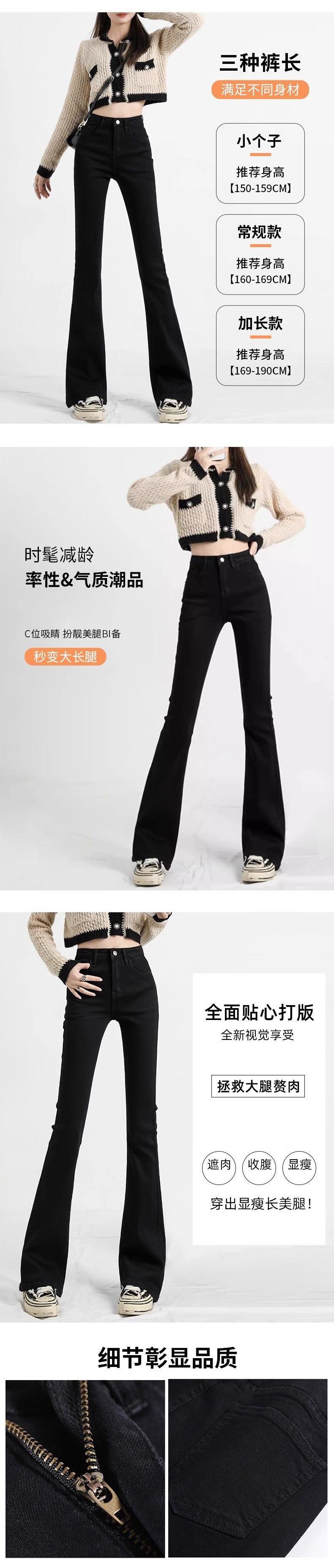 Jeans Negros de Mujer Primavera y Verano 2024 Nuevos Pantalones Elásticos Microacampanados Cintura Súper Alta Ajustados Pantalones Herradura