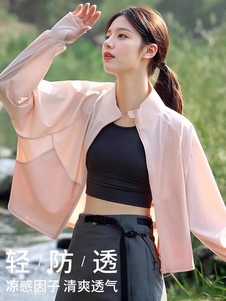 Ropa de Protección Solar para Mujer Verano Nuevo Hilo Original Seda de Hielo Protección UV Ropa de Protección Solar Deportes al Aire Libre Transpirable Fresco Abrigo Corto