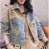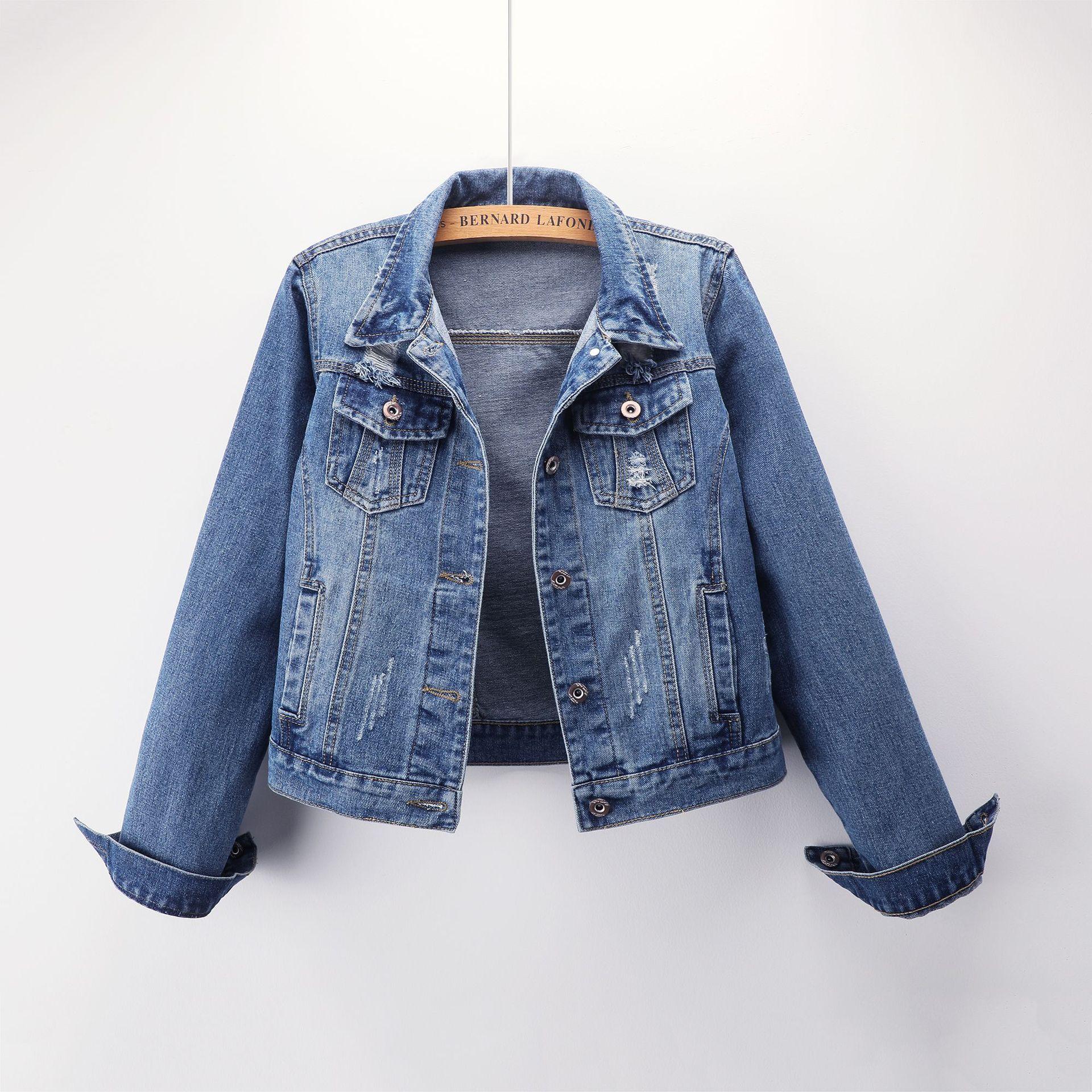 Abrigo de Mujer Talla Grande 2022 Nuevo Comercio Exterior Primavera y Otoño Abrigo de Mezclilla para Mujer Suelto Manga Larga Top Corto Chaqueta
