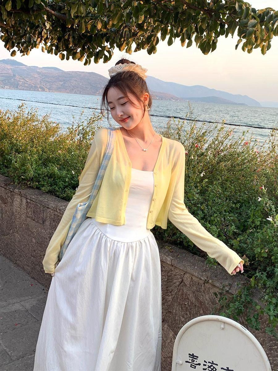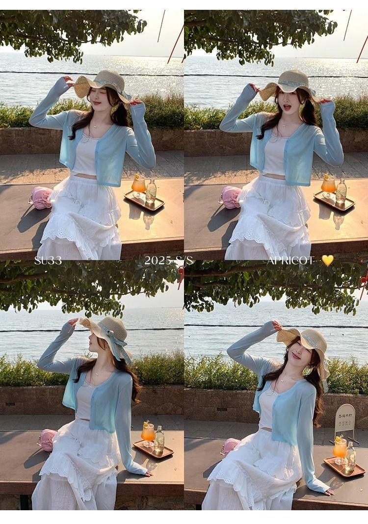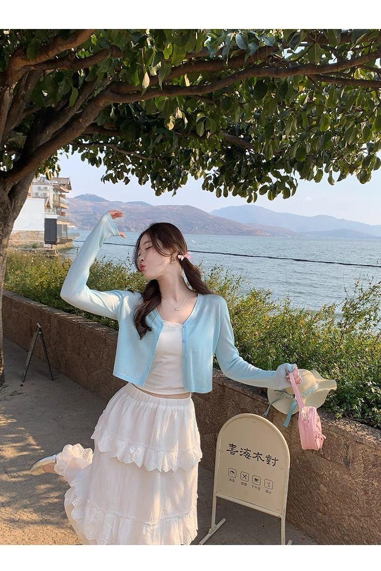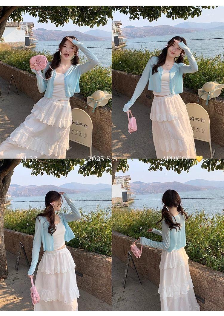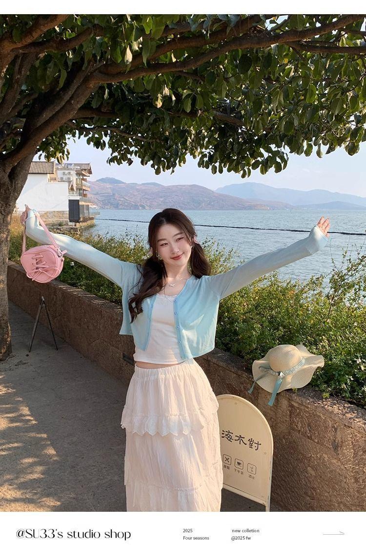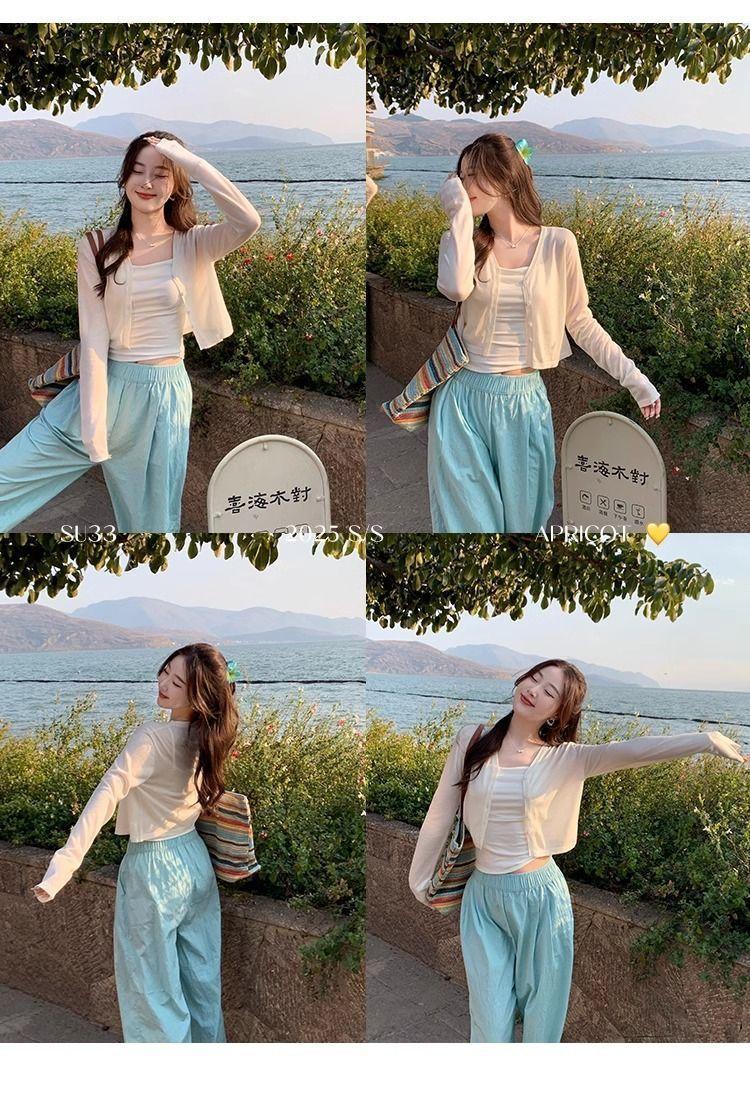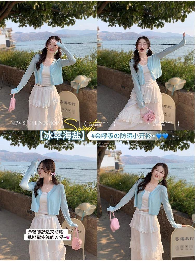Cárdigan Corto de Seda Helada para Protección Solar para Mujer Verano 2025 Nueva Ropa Exterior con Camisola Cobertura Delgada Top de Punto