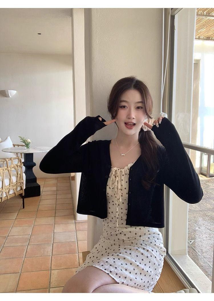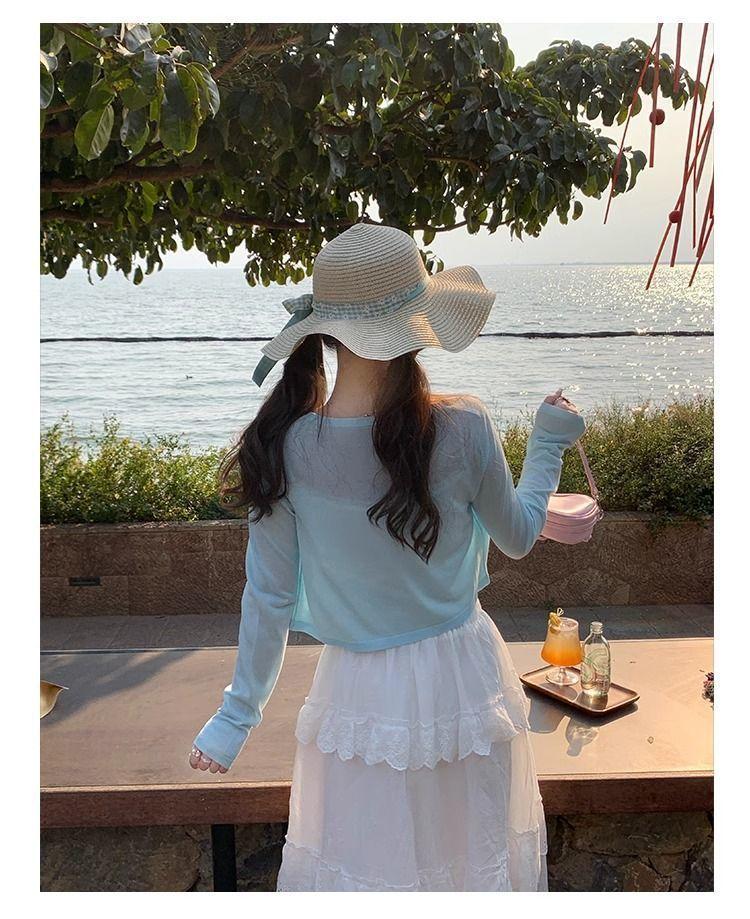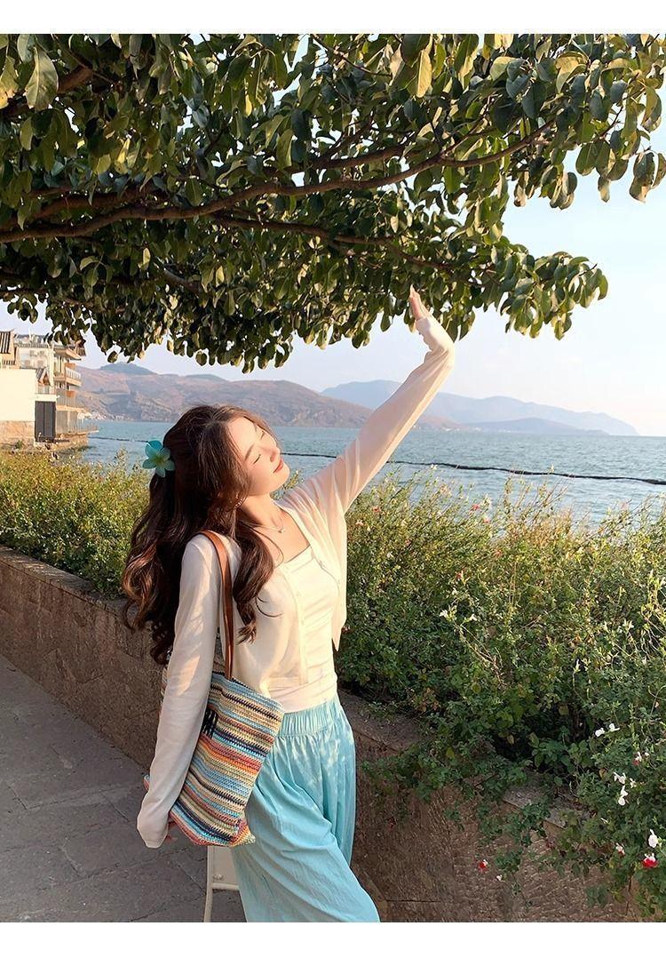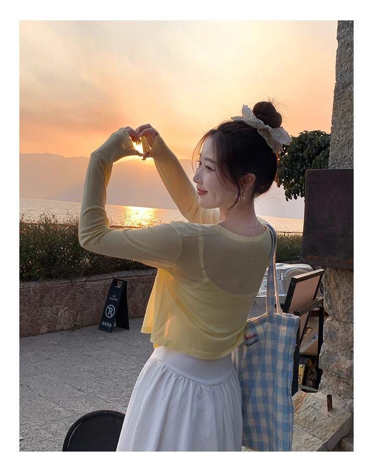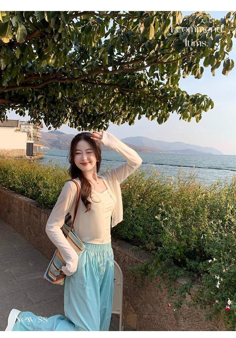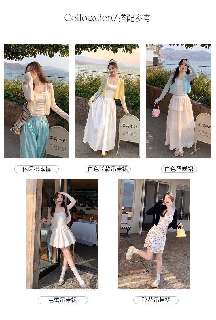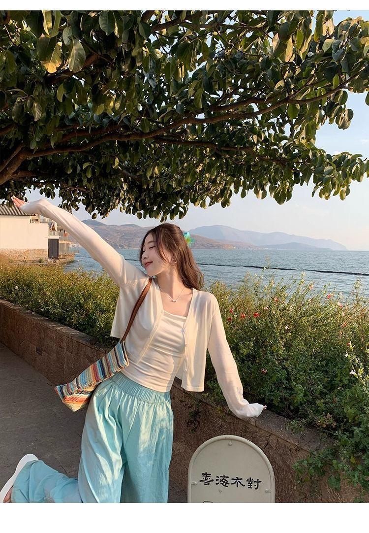 Chal corto de seda de hielo Cárdigan de protección solar para mujer Verano Nuevo Ropa exterior con tirantes Blusa delgada Top de punto