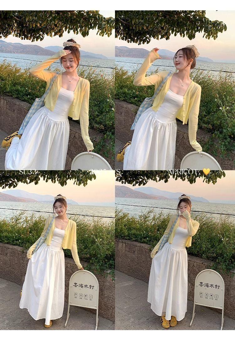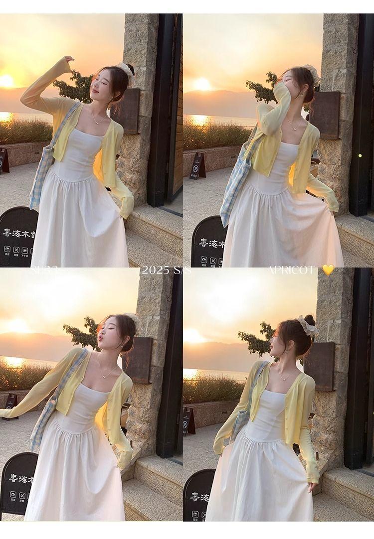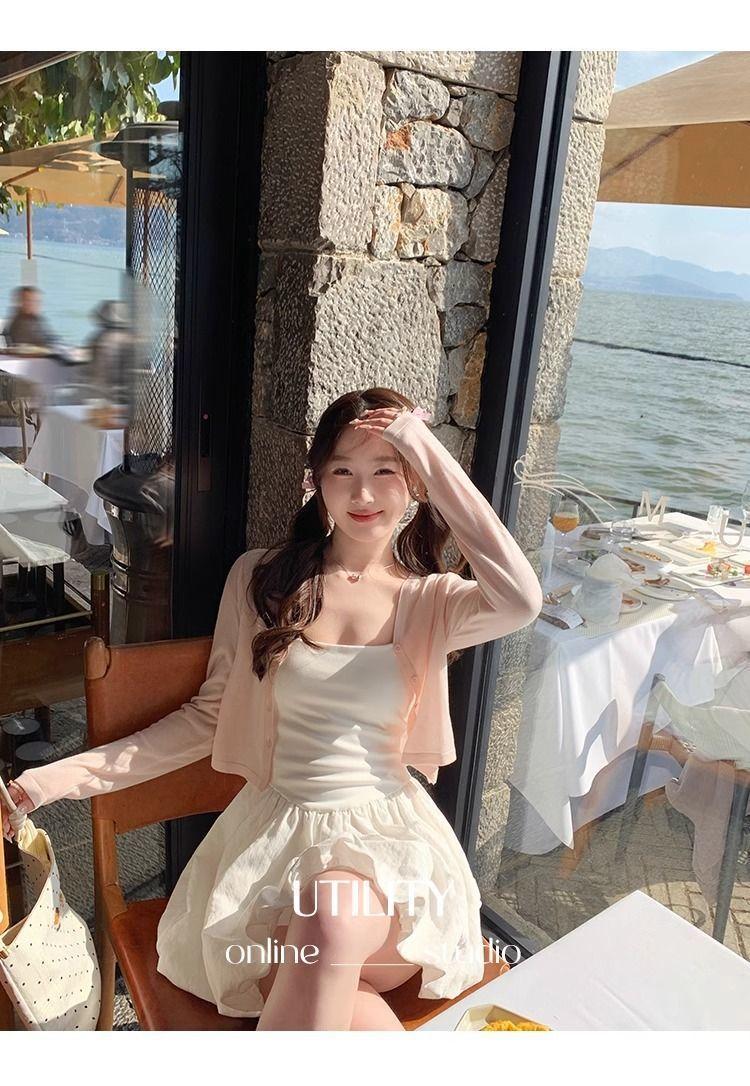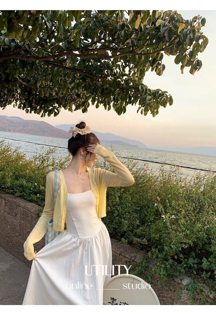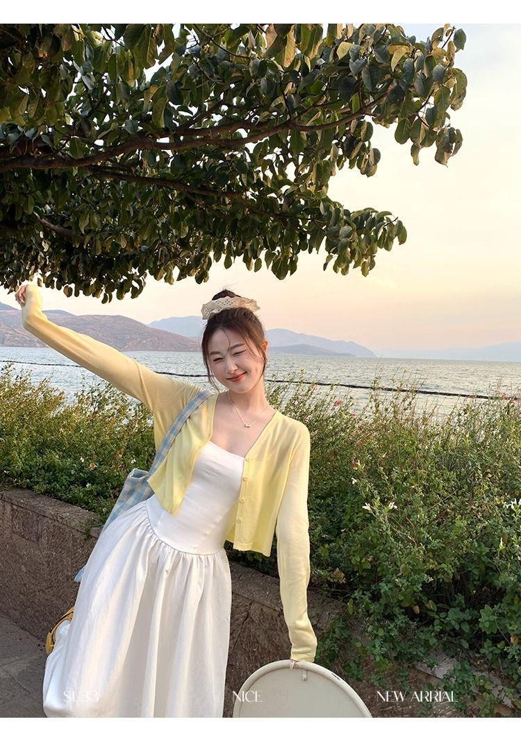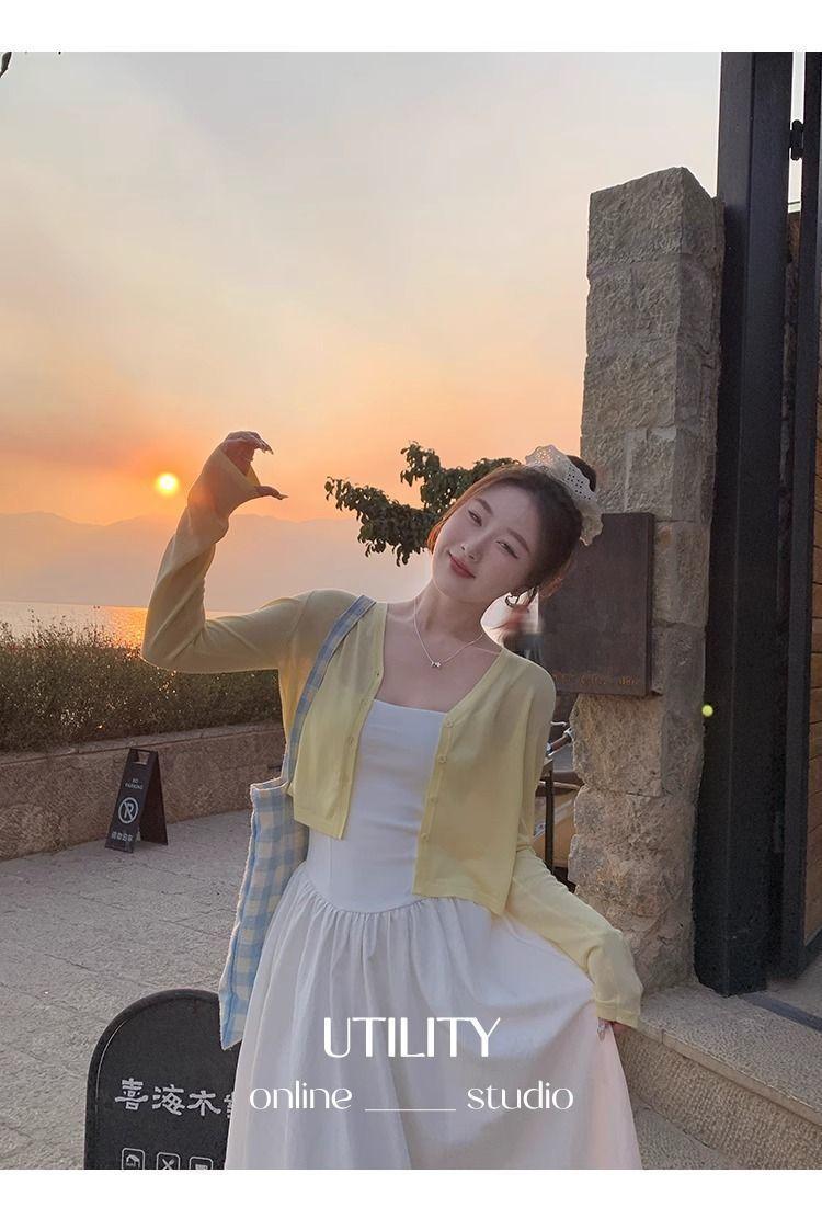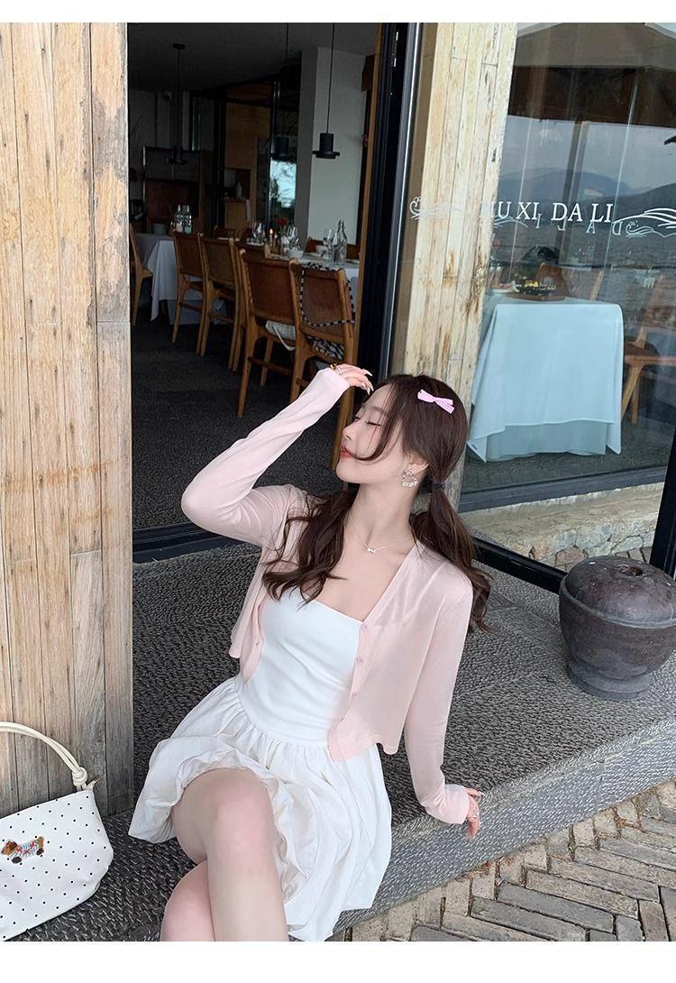 Chal corto de seda de hielo Cárdigan de protección solar para mujer Verano Nuevo Ropa exterior con tirantes Blusa delgada Top de punto