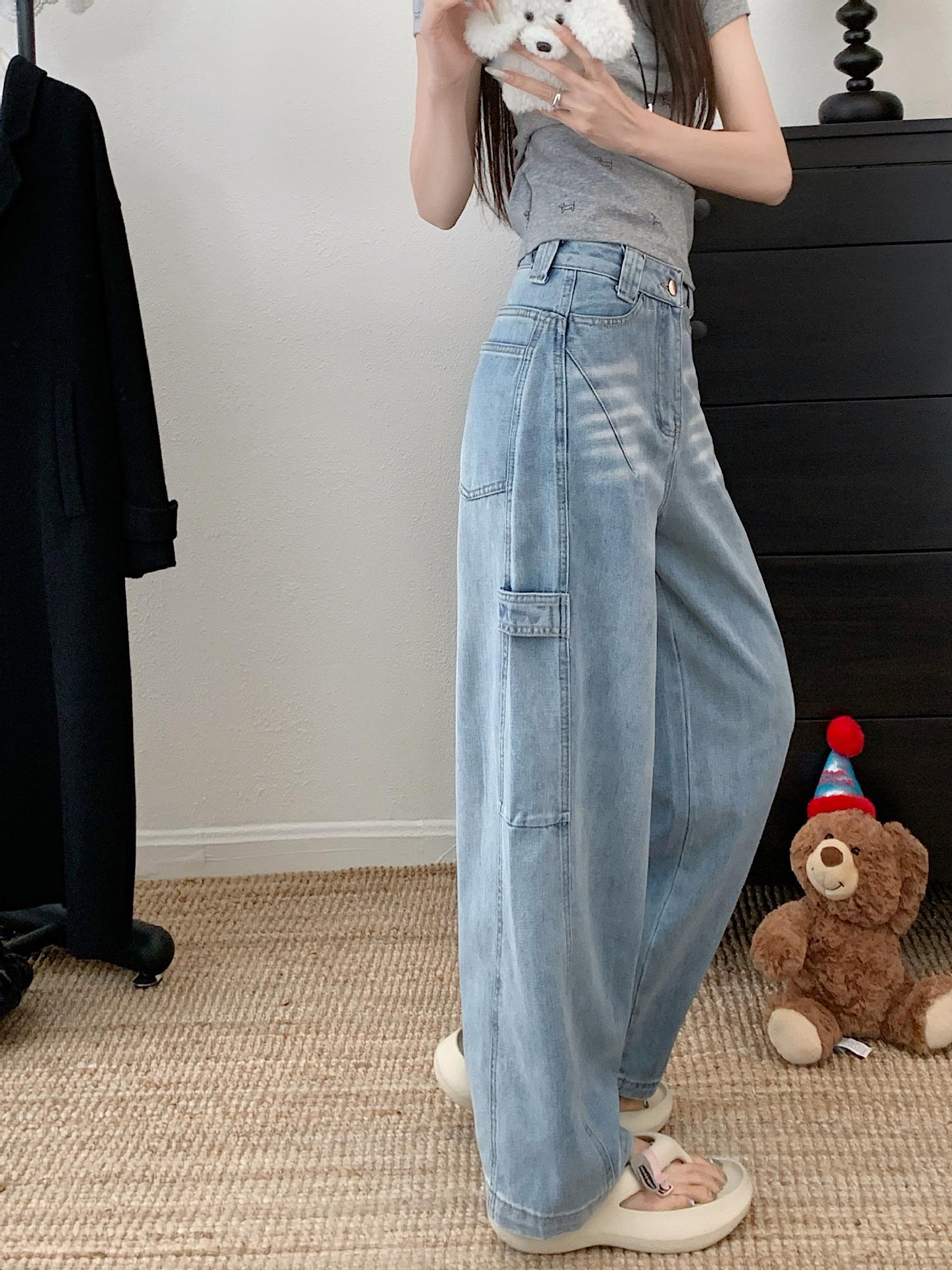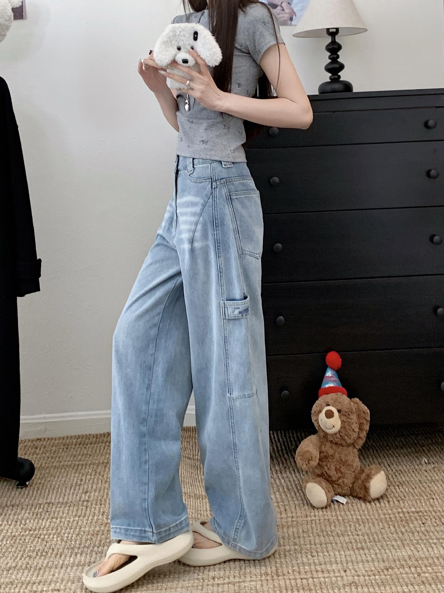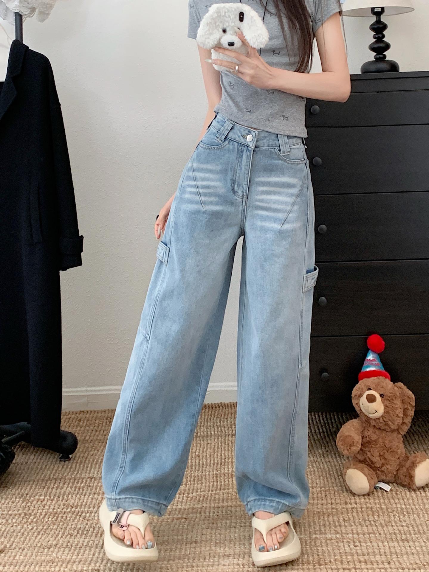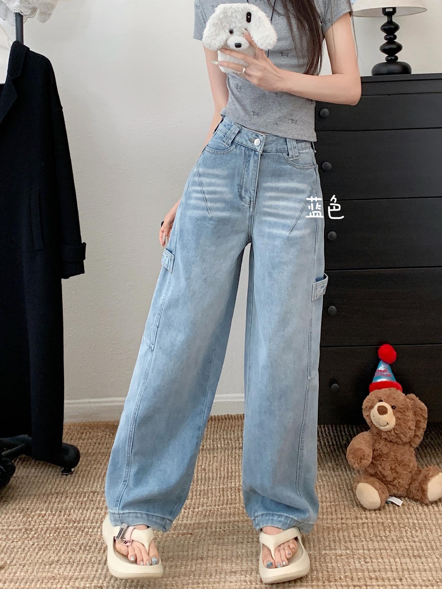 Azul claro Jeans Machete para Mujer Primavera y Verano Nuevo Cintura Alta Diseño Adelgazante Sentido High Street Ropa de Trabajo Pantalones Pierna Ancha