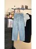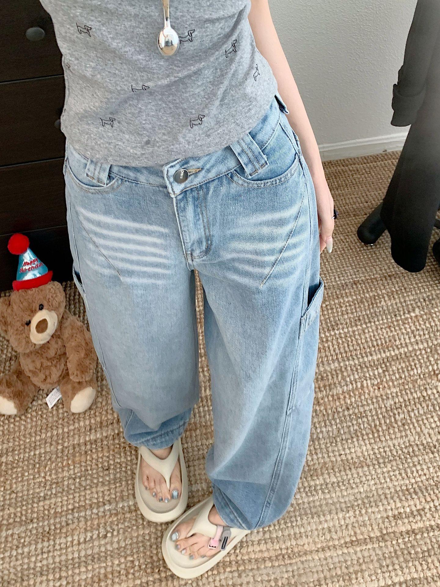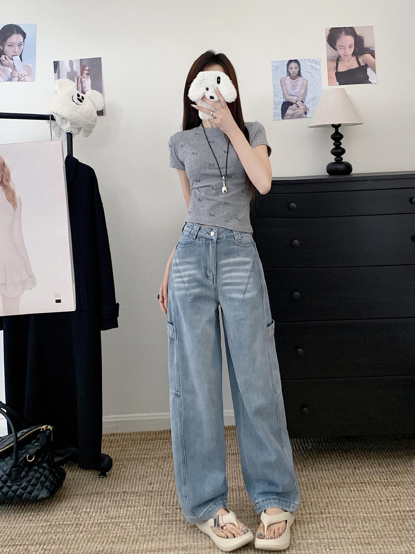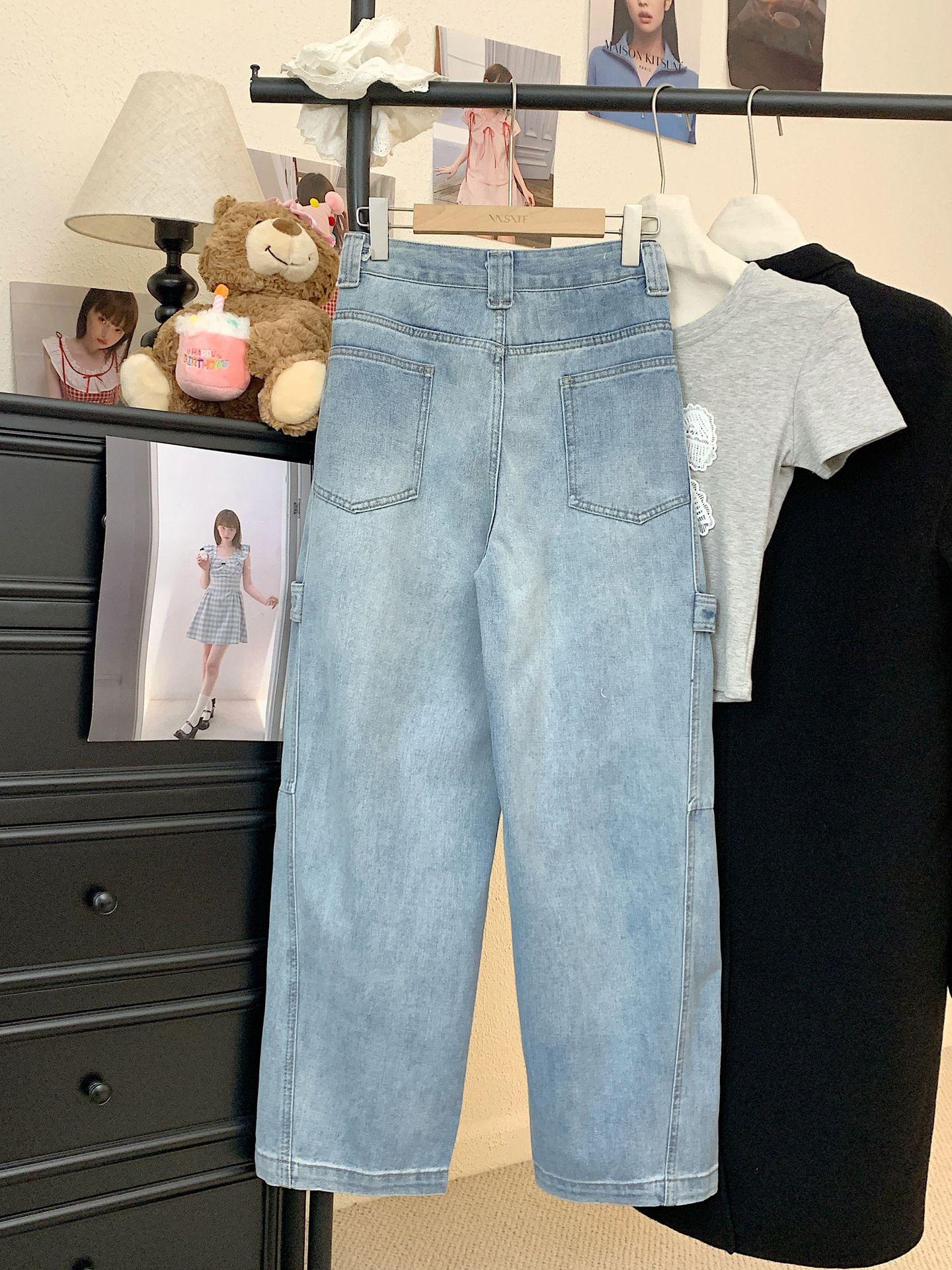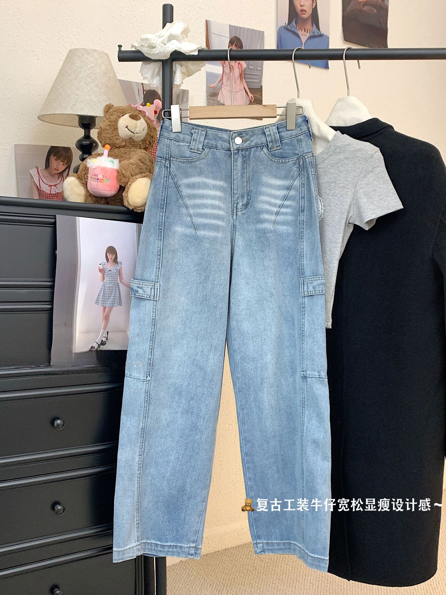 Azul claro Jeans Machete para Mujer Primavera y Verano Nuevo Cintura Alta Diseño Adelgazante Sentido High Street Ropa de Trabajo Pantalones Pierna Ancha