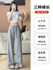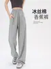 Pantalones Deportivos Grises de Verano para Mujer 2025 Nuevos Pantalones Dape de Cintura Alta Rectos Casuales de Pierna Ancha Pequeña
