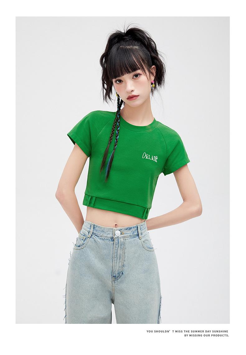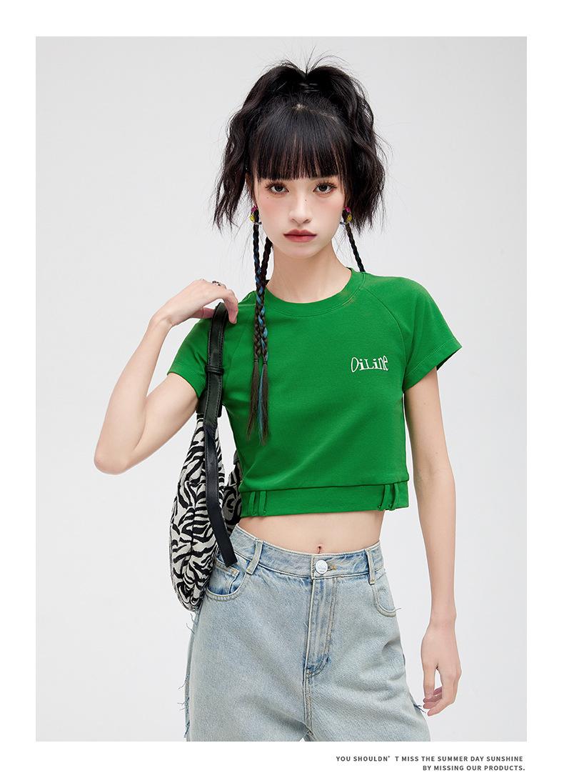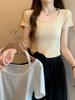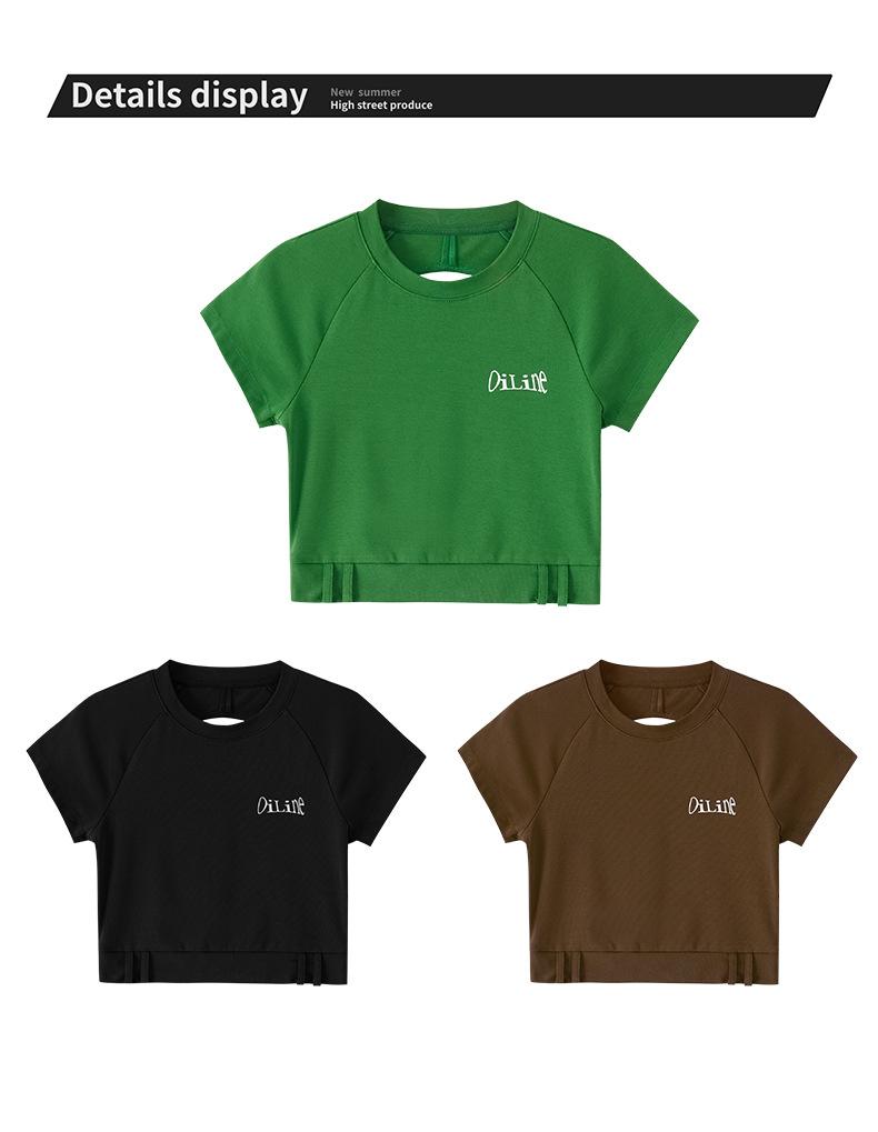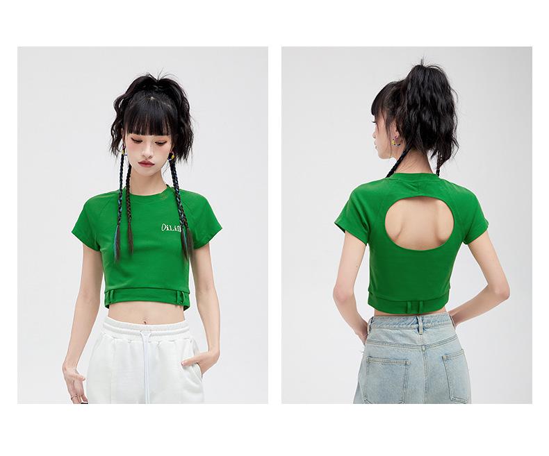 Genial Sexy Elegante Cuello Redondo Manga Corta con Espalda Descubierta Camiseta Top Diseño Nicho Verano