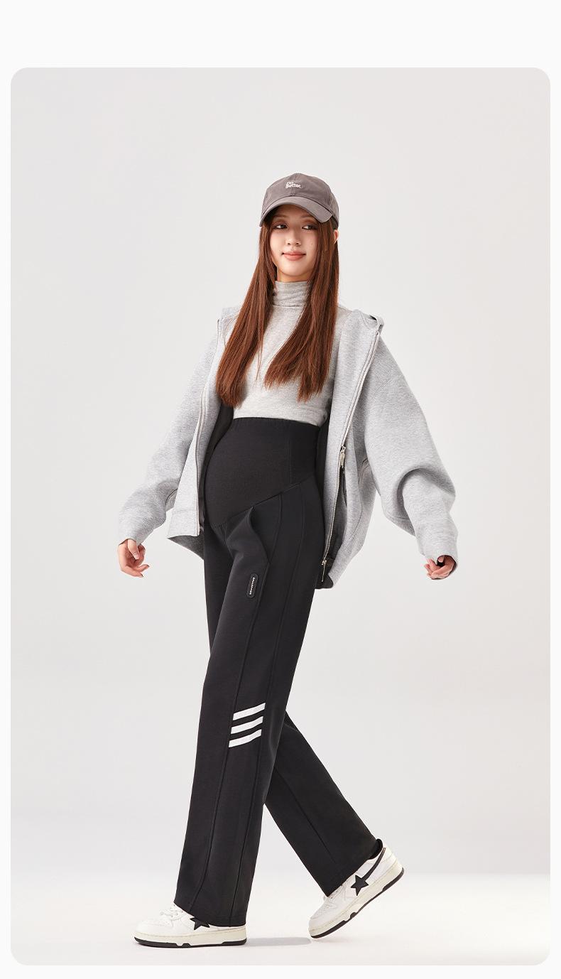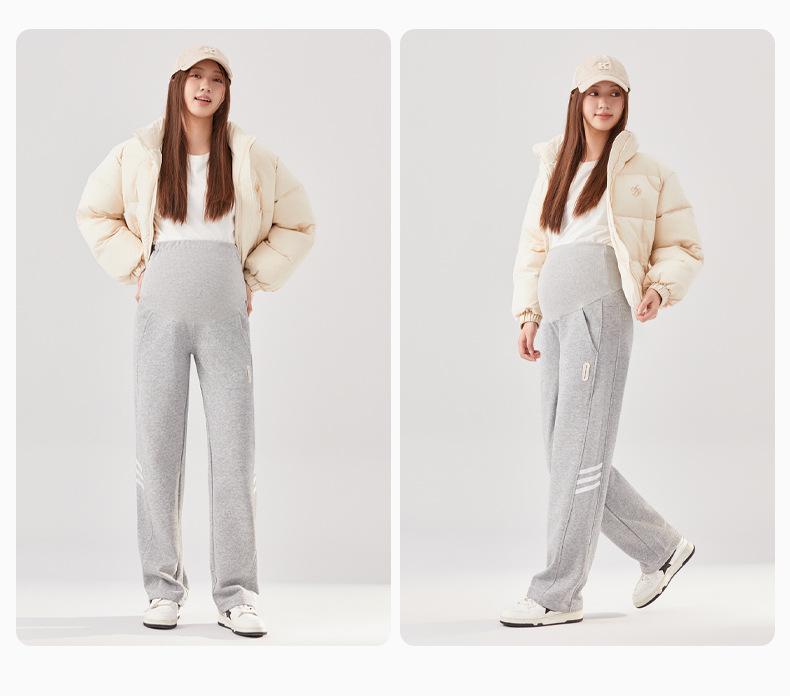 Leggings de Cintura Alta Personalizados para Mujeres Embarazadas, Ropa Exterior Cálida de Otoño e Invierno, Pantalones Casuales de Terciopelo con Soporte para el Vientre, Pantalones Deportivos Rectos Holgados