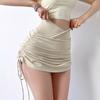 Falda Corta Ajustable con Cordón Fruncida de Gama Alta que Abraza las Caderas para Mujer Verano Cintura Alta Slim Falda Marrón Falda de Un Paso