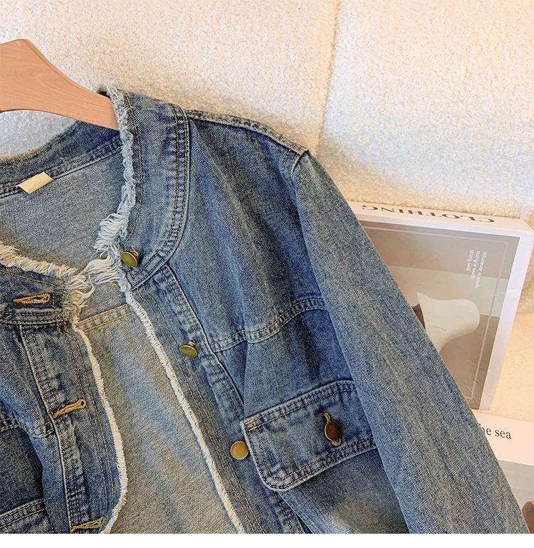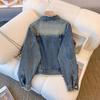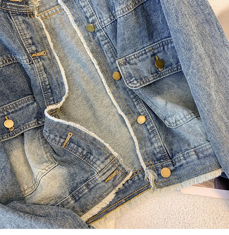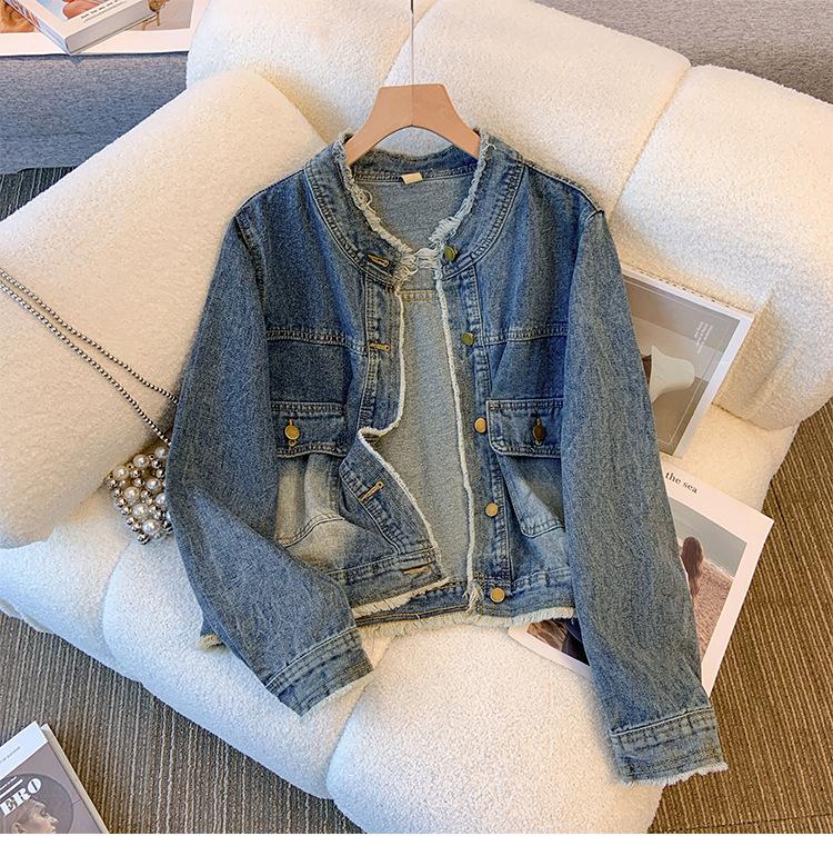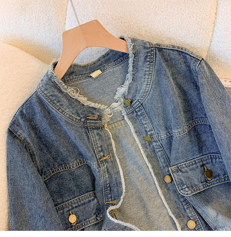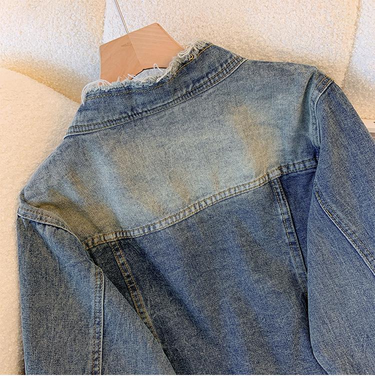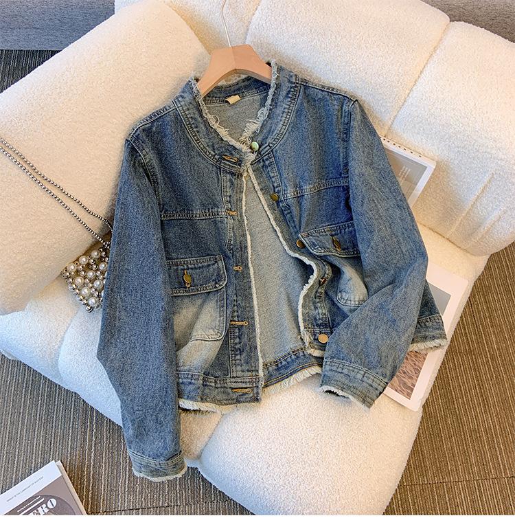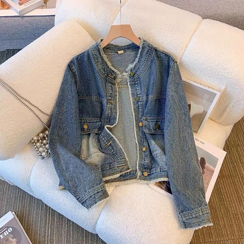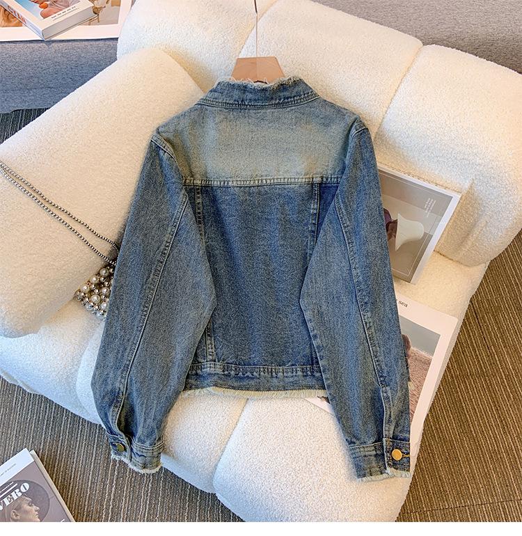 Denim Lavado Vintage 2024 Primavera y Otoño Nuevo Abrigo Holgado Chaqueta Corta Top
