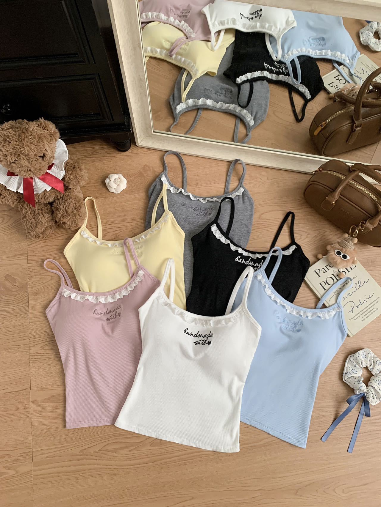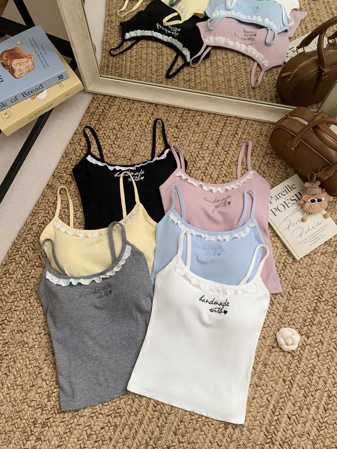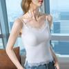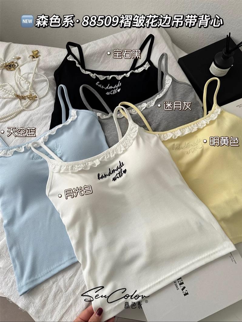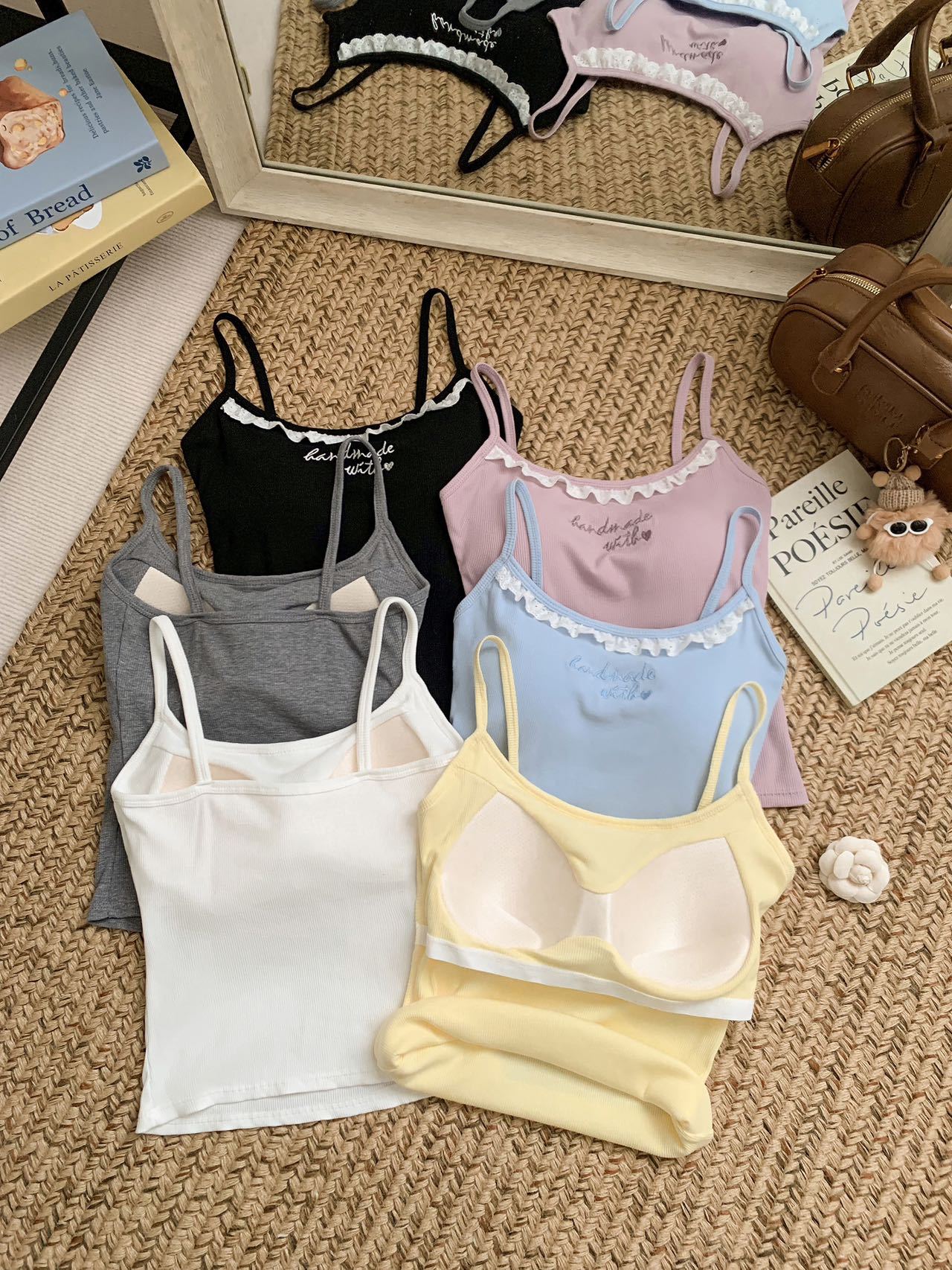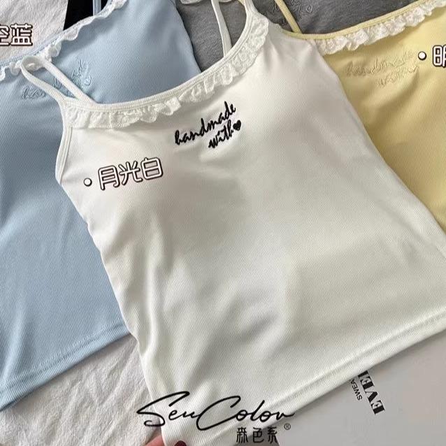 2025 Nuevo Estilo de Verano Color Puro Encaje Camisola Sexy para Mujer Íntimos Fondo con Almohadillas para el Busto Se Puede Usar Afuera la Tendencia