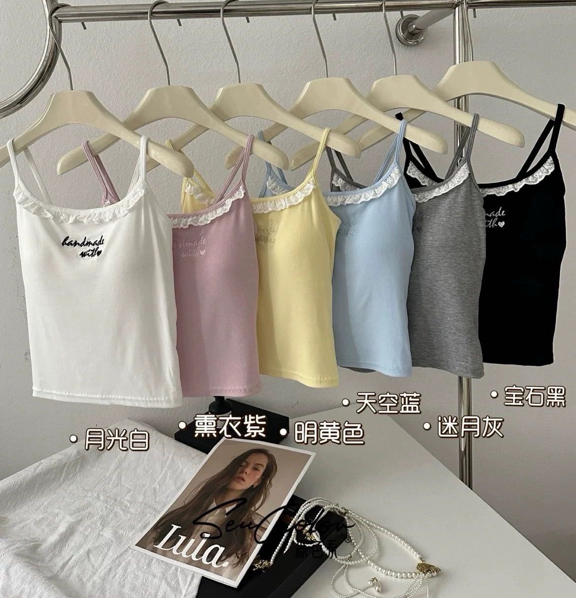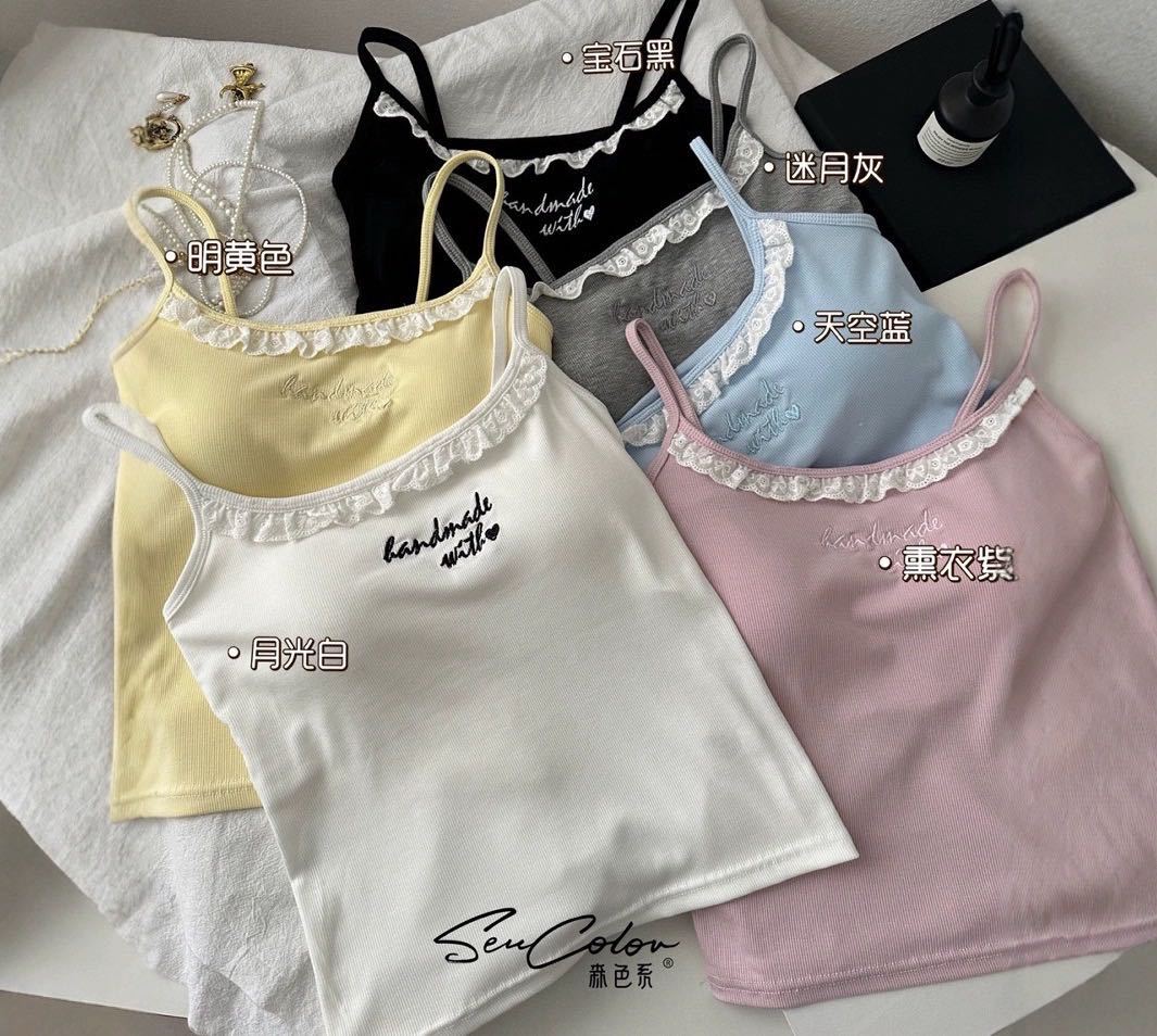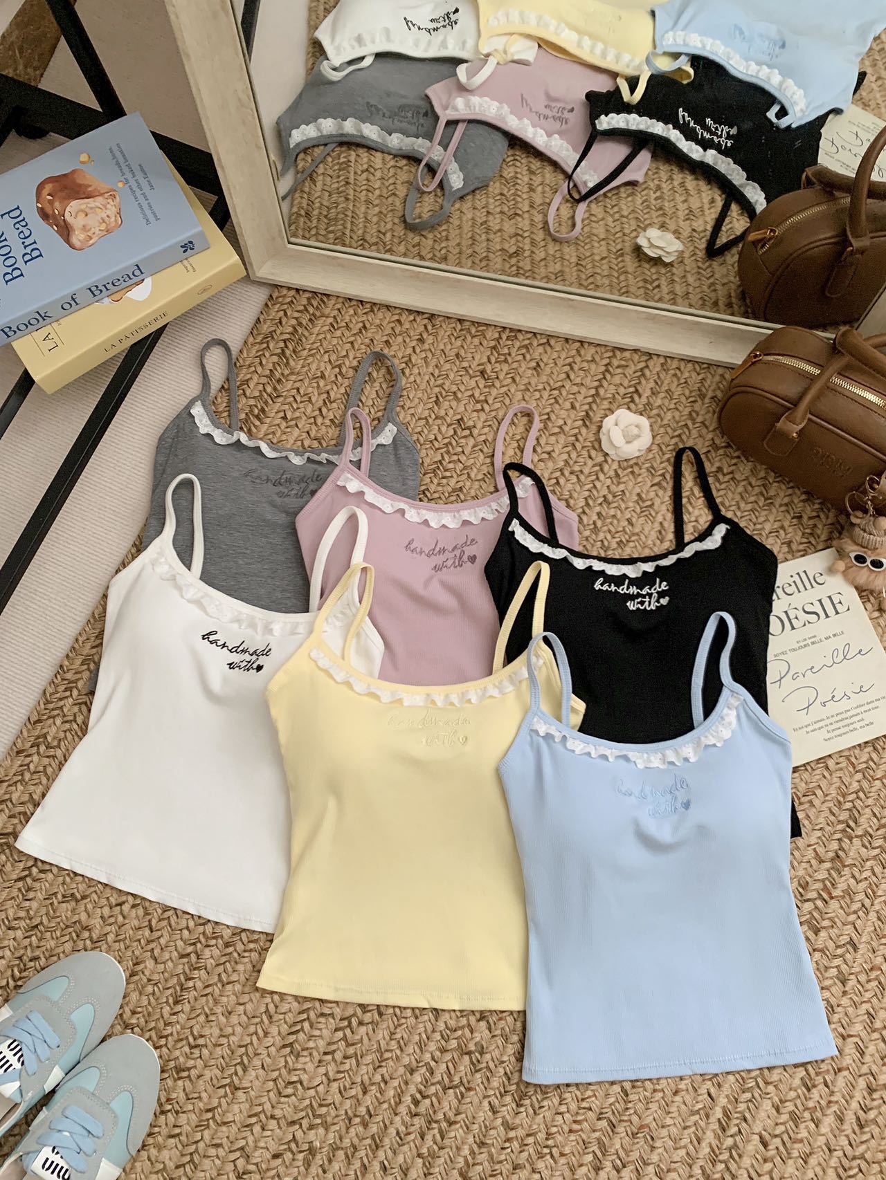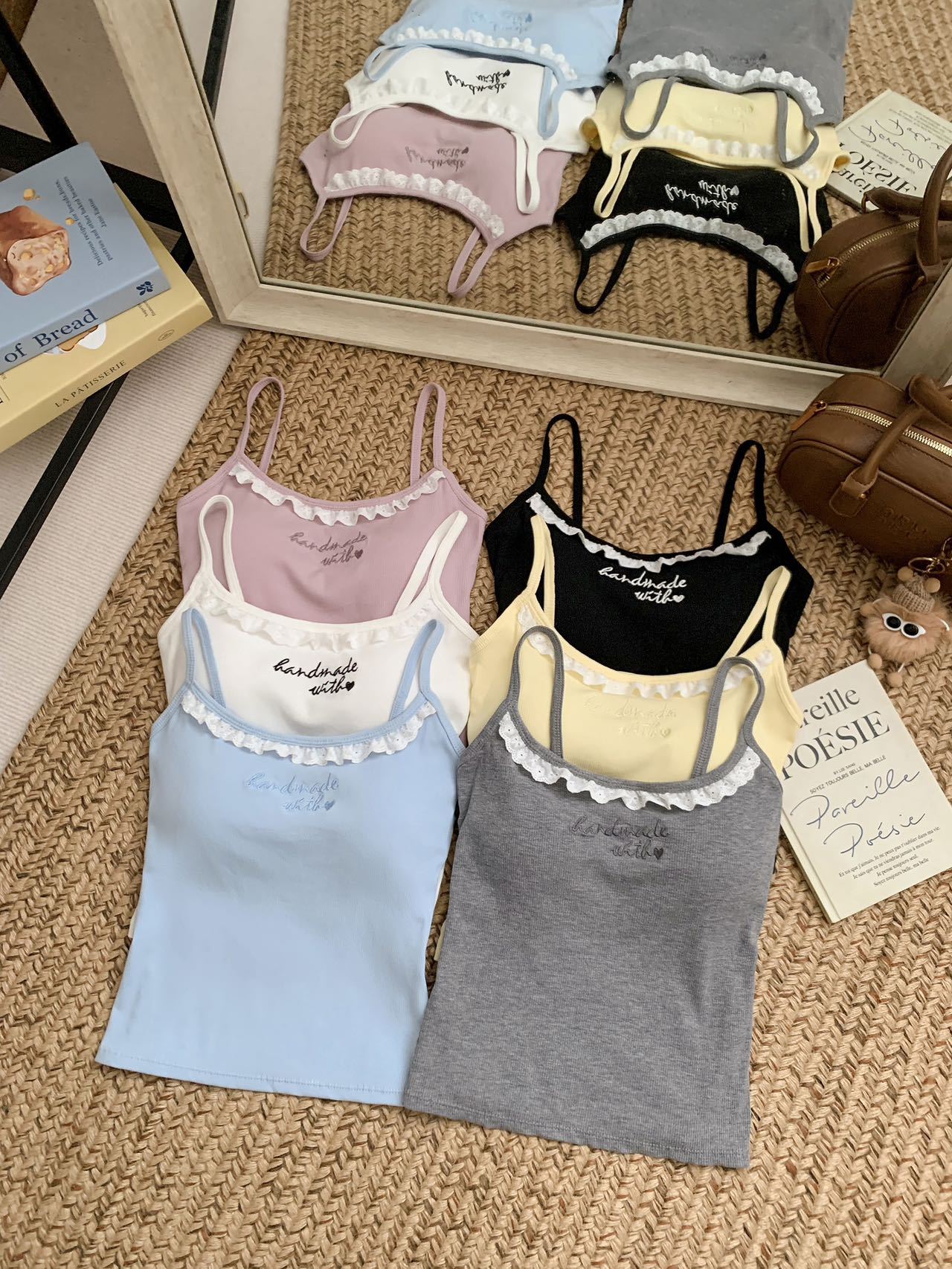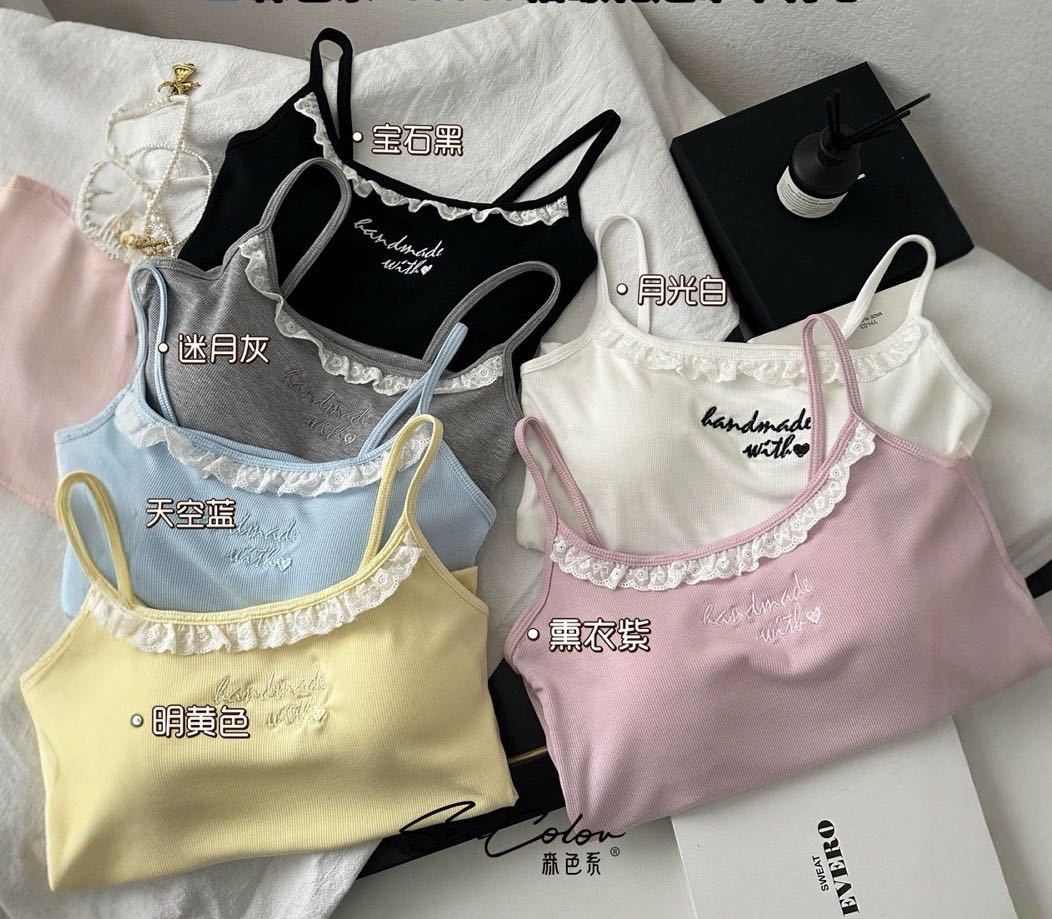 2025 Nuevo Estilo de Verano Color Puro Encaje Camisola Sexy para Mujer Íntimos Fondo con Almohadillas para el Busto Se Puede Usar Afuera la Tendencia