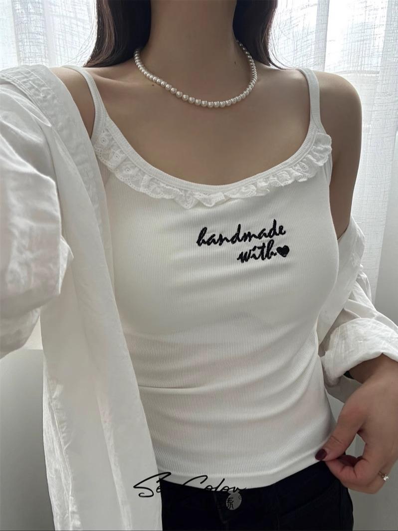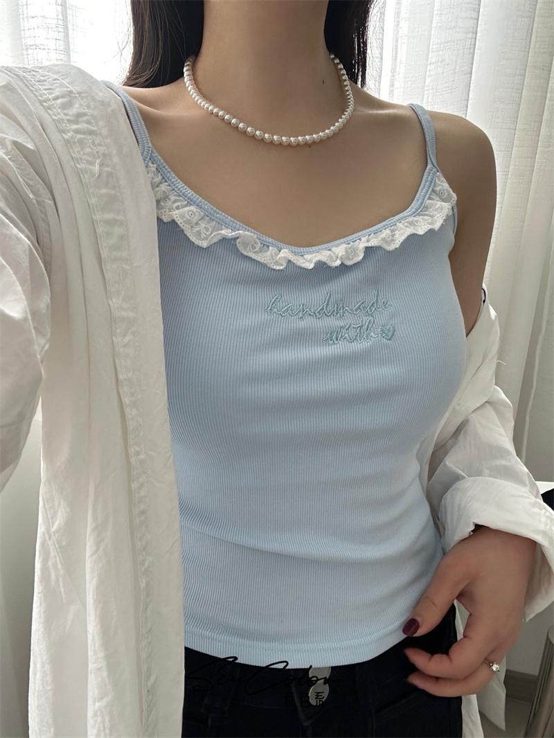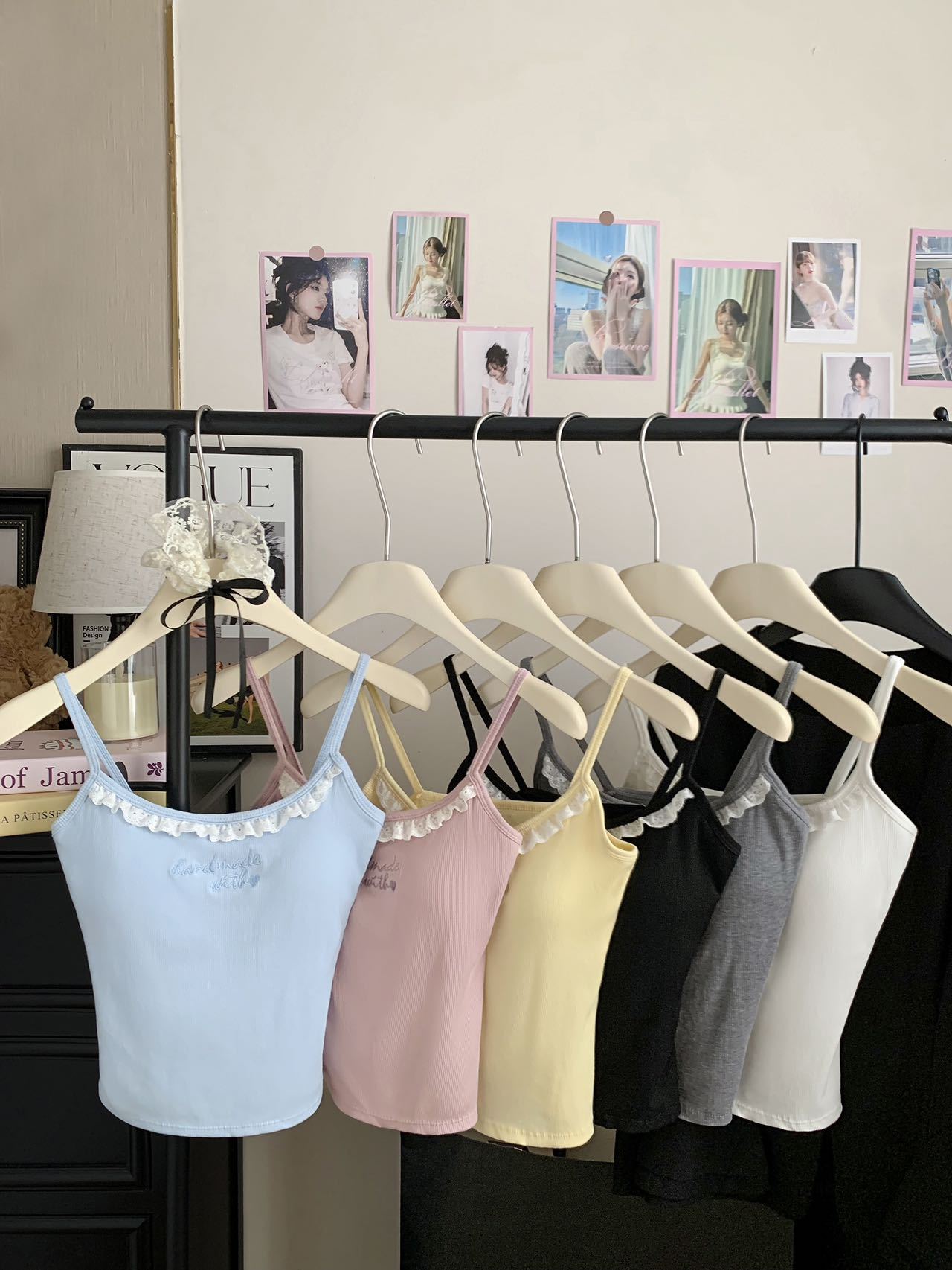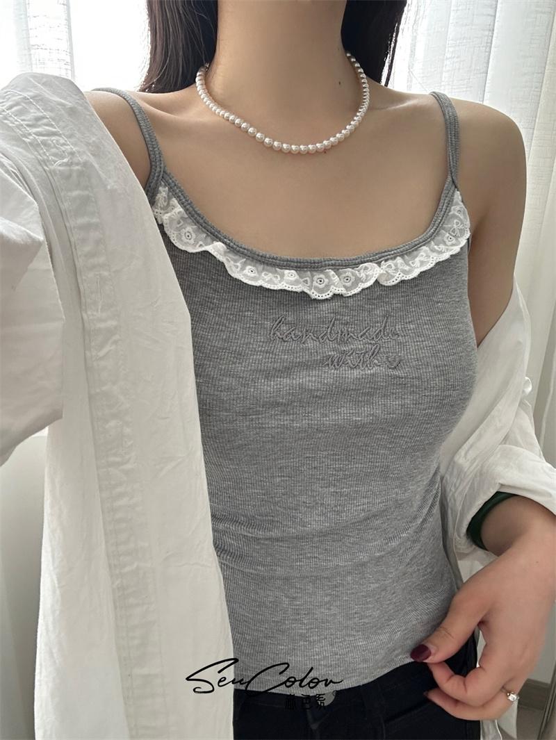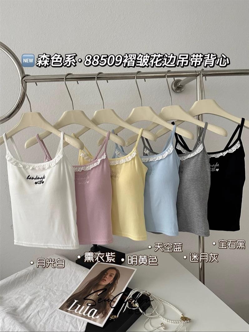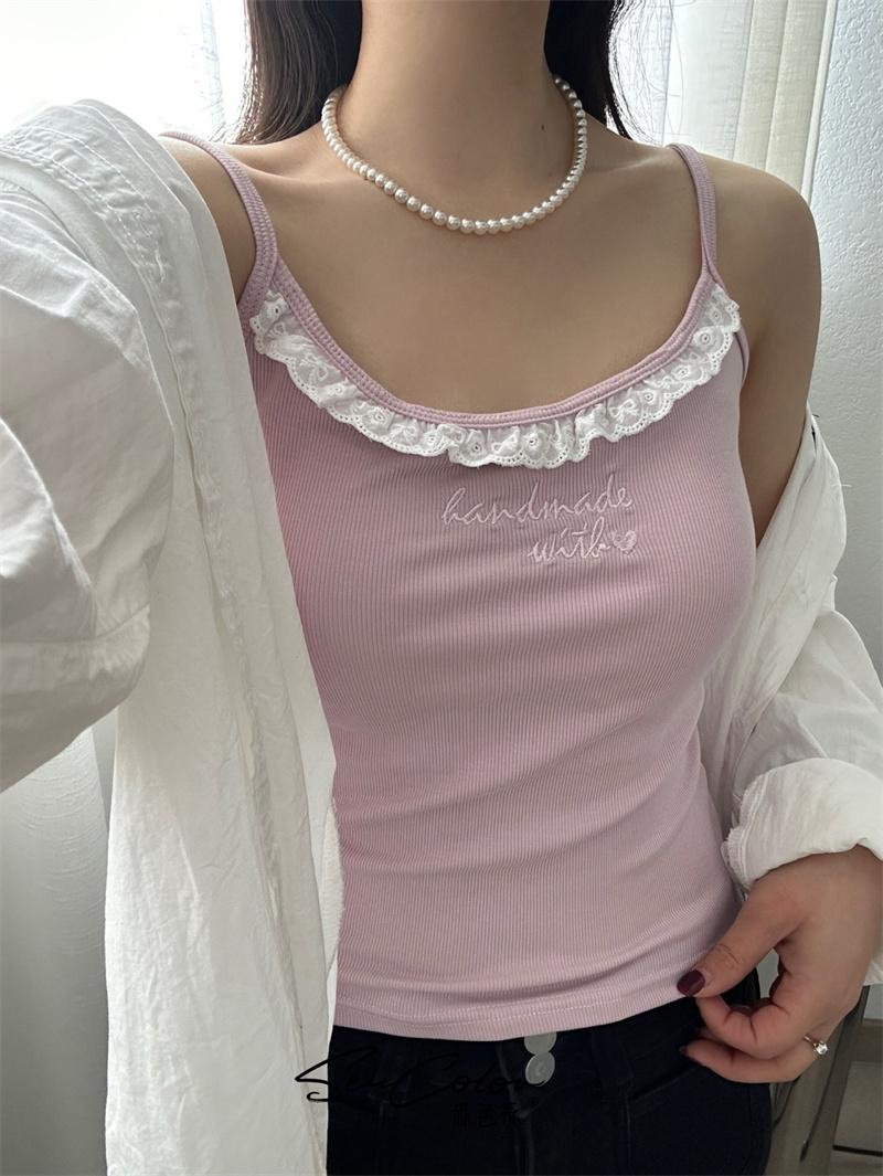 2025 Nuevo Estilo de Verano Color Puro Encaje Camisola Sexy para Mujer Íntimos Fondo con Almohadillas para el Busto Se Puede Usar Afuera la Tendencia