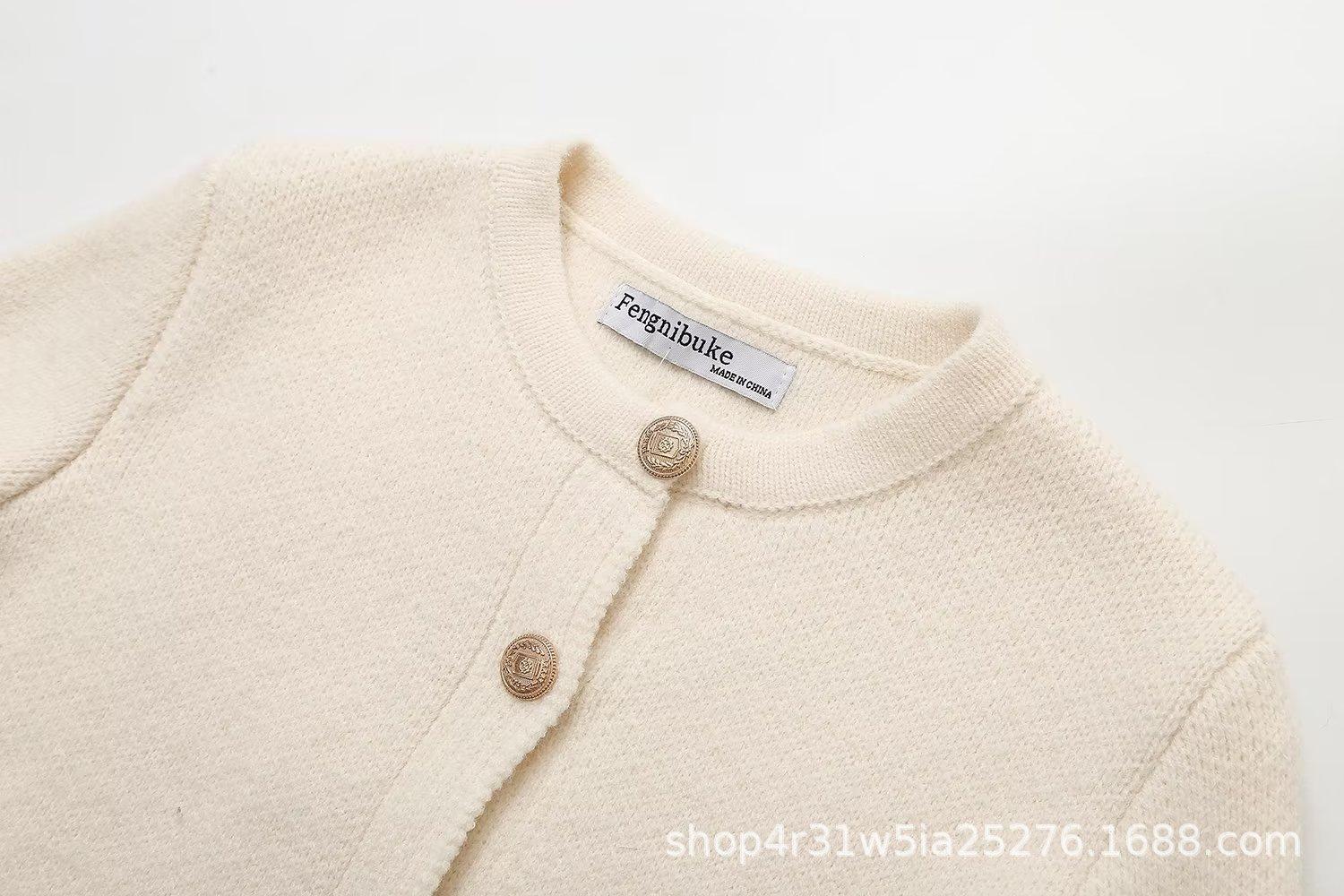 Venta al por mayor transfronteriza Ropa de mujer de Comercio Exterior europea y americana Nuevo abrigo de punto de moda casual holgado con botones dorados
