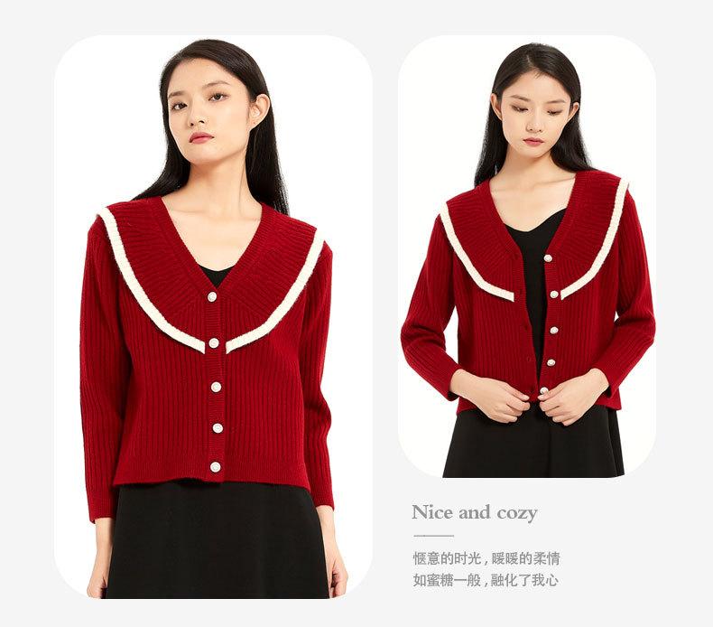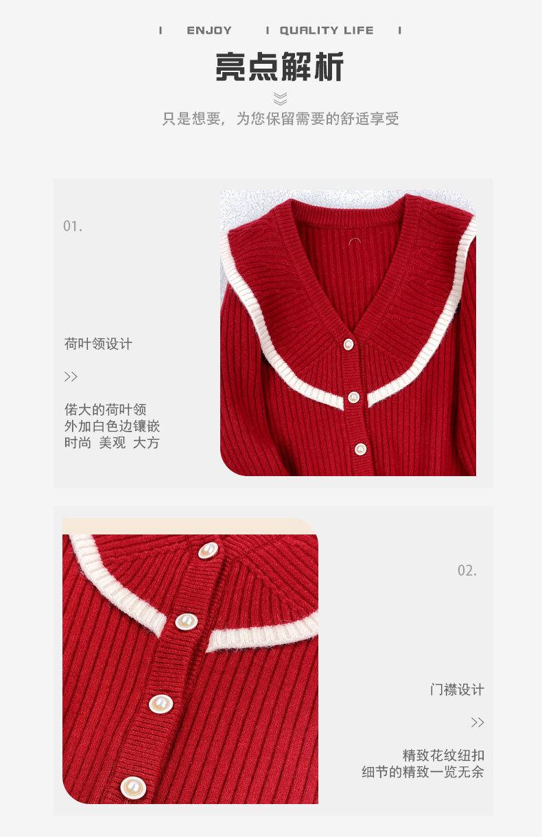 [Procesamiento Personalizado] Cárdigan de Punto Rojo para Mujer Otoño e Invierno Nuevo para Ir al Trabajo Más Fácil de Combinar Manga Larga Chaqueta Suéter para Mujer