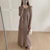 [Textura de la tela] Vestido de punto elástico con ganchos al frente y bolsillos, hombreras removibles
