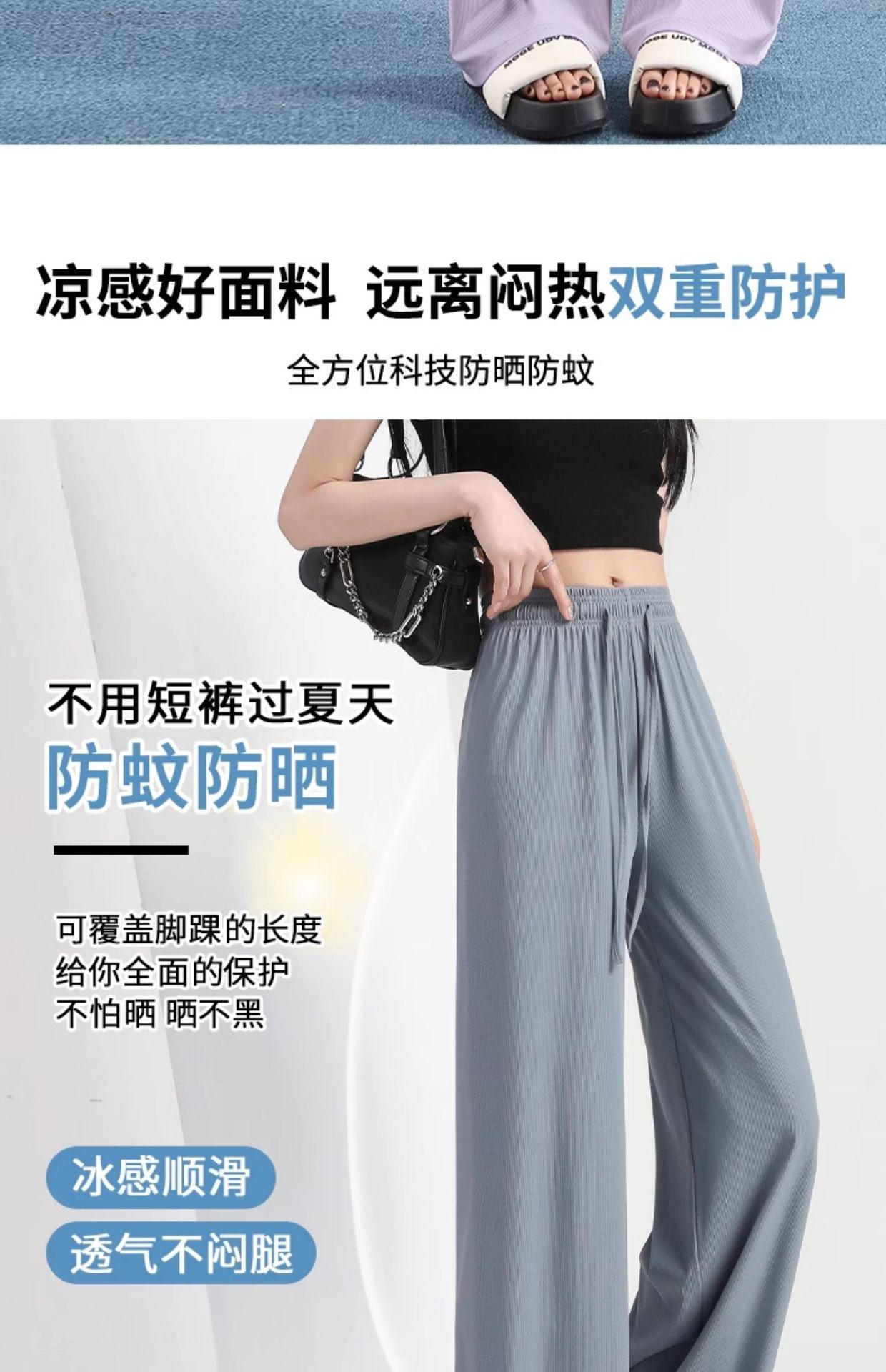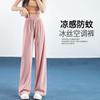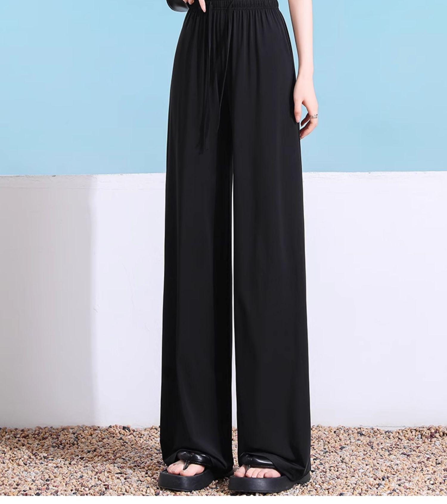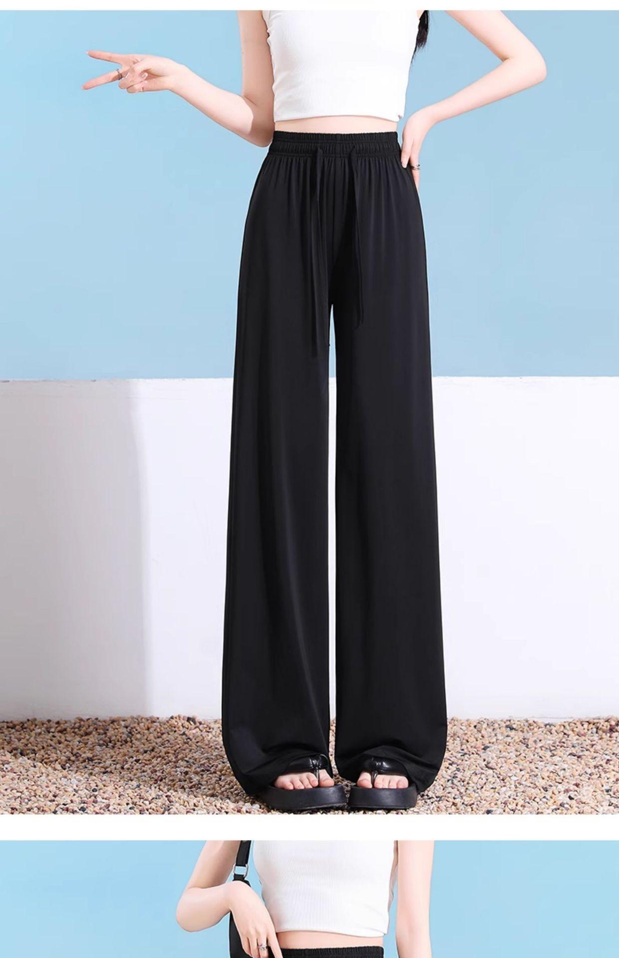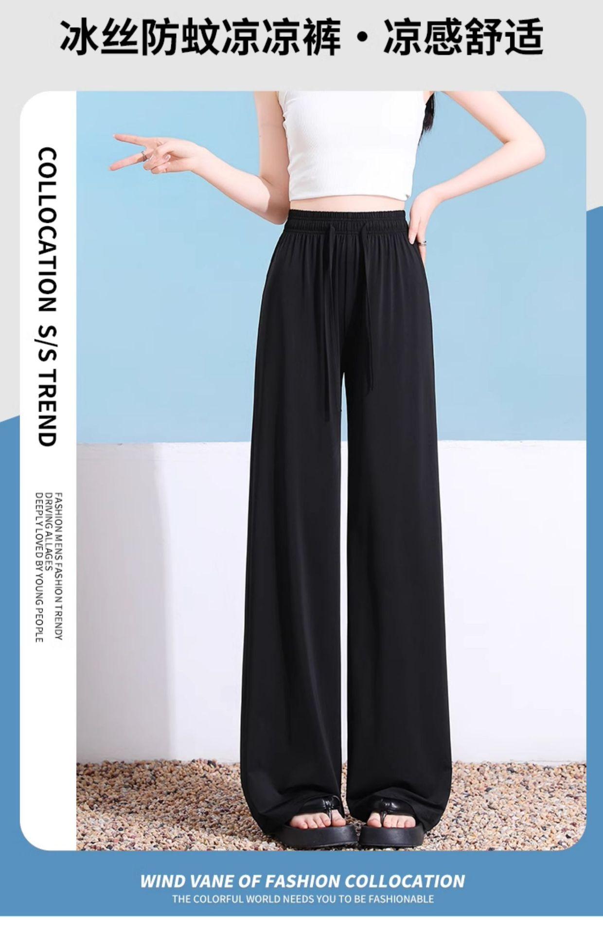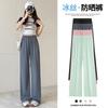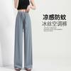Pantalones de Pierna Ancha de Seda Helada Antimosquitos para Mujer de Cintura Alta con Caída Verano Delgados Rectos Negros Protección Solar Casuales 2025 Nuevo