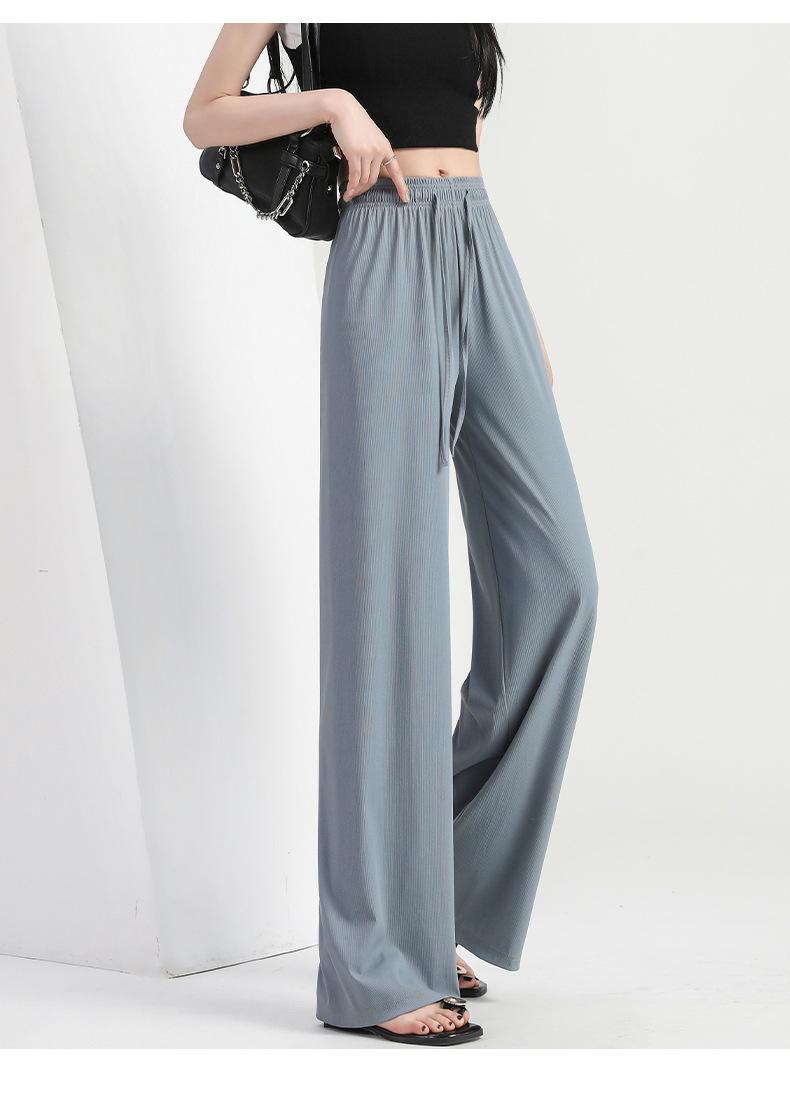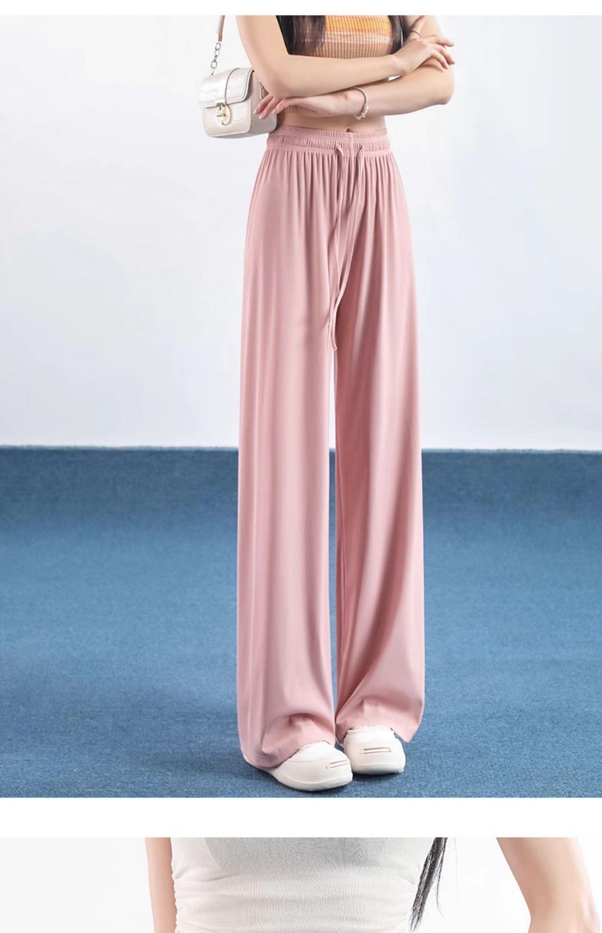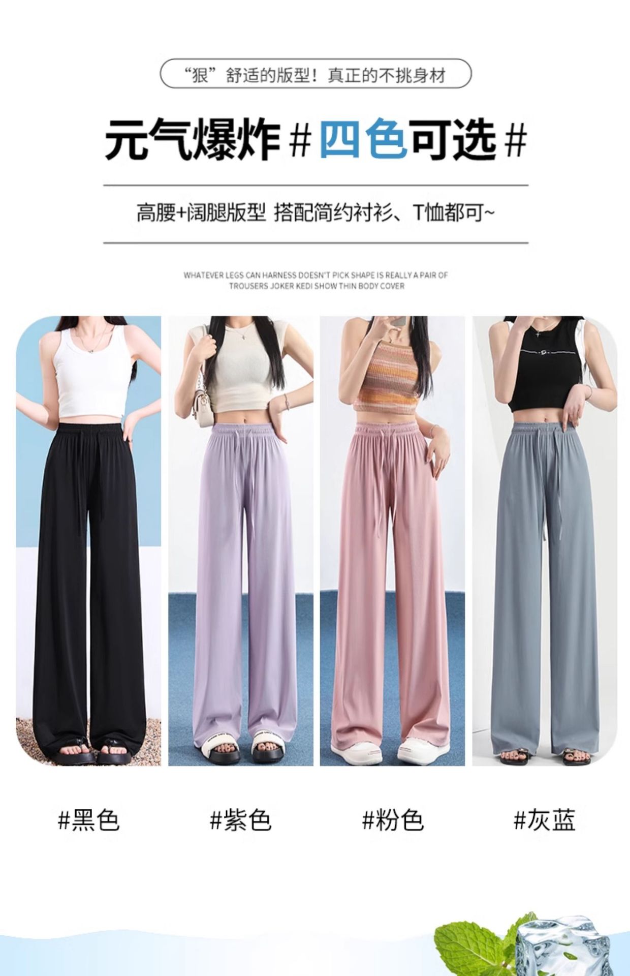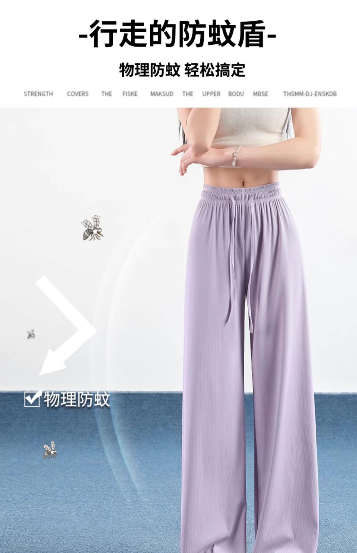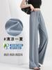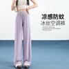 Pantalones de Pierna Ancha de Seda Helada Antimosquitos para Mujer de Cintura Alta con Caída Verano Delgados Rectos Negros Protección Solar Casuales 2025 Nuevo