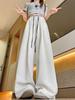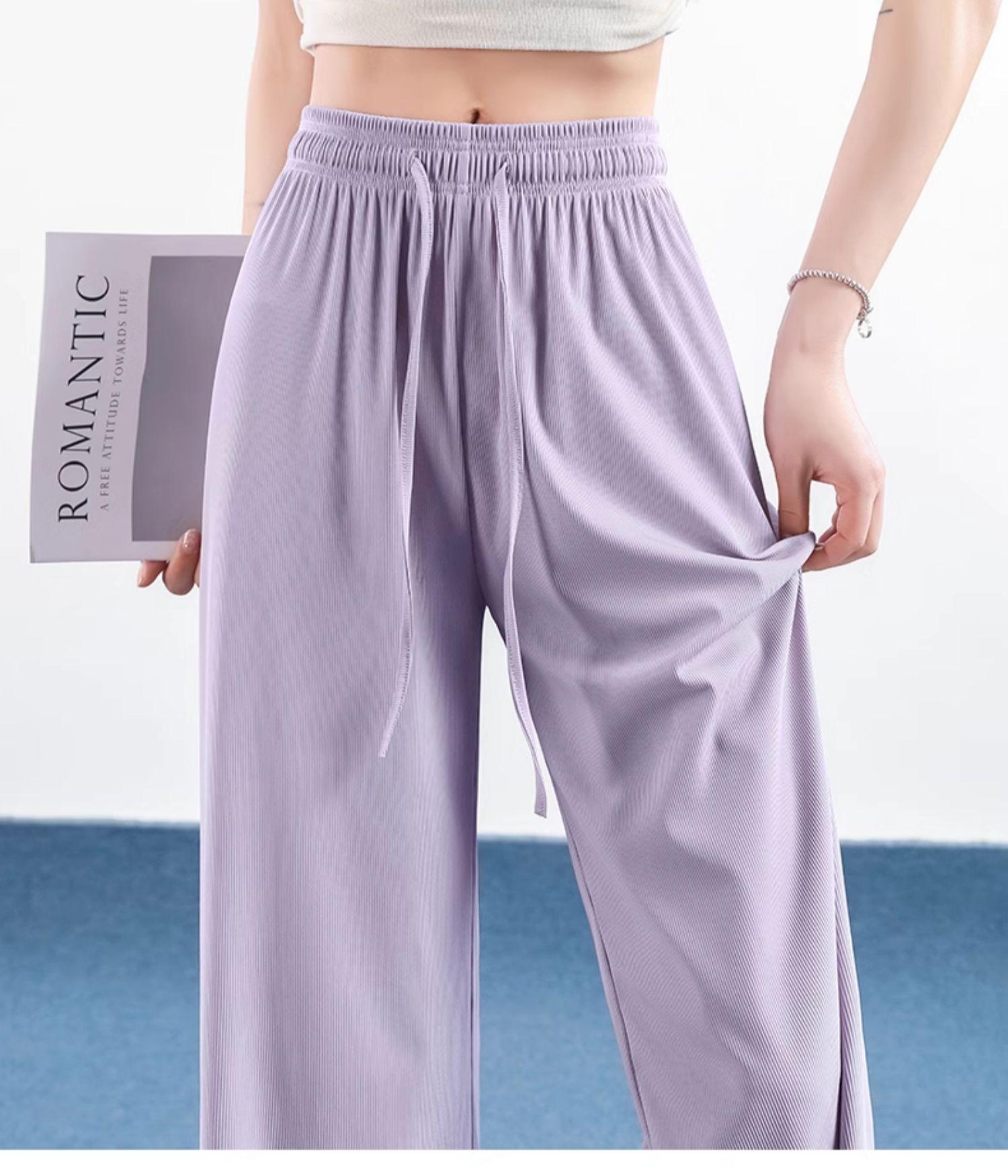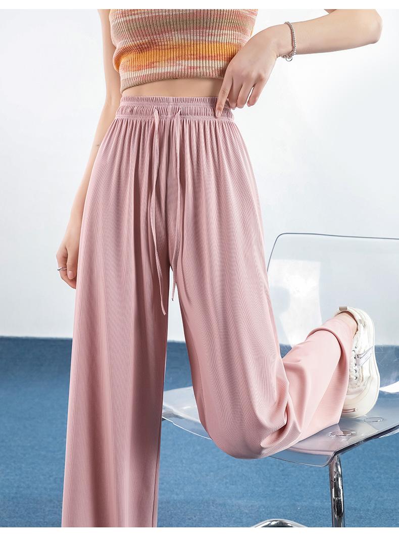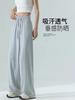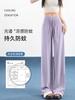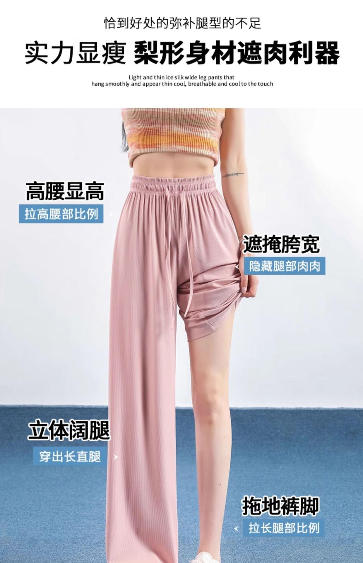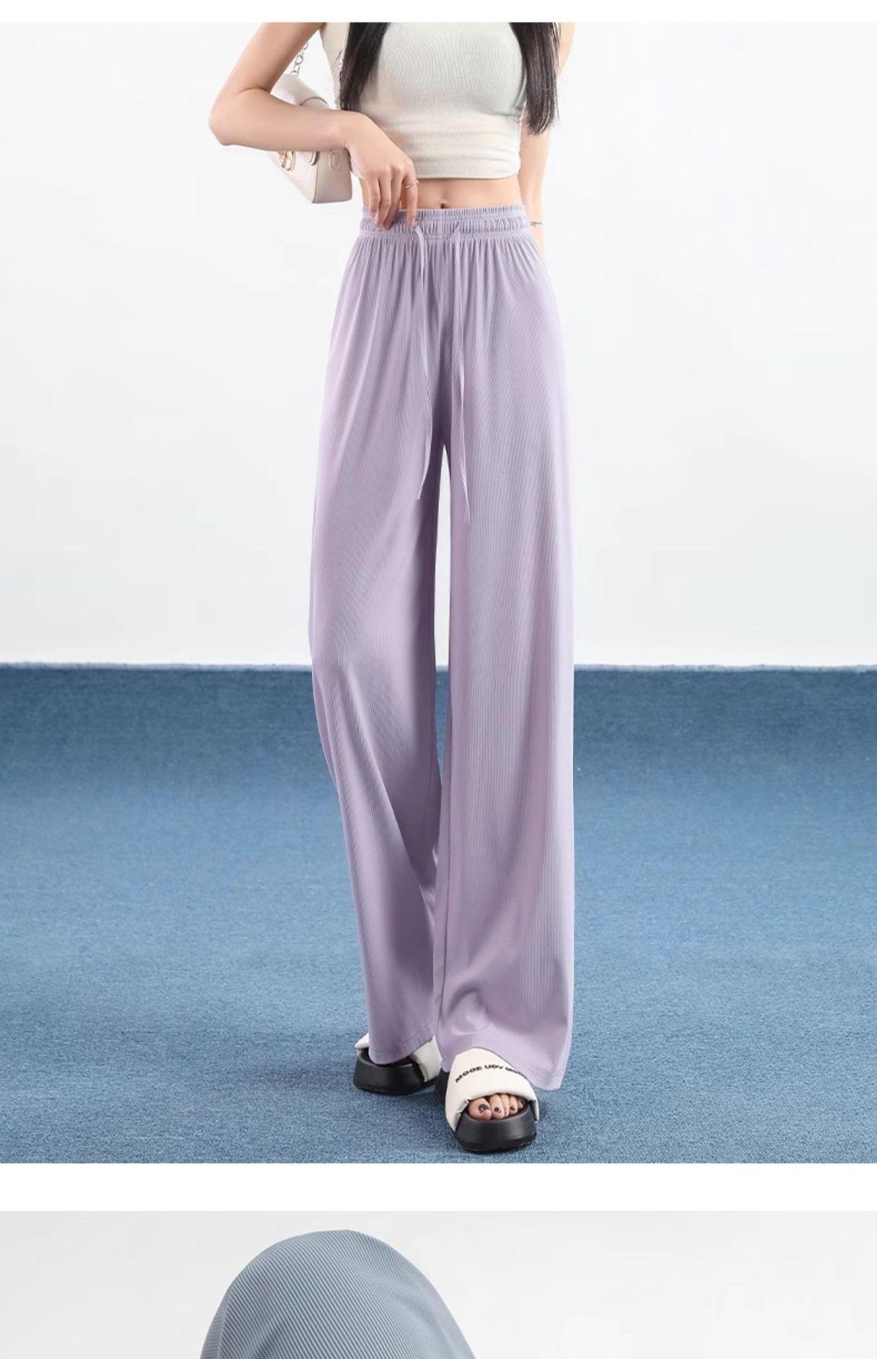 Pantalones de Pierna Ancha de Seda Helada Antimosquitos para Mujer de Cintura Alta con Caída Verano Delgados Rectos Negros Protección Solar Casuales 2025 Nuevo