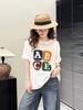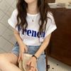 Camiseta de Manga Corta con Estampado de Letras Inglesas para Mujer Verano Nuevo Estilo Trendy Elegante Nicho Holgada Cuello Redondo Top Versátil