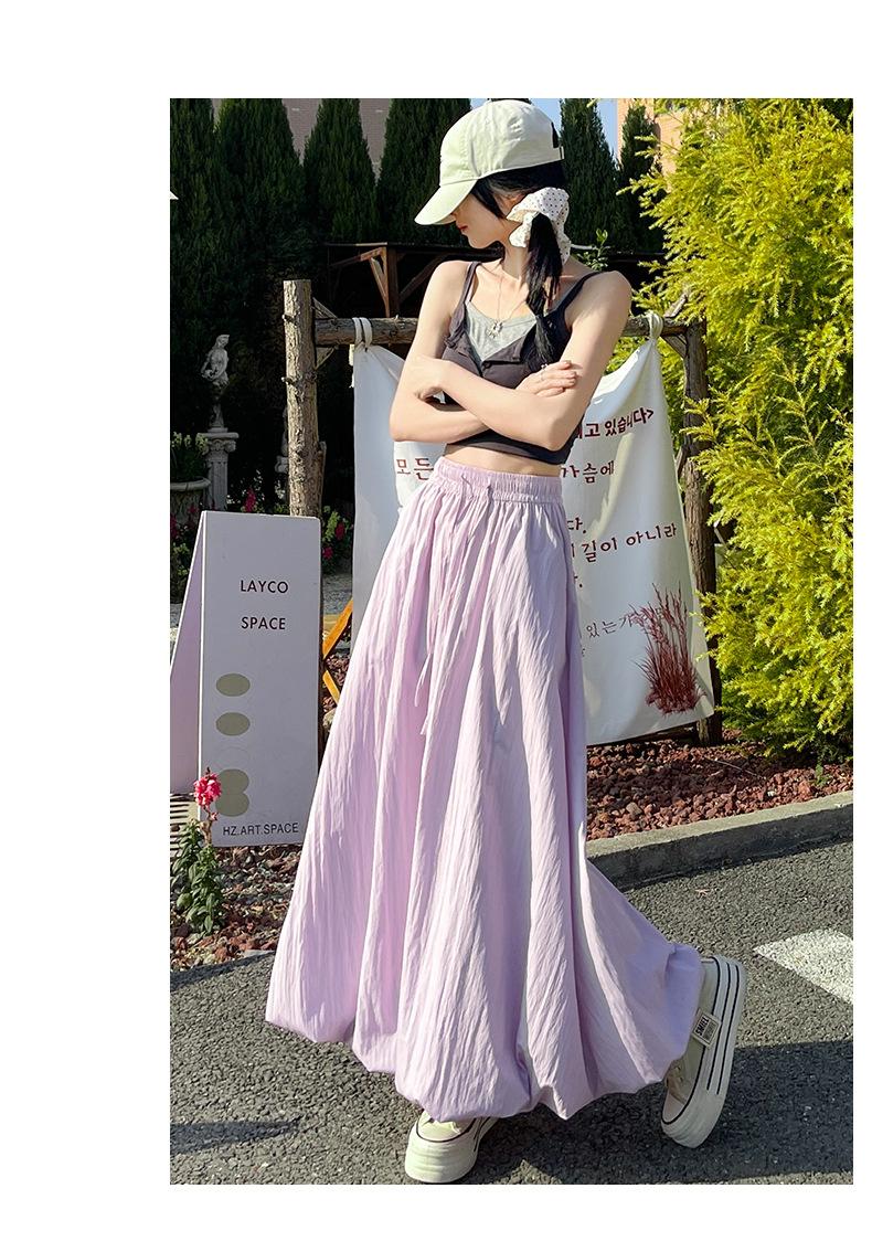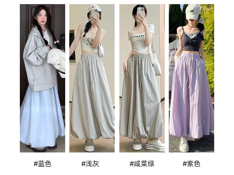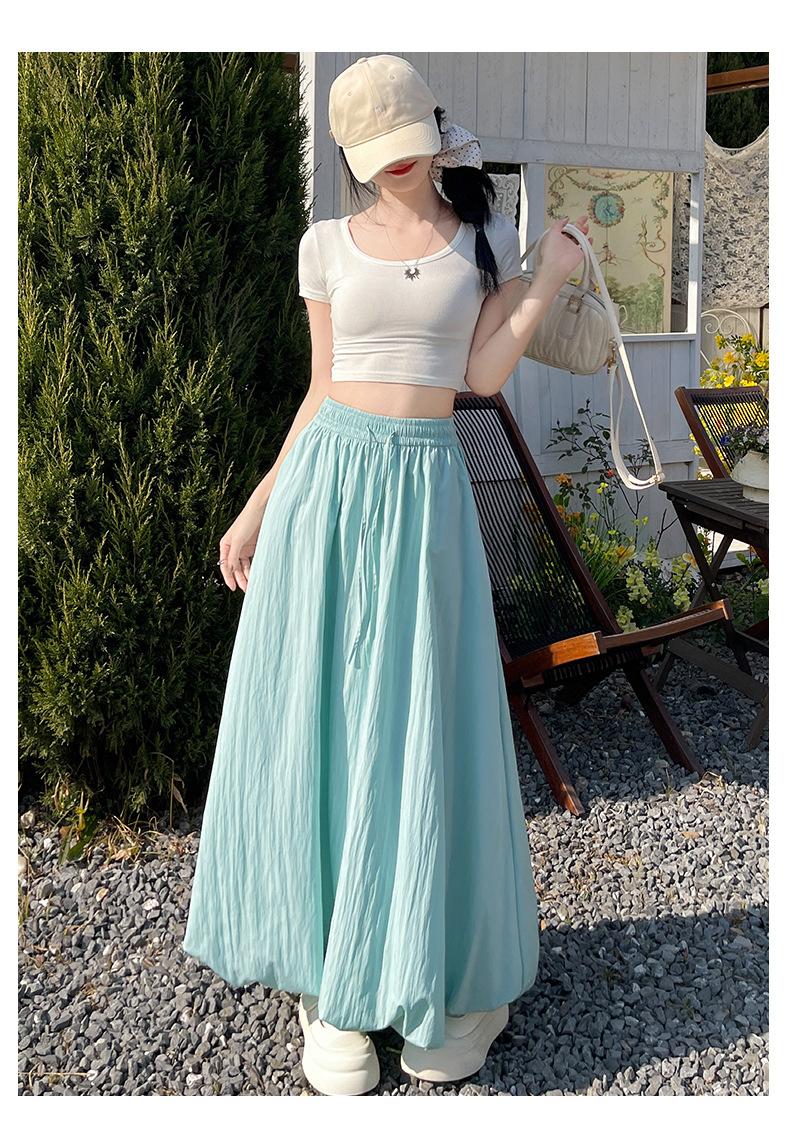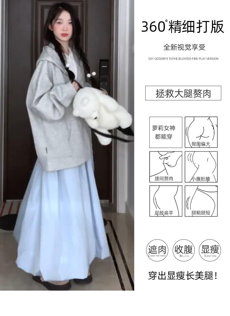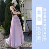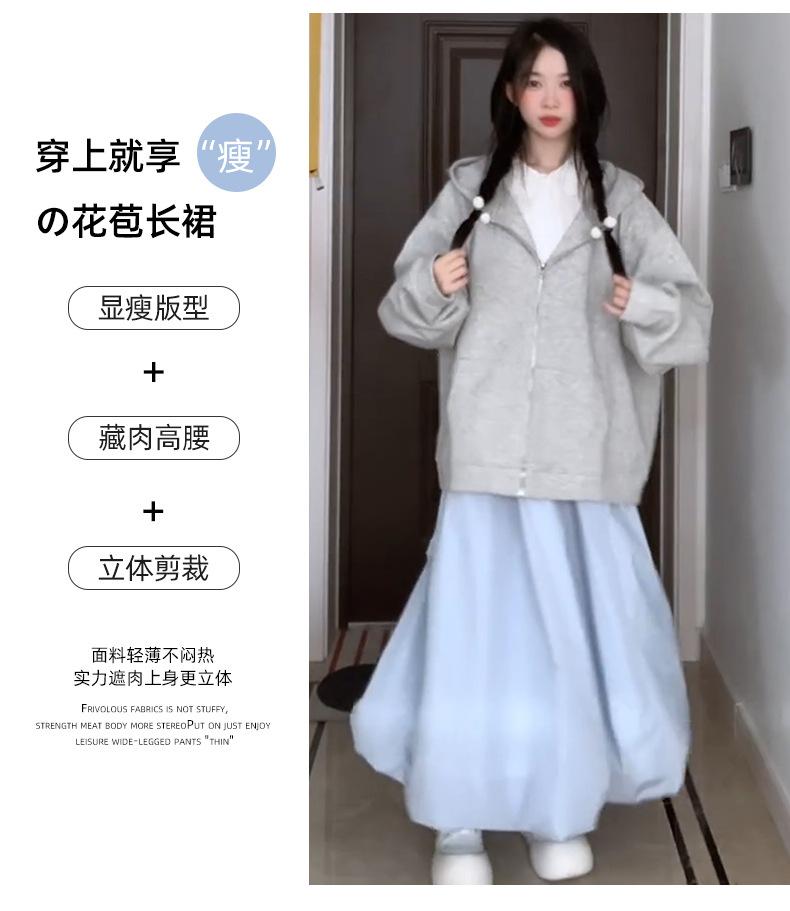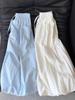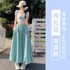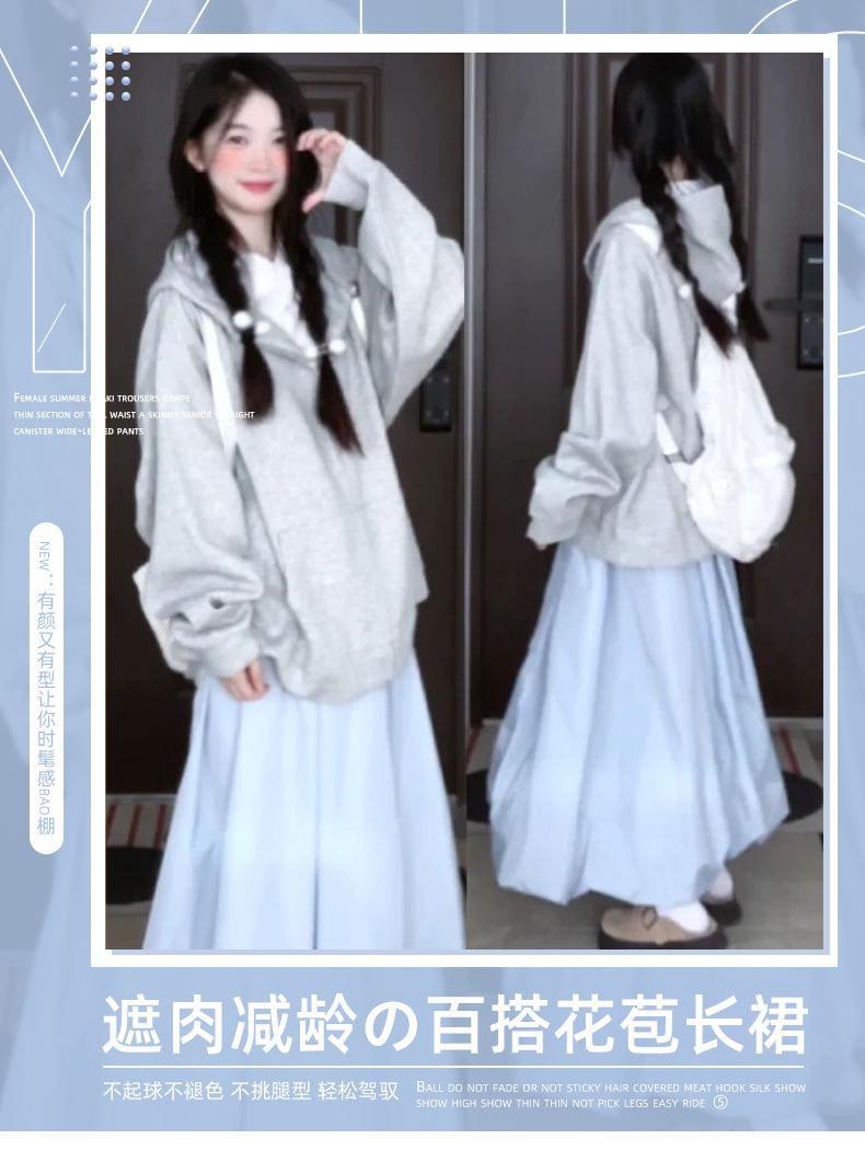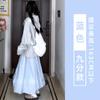 Vestido Azul de Flor Abullonada Bute para Mujer Verano Delgado 2025 Nuevo Cintura Alta Línea A Largo Medio Linterna Falda de Seda Helada
