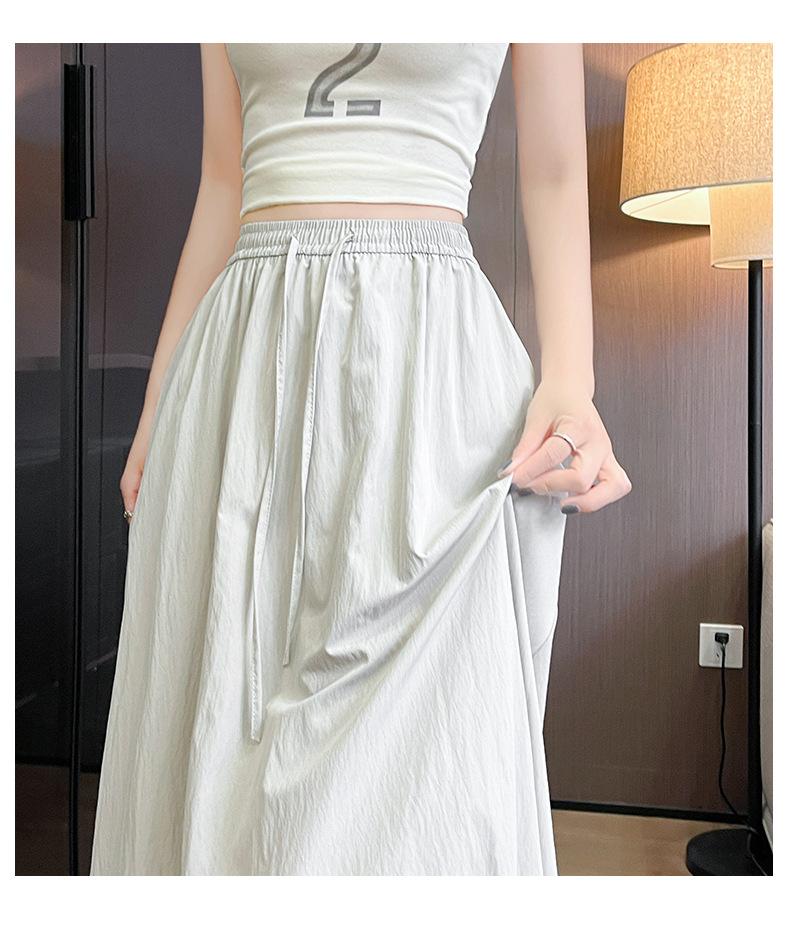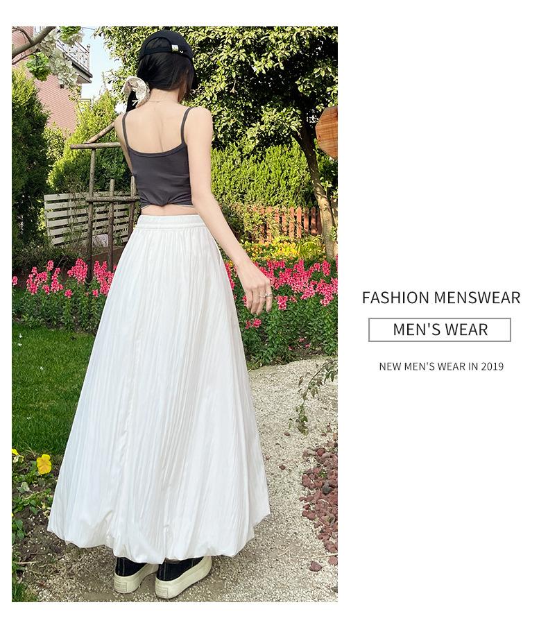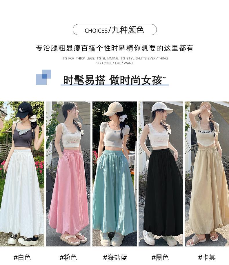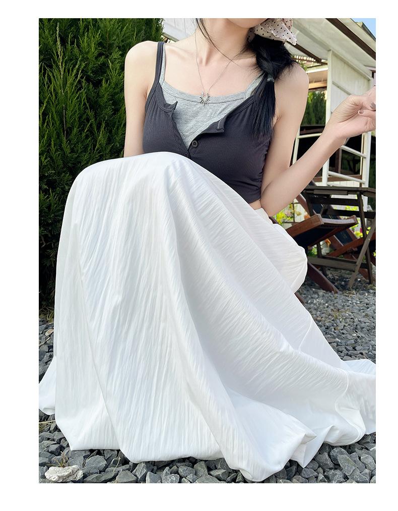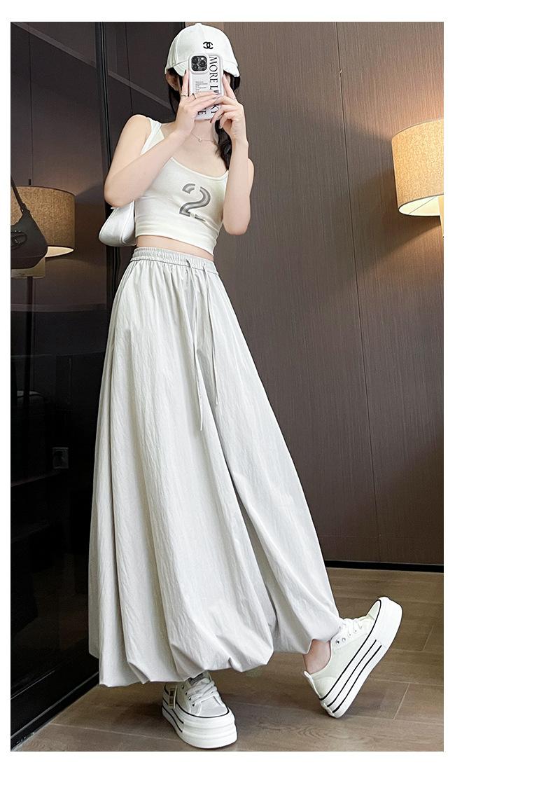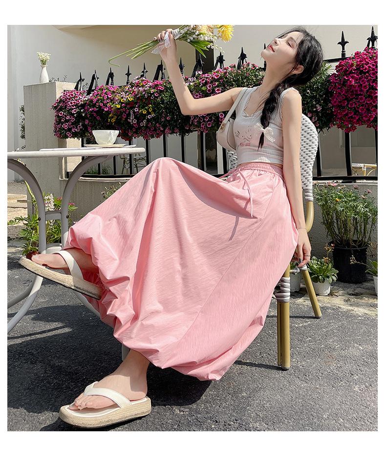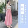 Vestido Azul de Flor Abullonada Bute para Mujer Verano Delgado 2025 Nuevo Cintura Alta Línea A Largo Medio Linterna Falda de Seda Helada