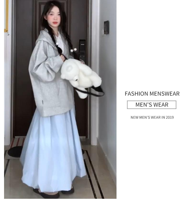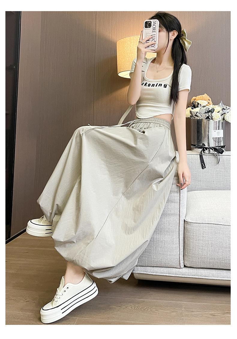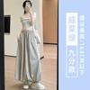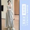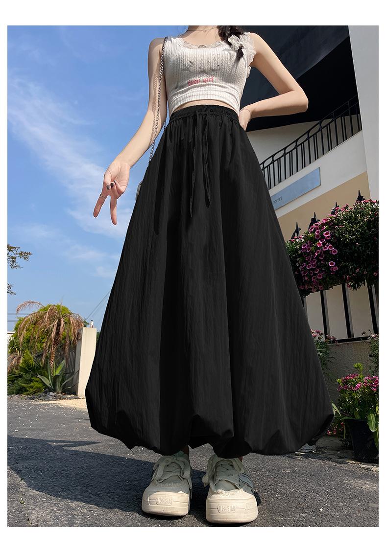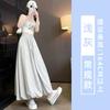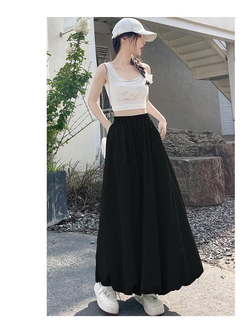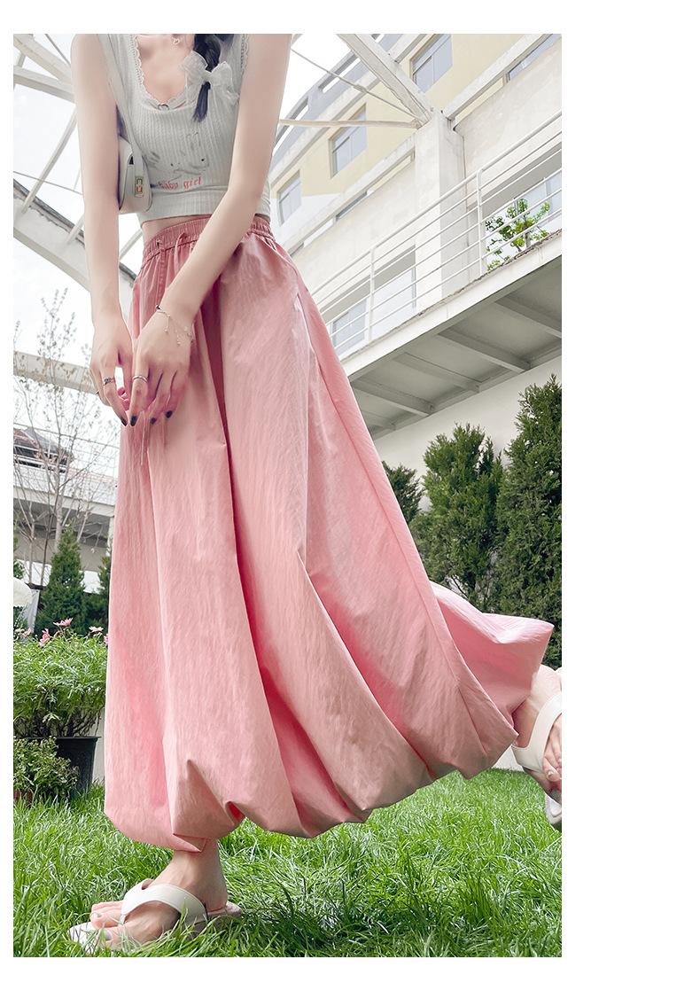 Vestido Azul de Flor Abullonada Bute para Mujer Verano Delgado 2025 Nuevo Cintura Alta Línea A Largo Medio Linterna Falda de Seda Helada