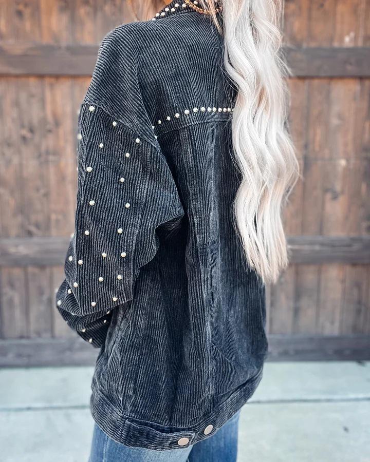 Chaqueta de pana con remaches de moda casual nueva de principios de otoño transfronteriza europea y americana 2025 22273