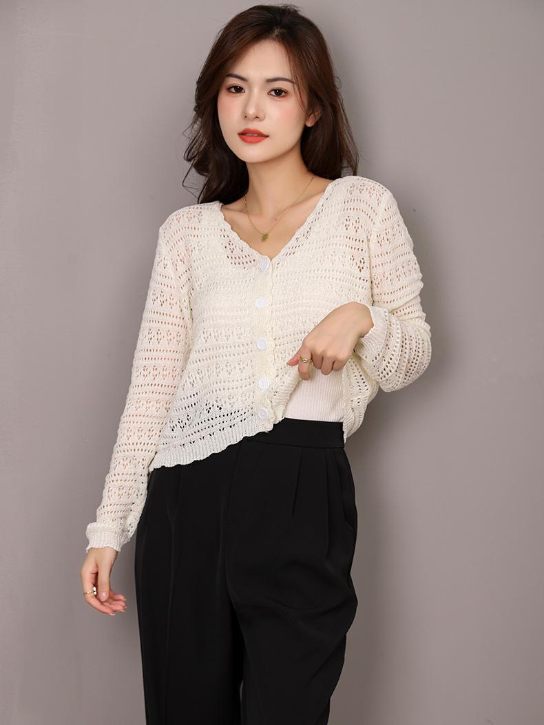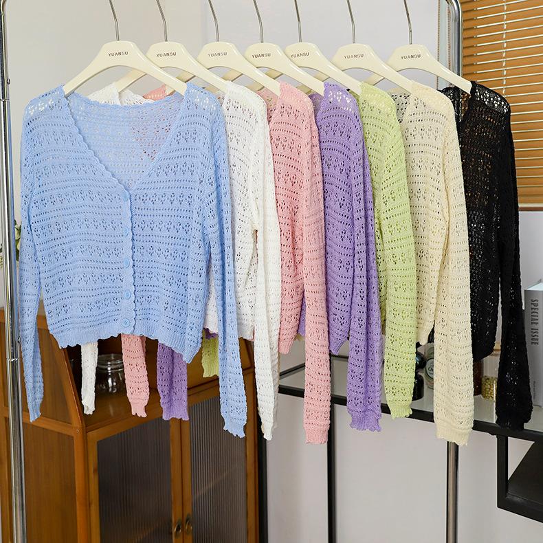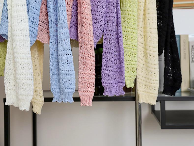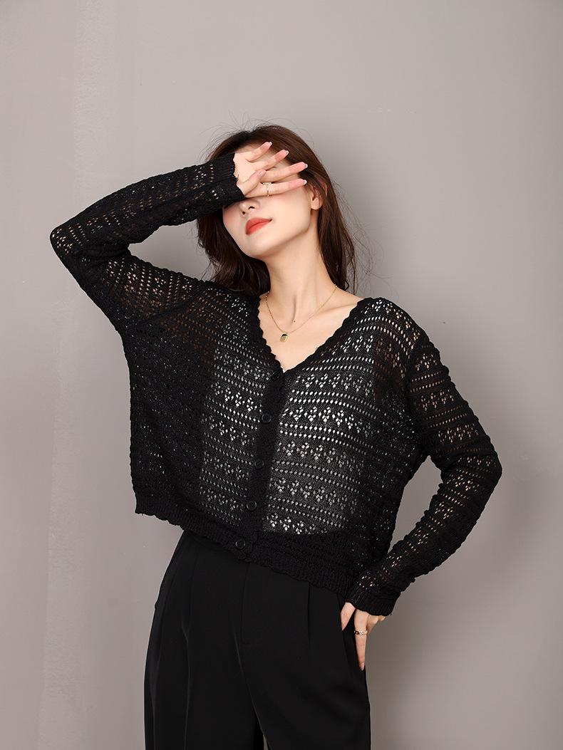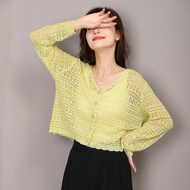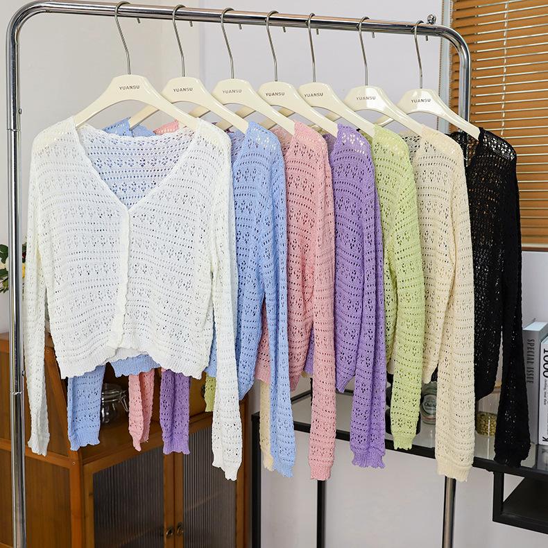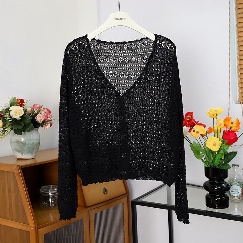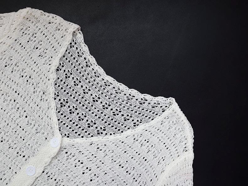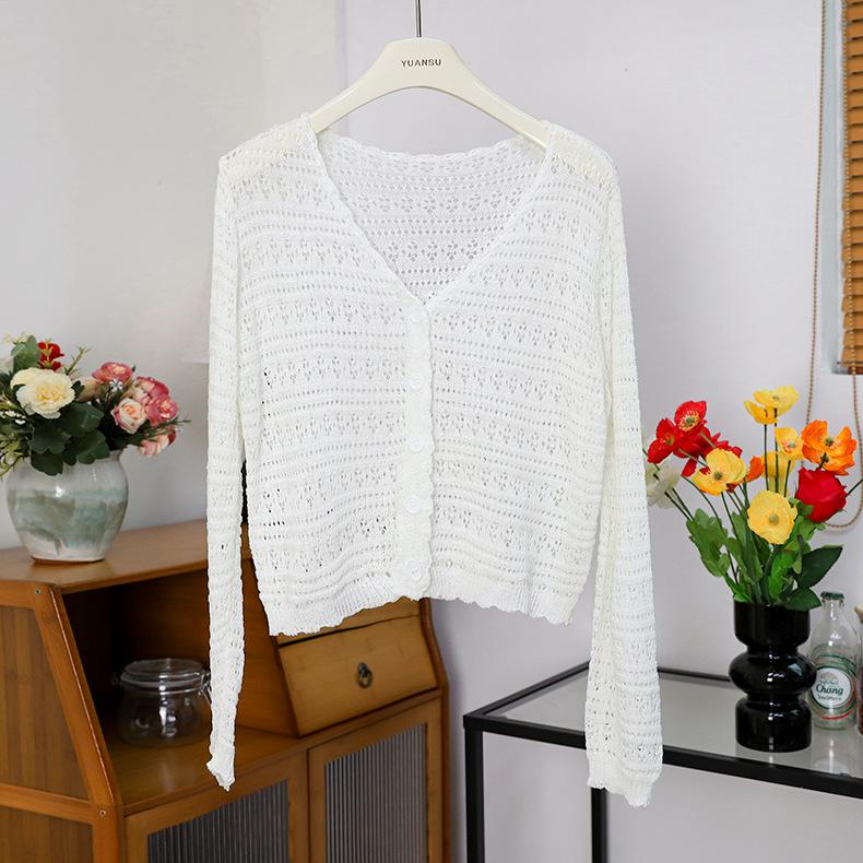 2025 Principios de Otoño Dopamina Wear Chaqueta Corta de Punto Calado Delgada y Más Fácil de Combinar con Falda con Tirantes y Camisa de Protección Solar