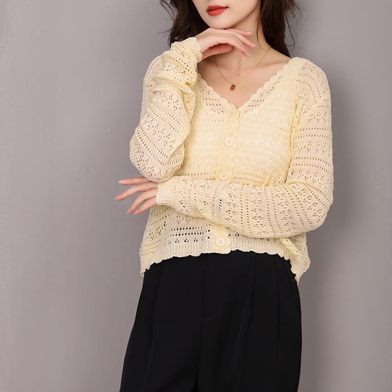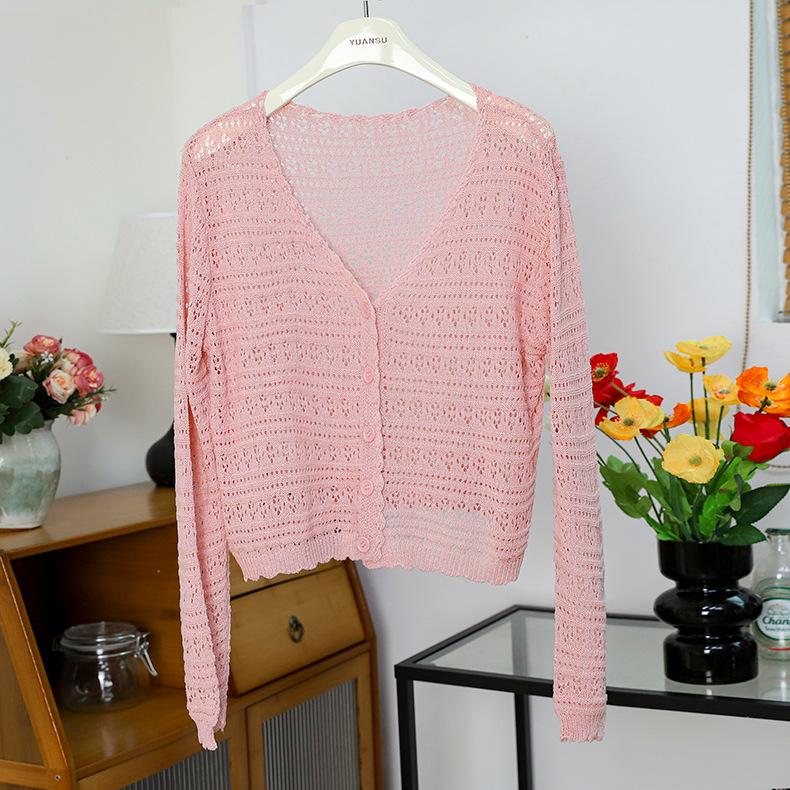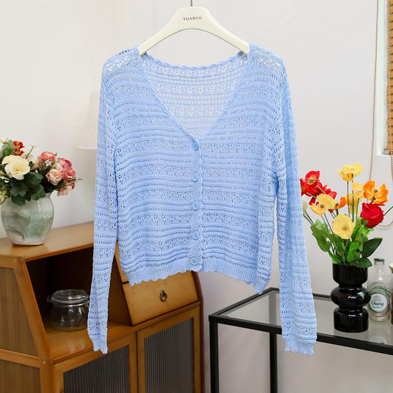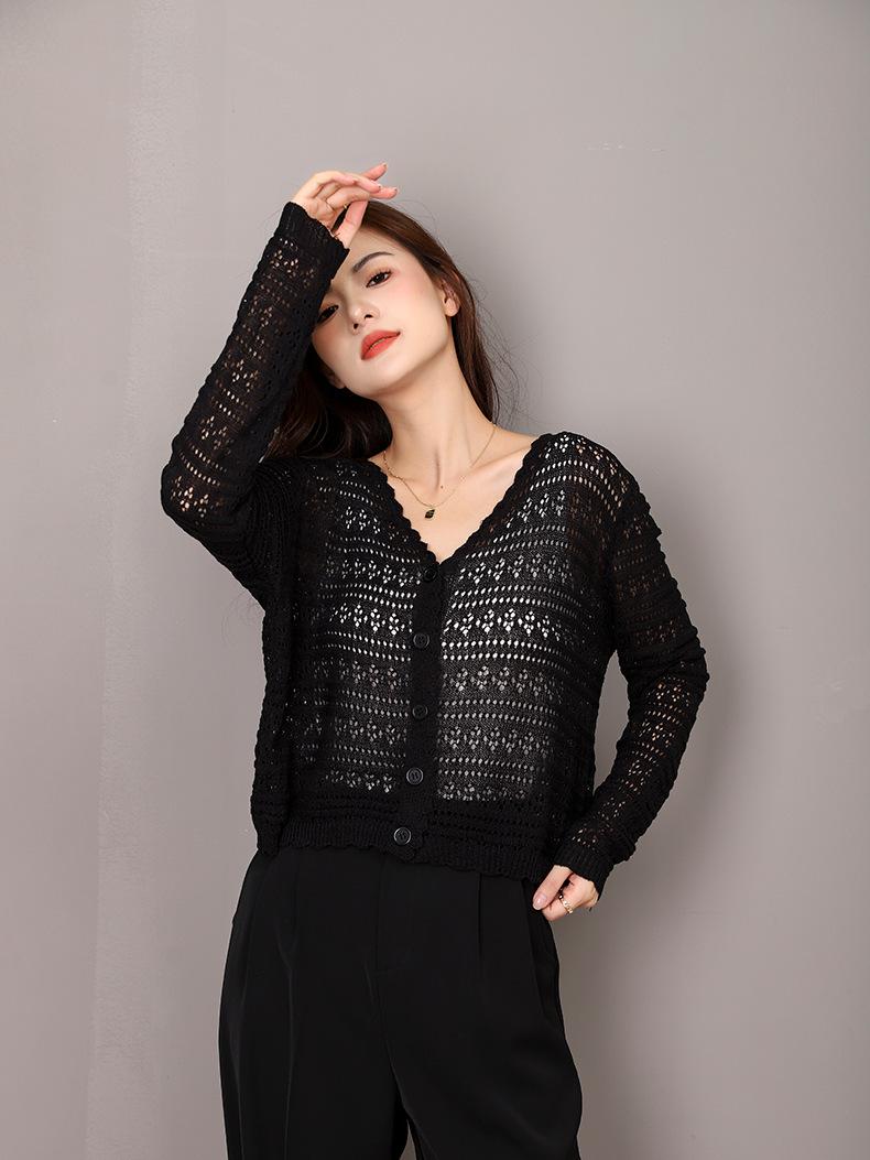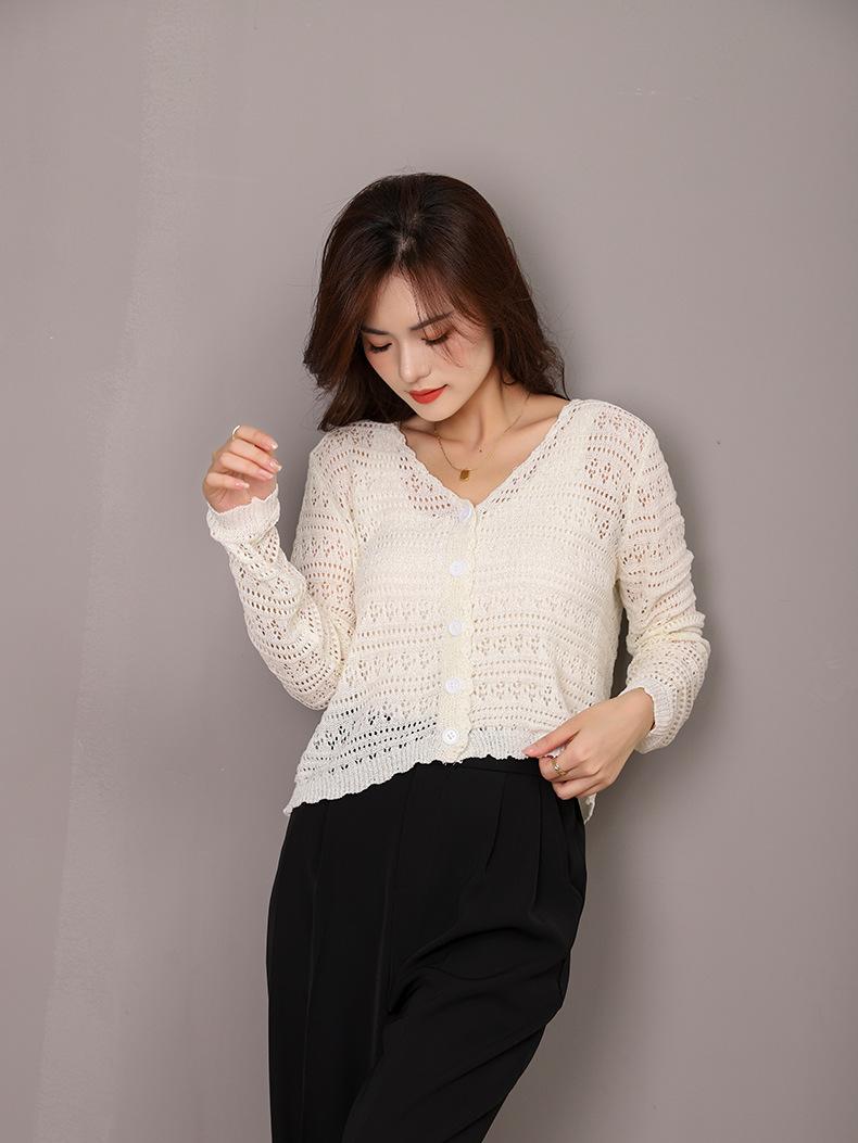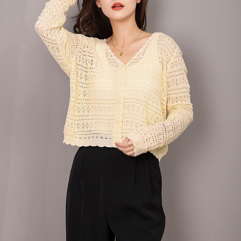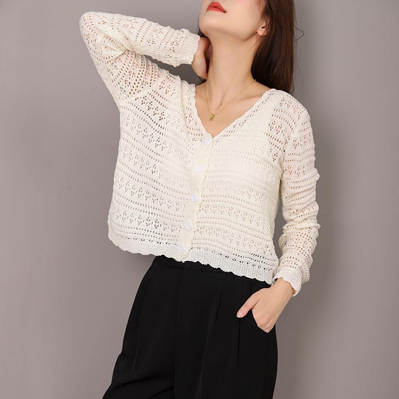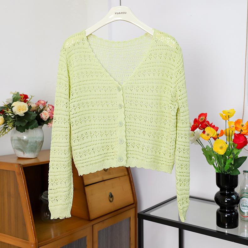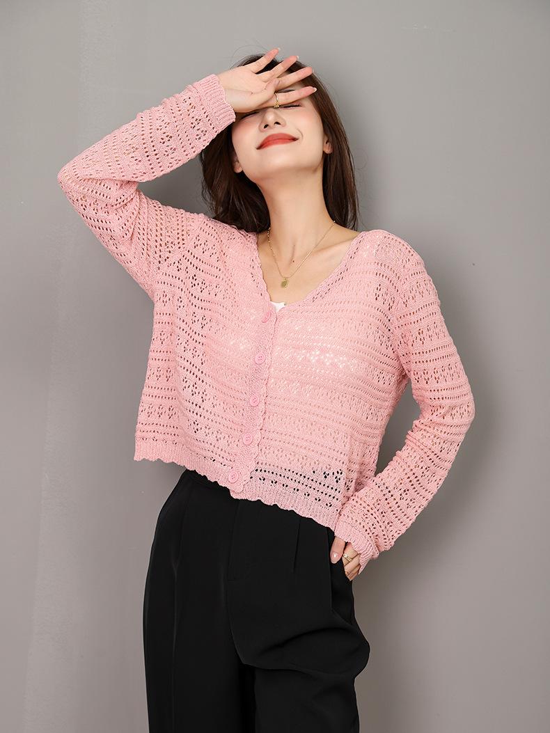 2025 Principios de Otoño Dopamina Wear Chaqueta Corta de Punto Calado Delgada y Más Fácil de Combinar con Falda con Tirantes y Camisa de Protección Solar