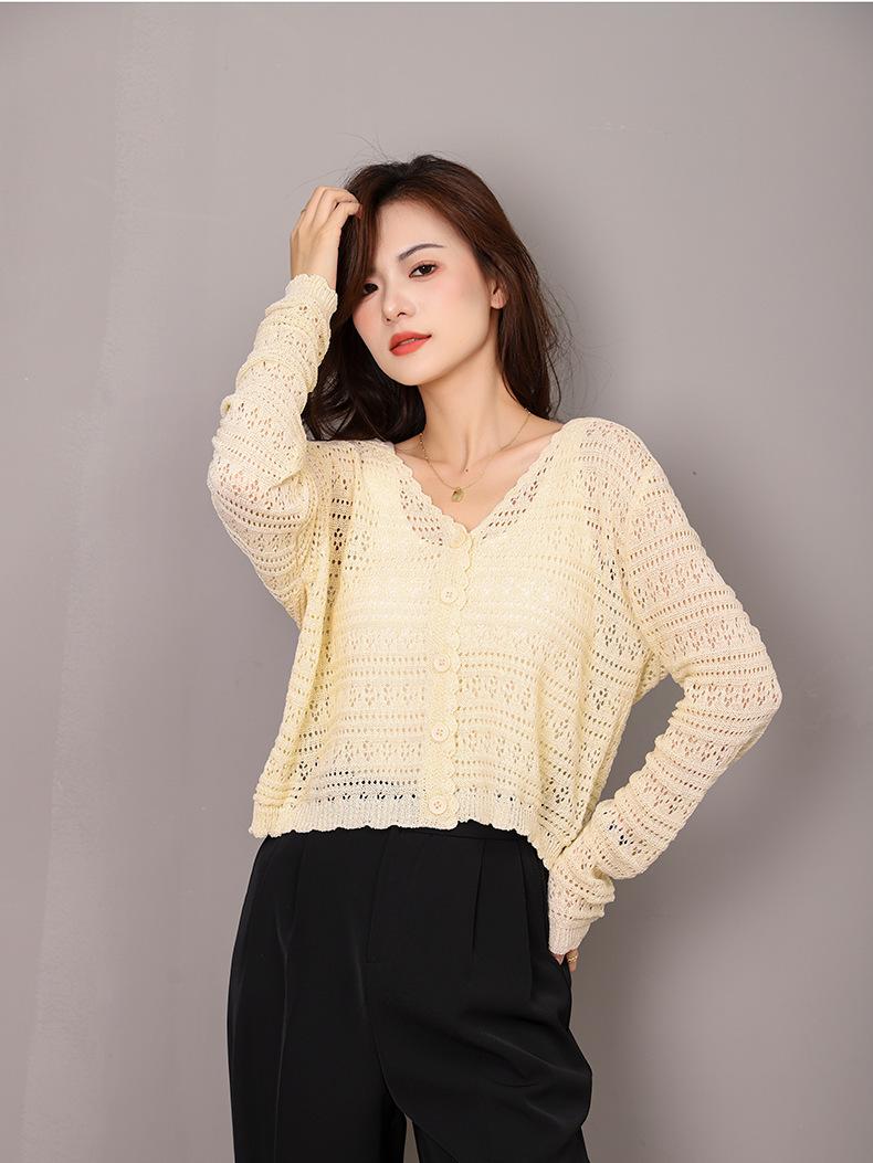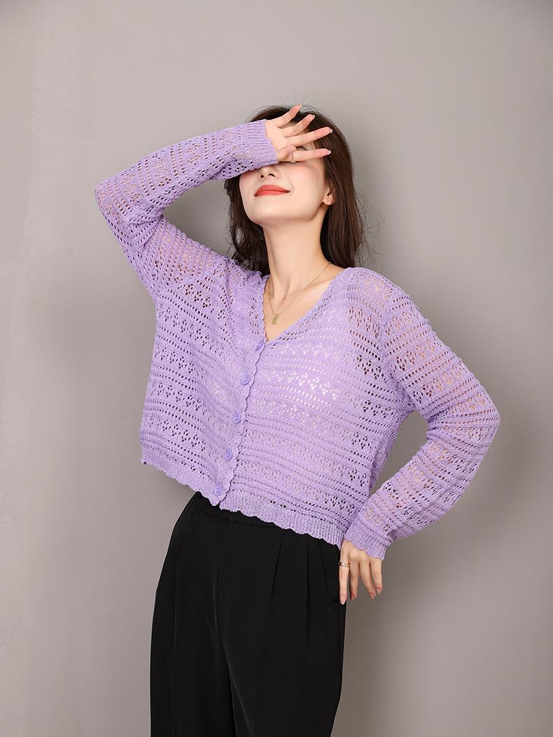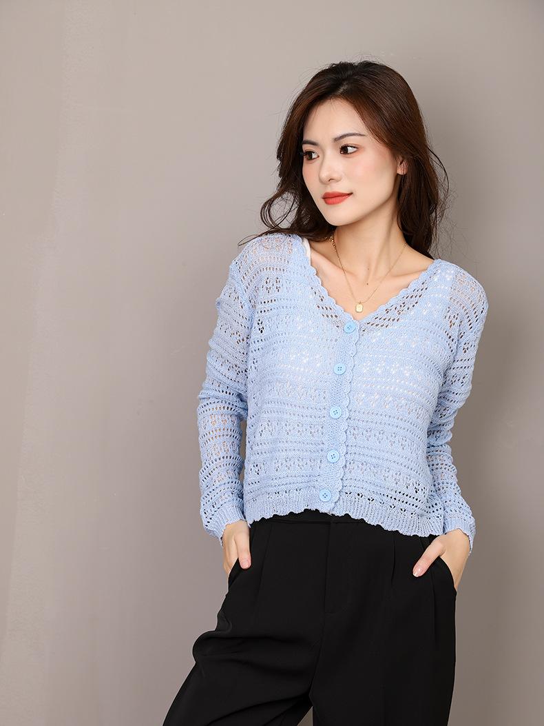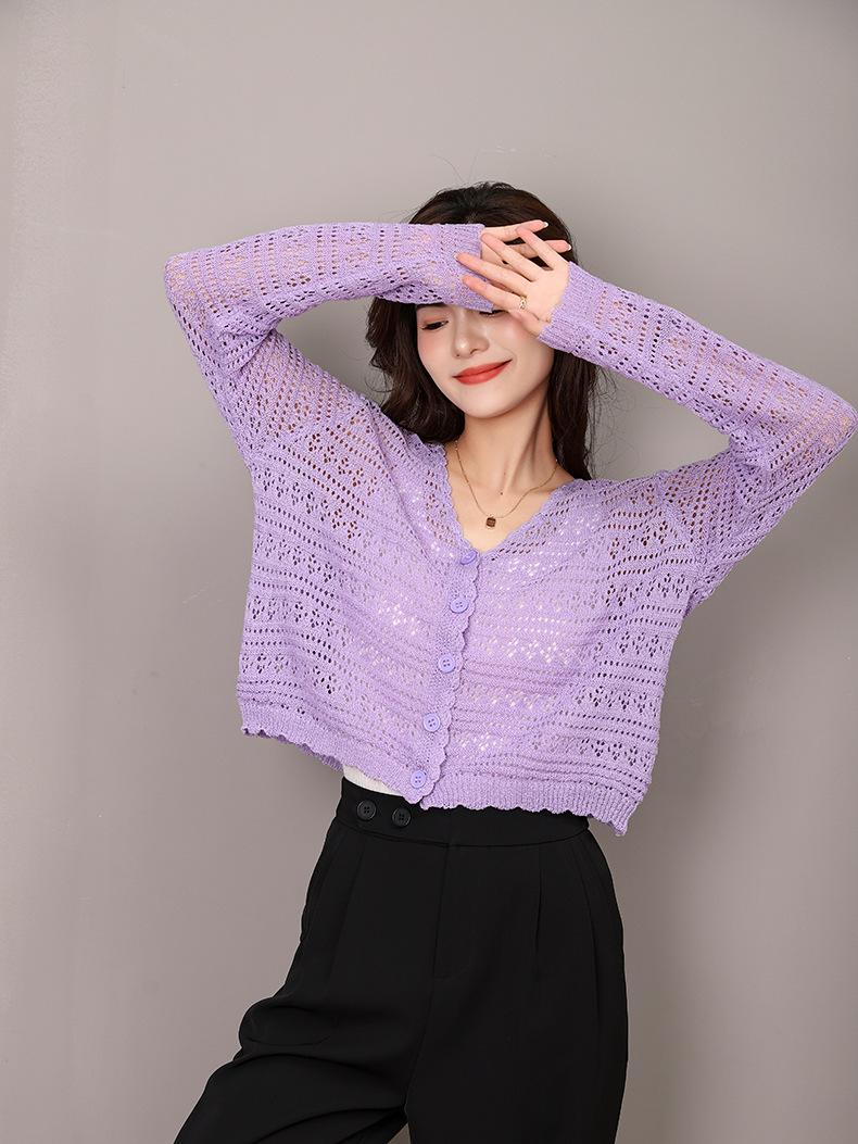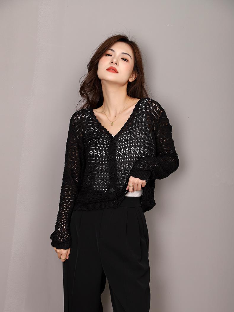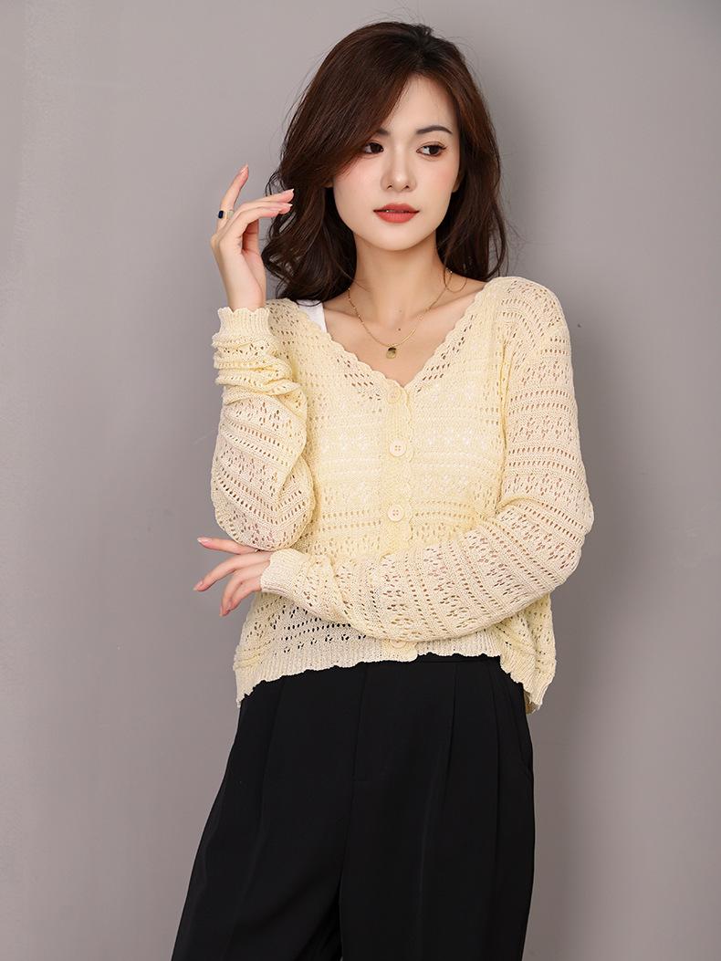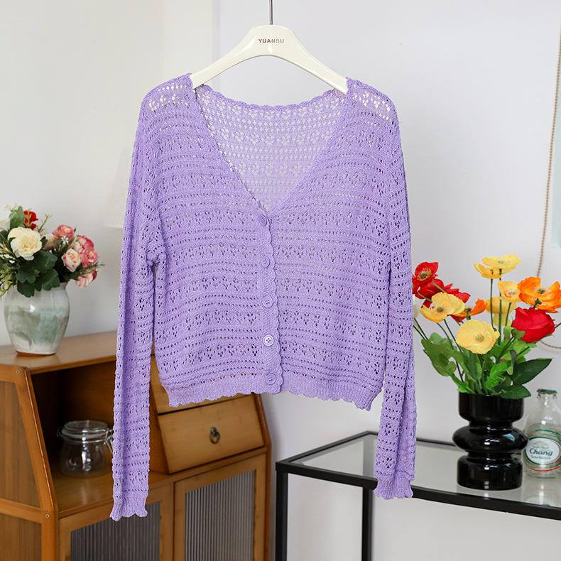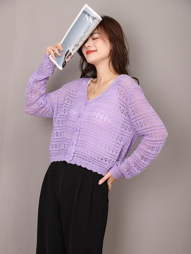 2025 Principios de Otoño Dopamina Wear Chaqueta Corta de Punto Calado Delgada y Más Fácil de Combinar con Falda con Tirantes y Camisa de Protección Solar