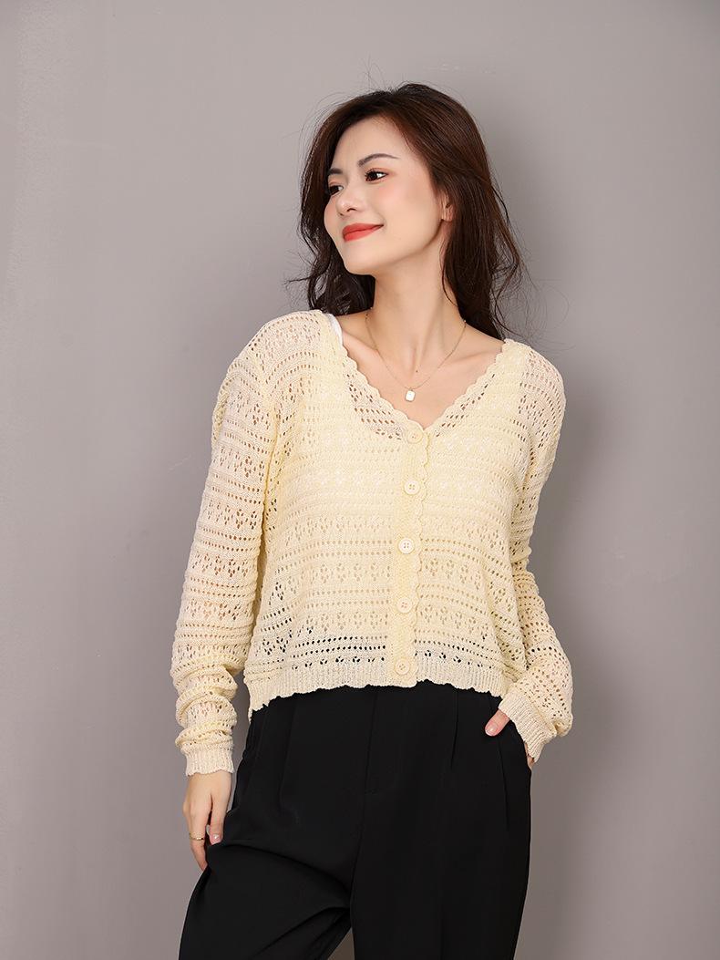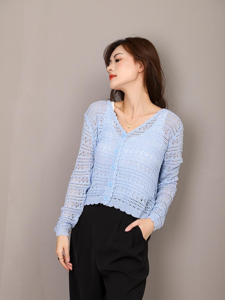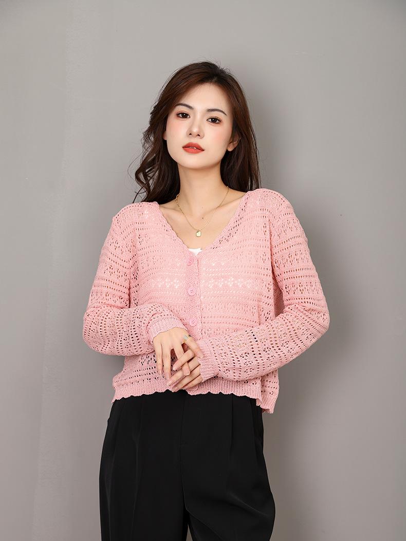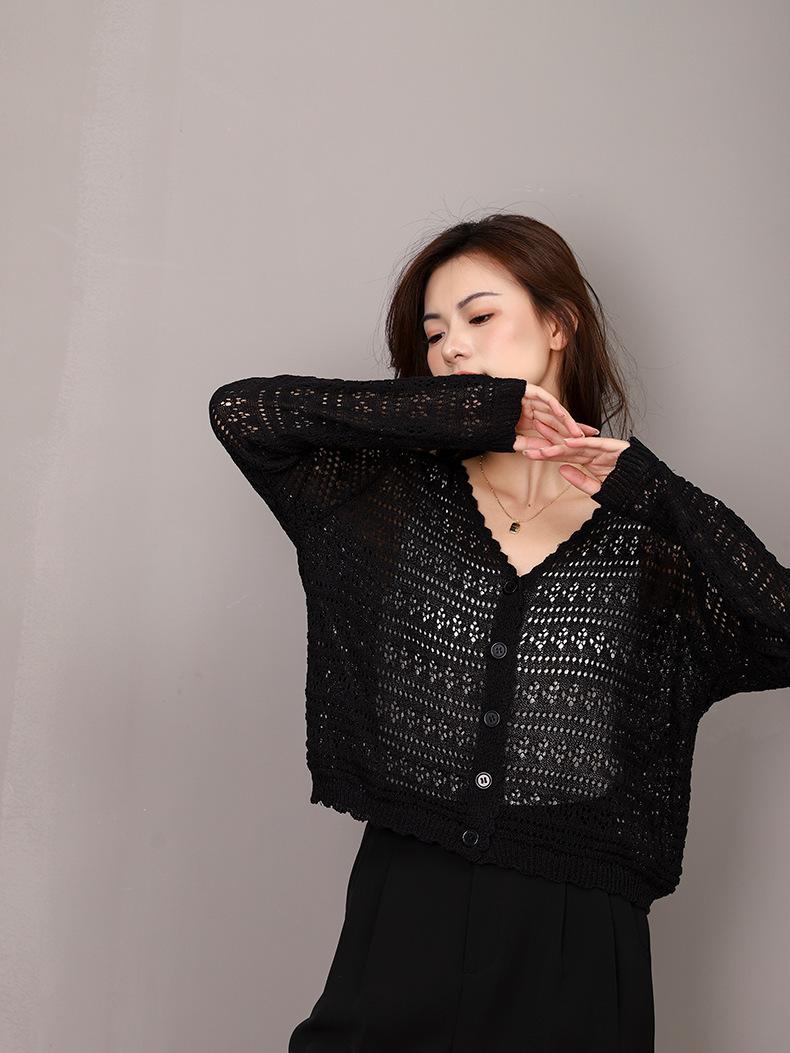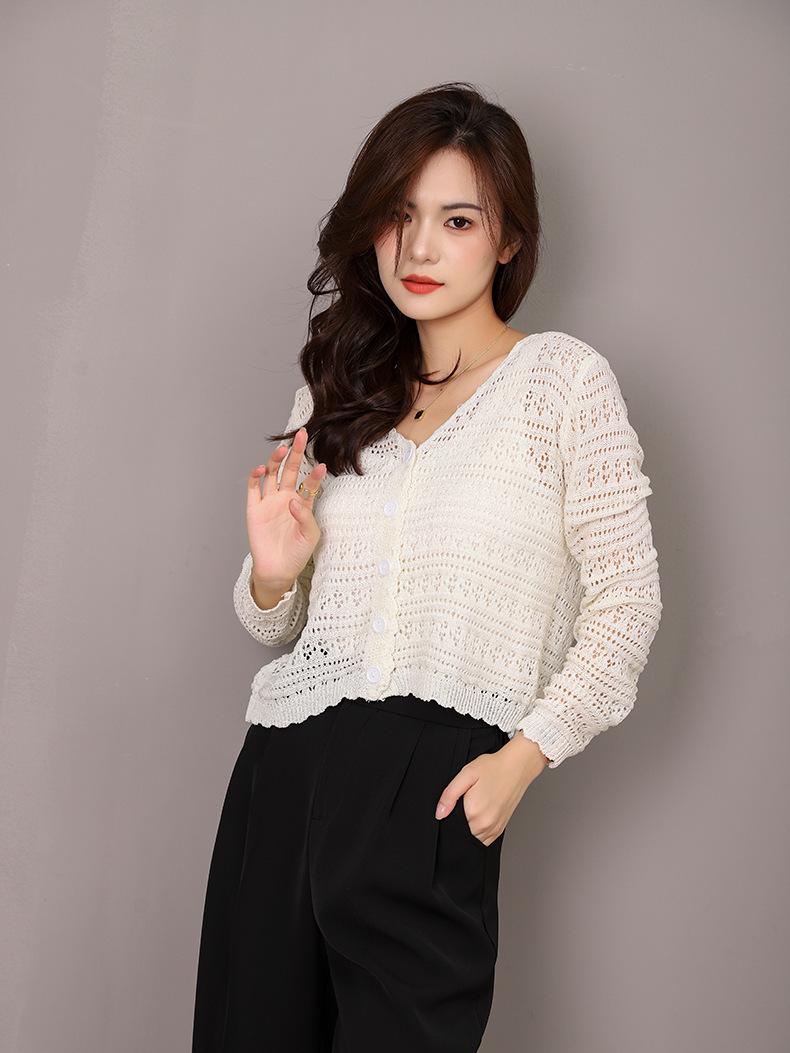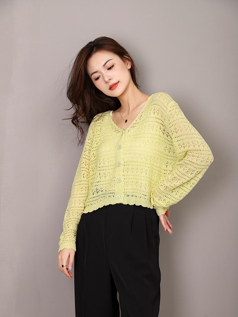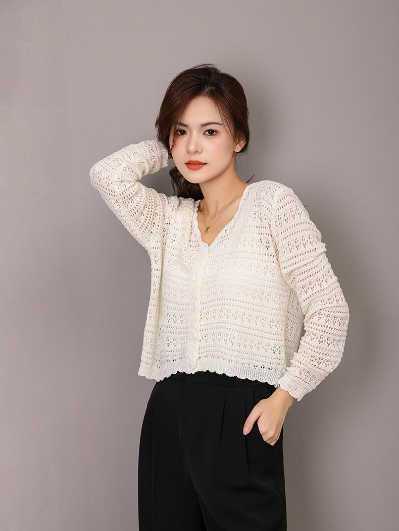 2025 Principios de Otoño Dopamina Wear Chaqueta Corta de Punto Calado Delgada y Más Fácil de Combinar con Falda con Tirantes y Camisa de Protección Solar