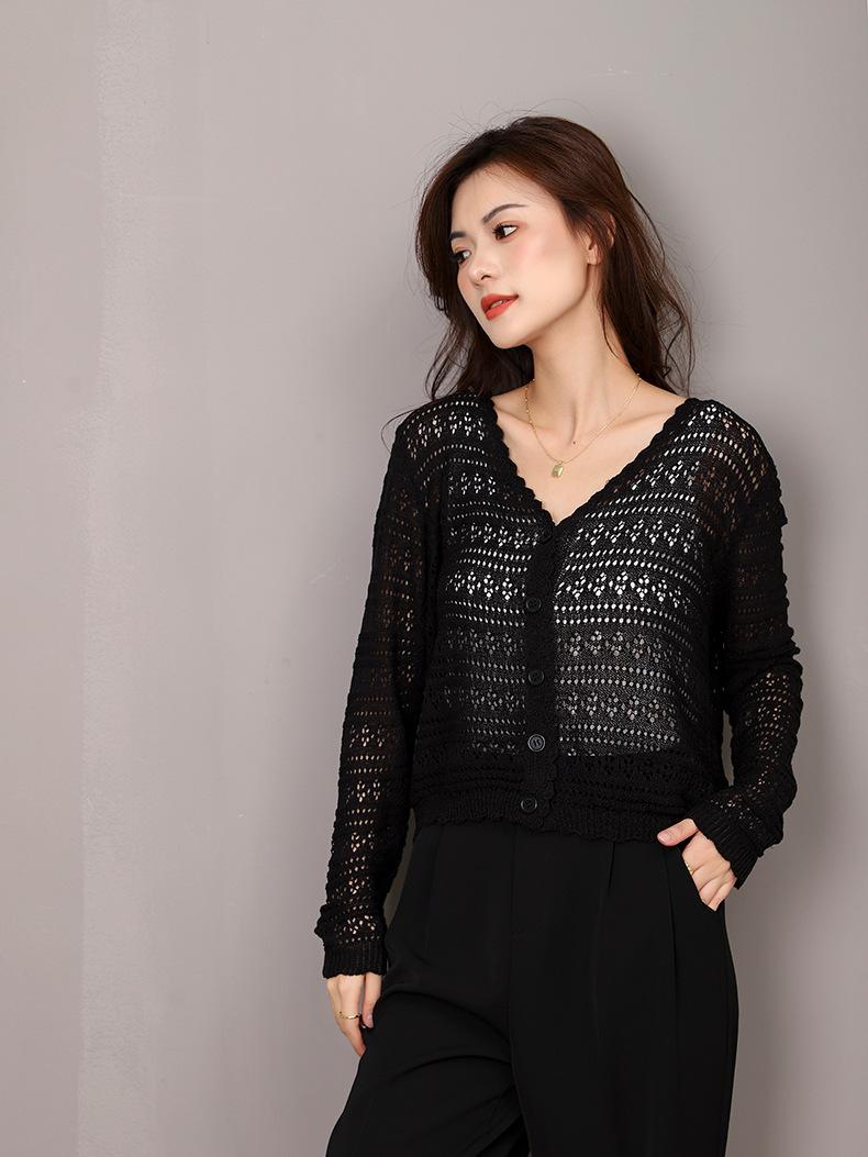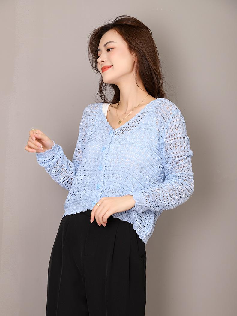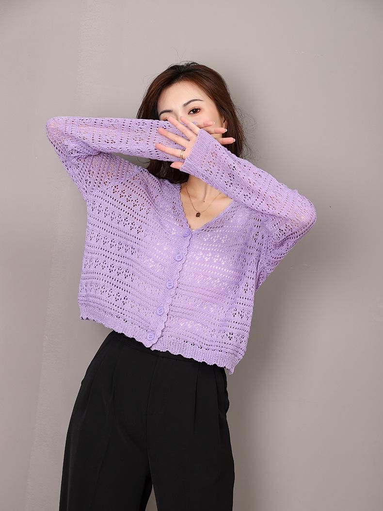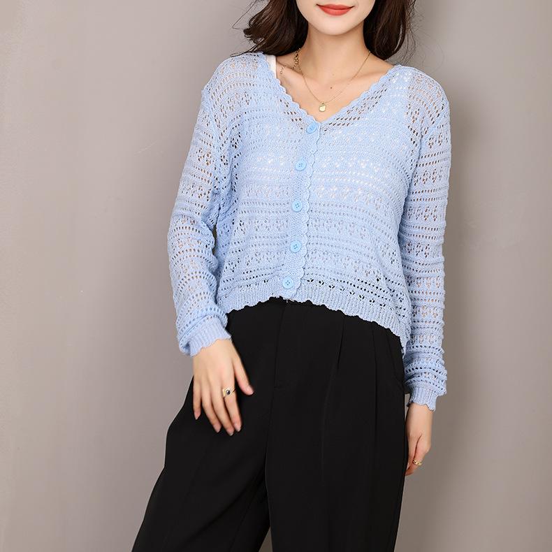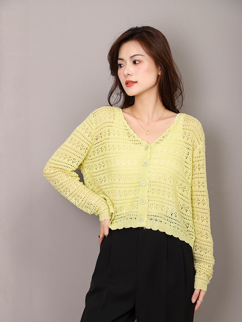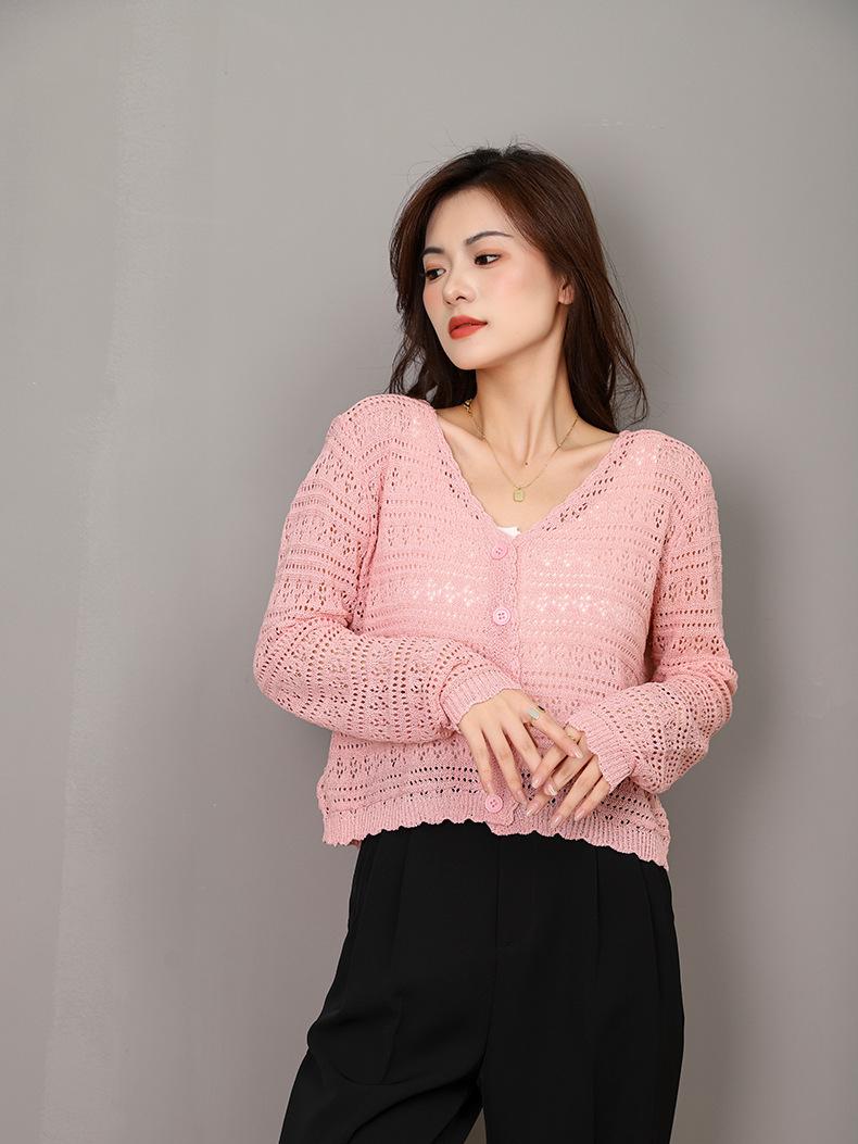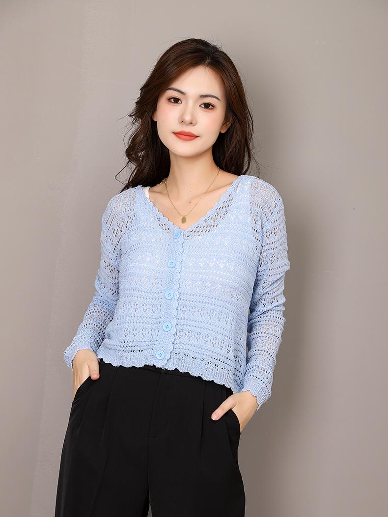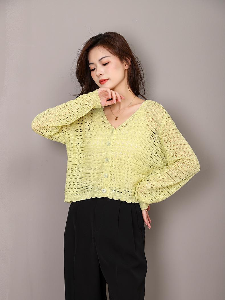 2025 Principios de Otoño Dopamina Wear Chaqueta Corta de Punto Calado Delgada y Más Fácil de Combinar con Falda con Tirantes y Camisa de Protección Solar