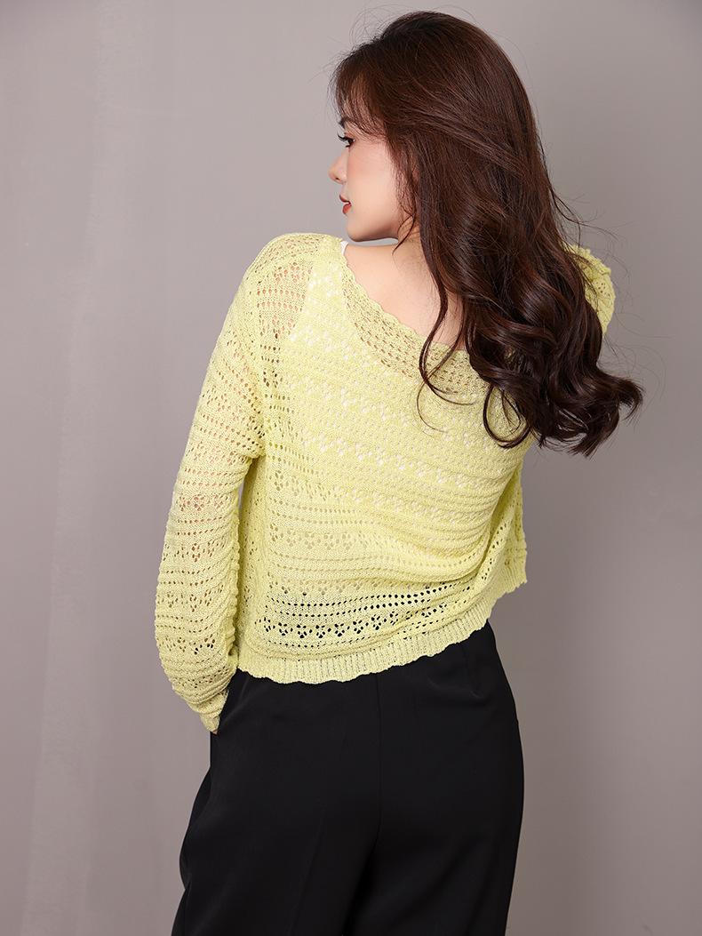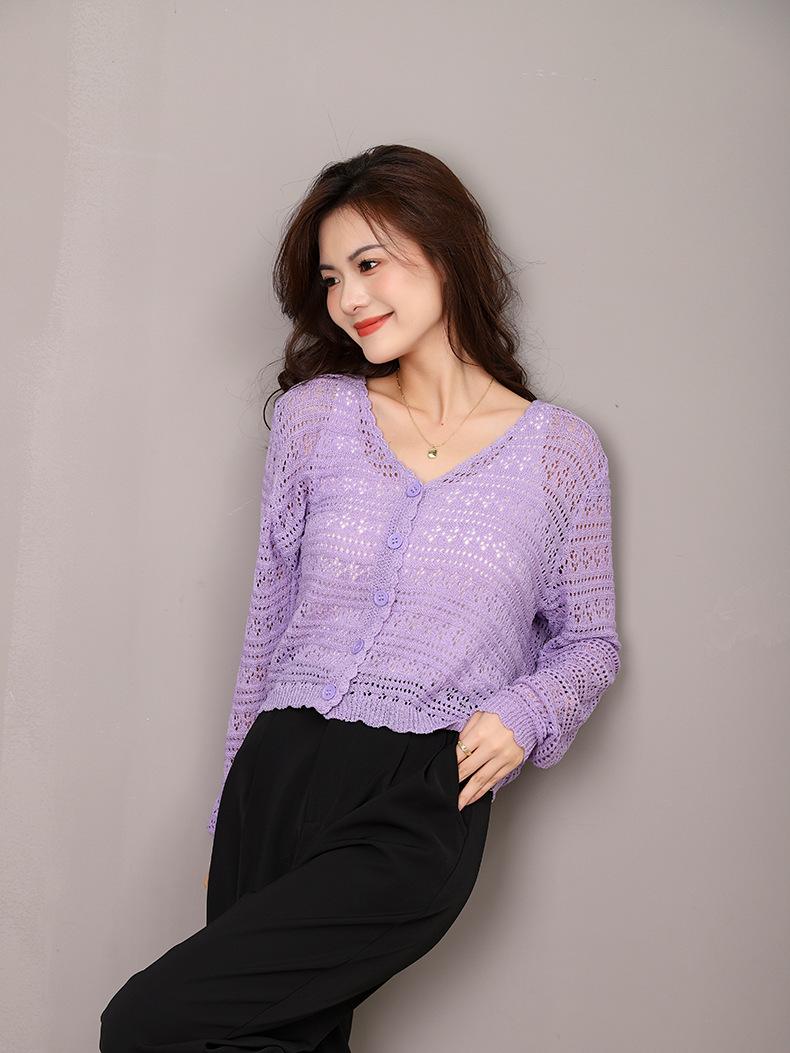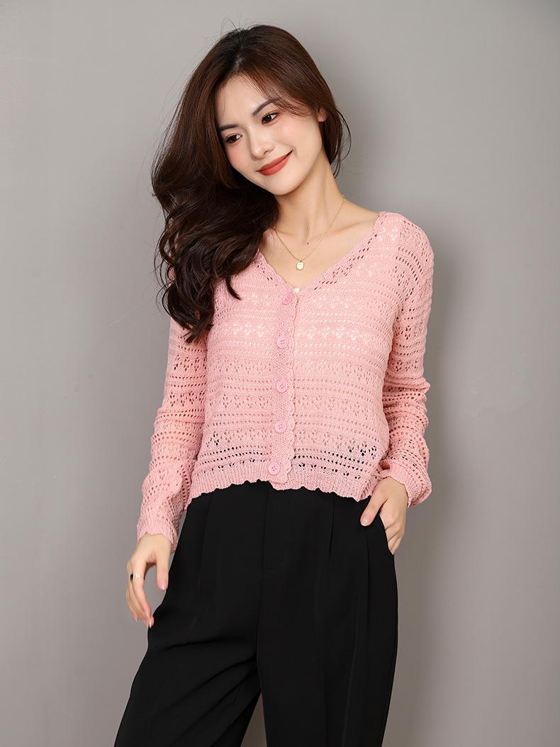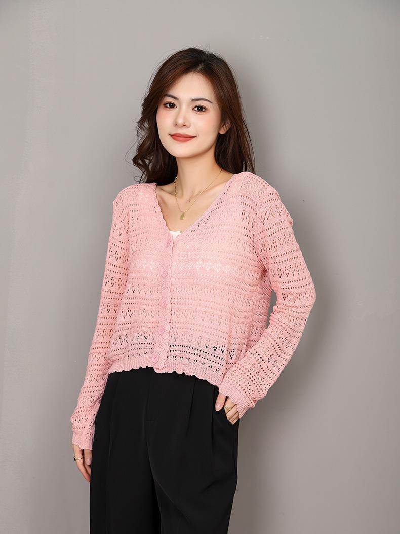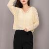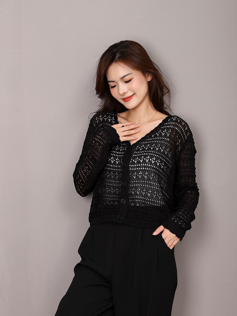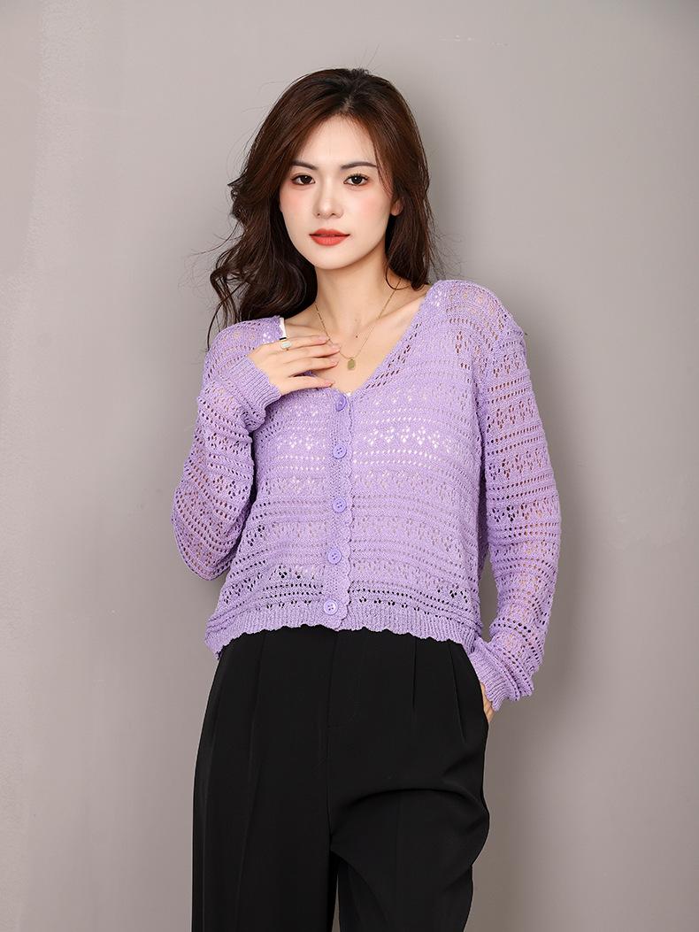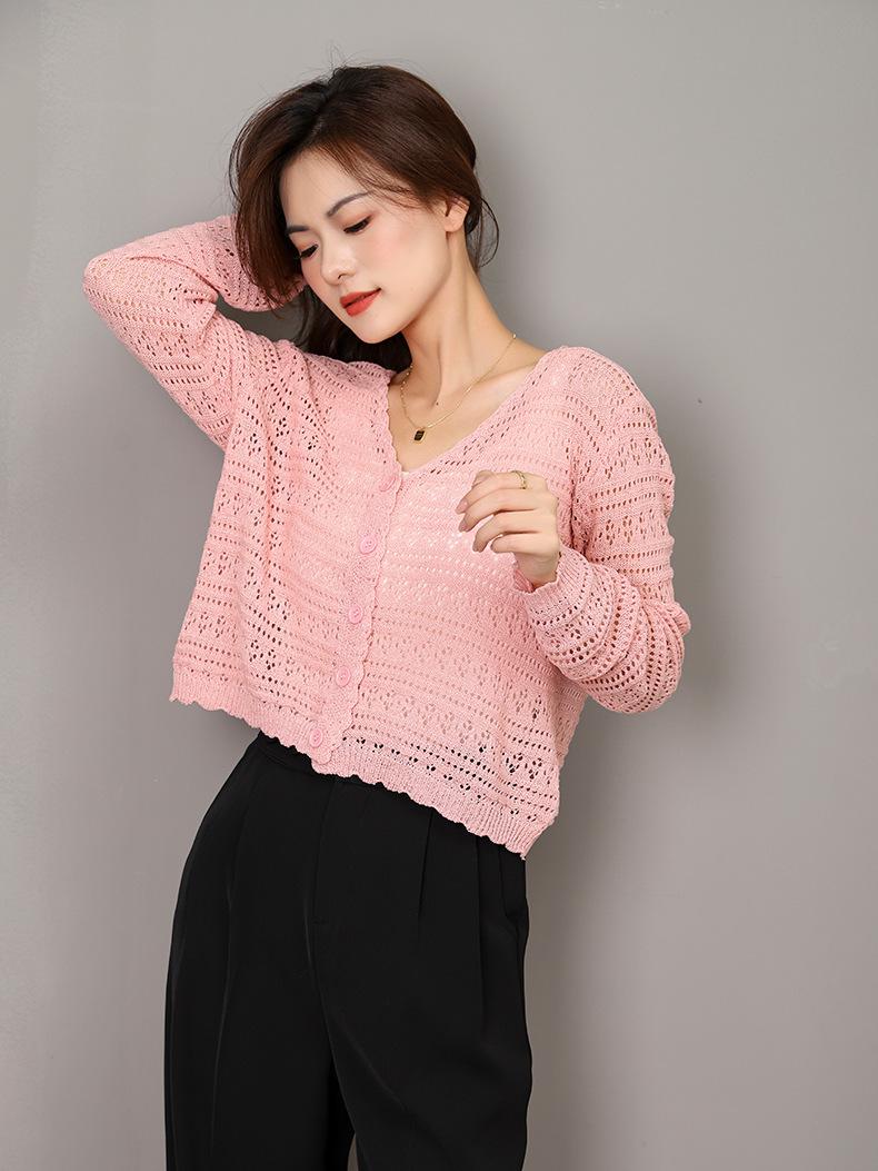 2025 Principios de Otoño Dopamina Wear Chaqueta Corta de Punto Calado Delgada y Más Fácil de Combinar con Falda con Tirantes y Camisa de Protección Solar