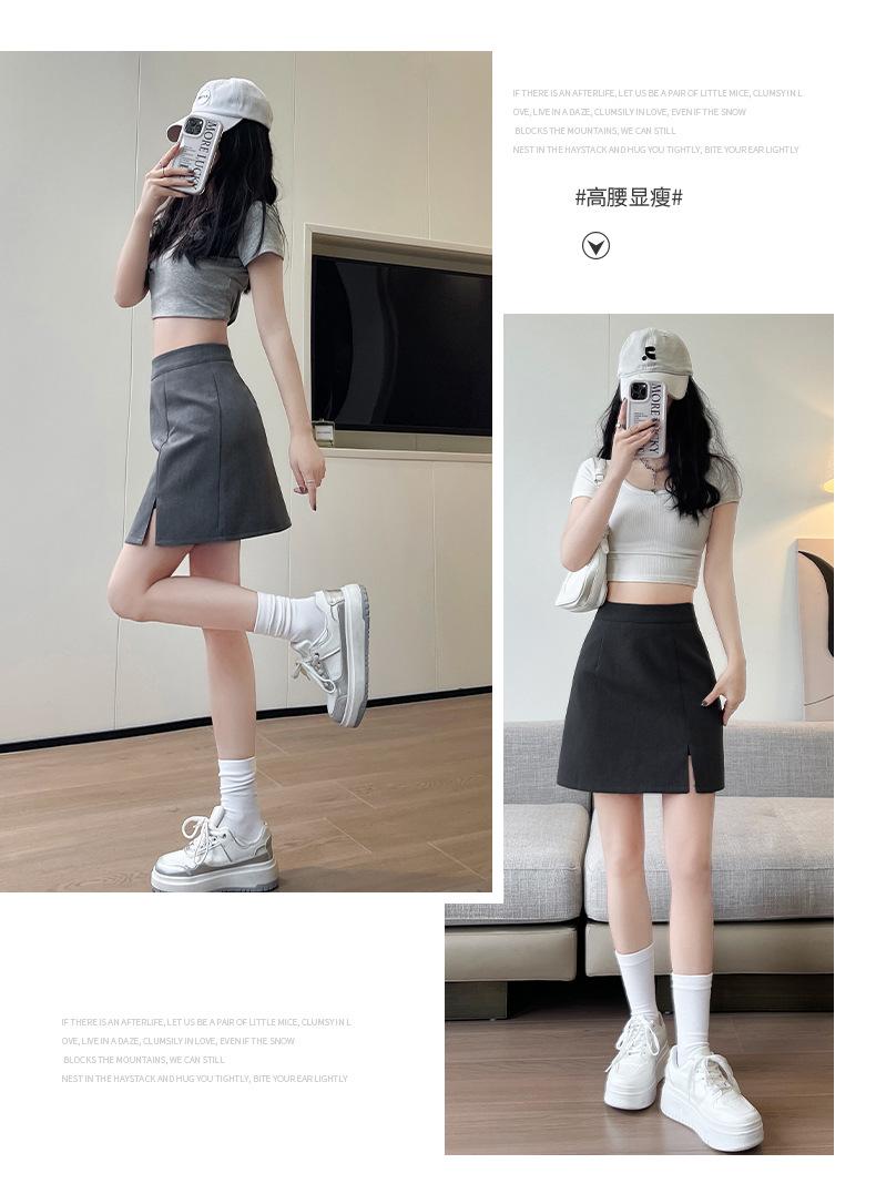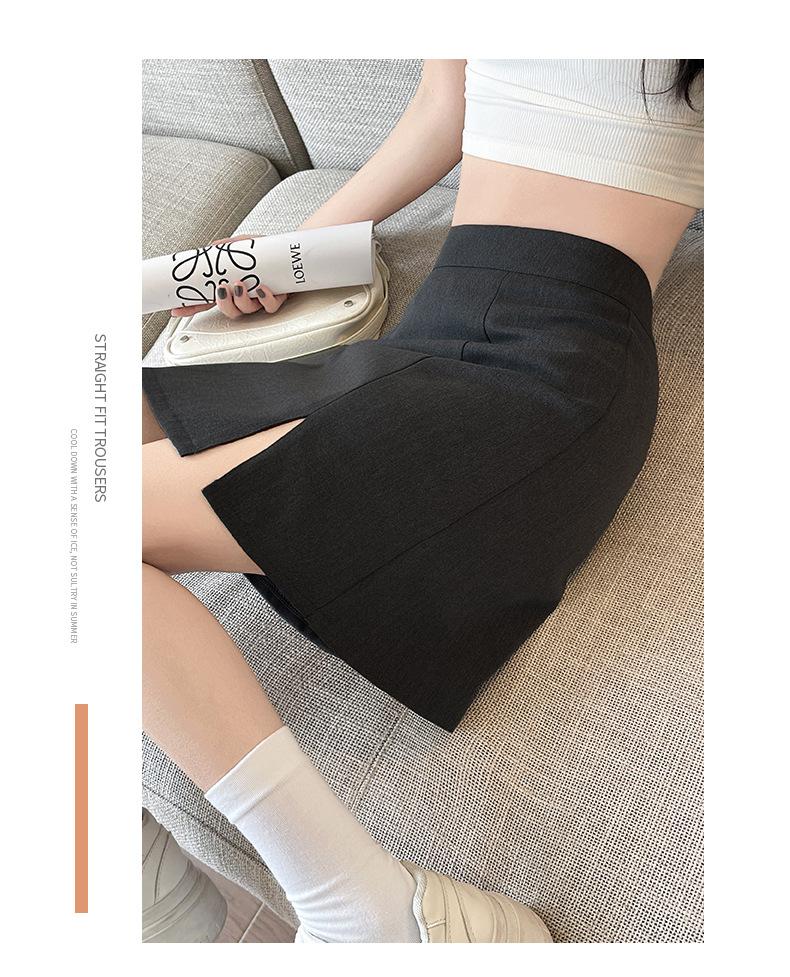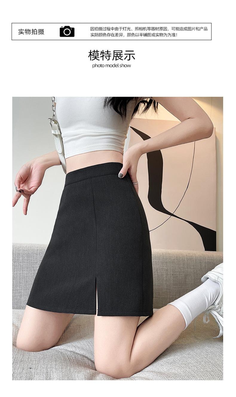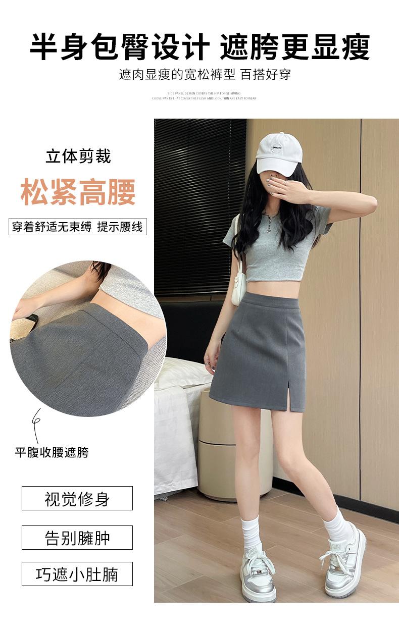 Falda Dividida de Cintura Alta Primavera y Verano Falda Línea A Nueva Falda Tubo Ajustada Gris Antirreflejo Traje Falda Spice Girl