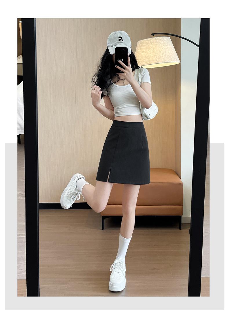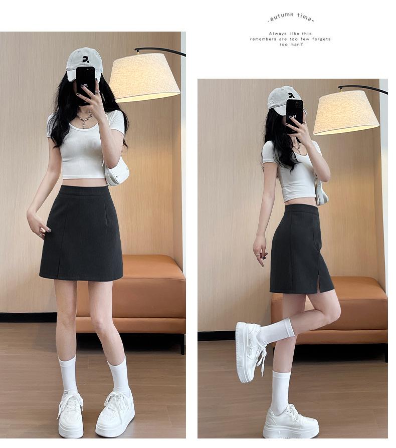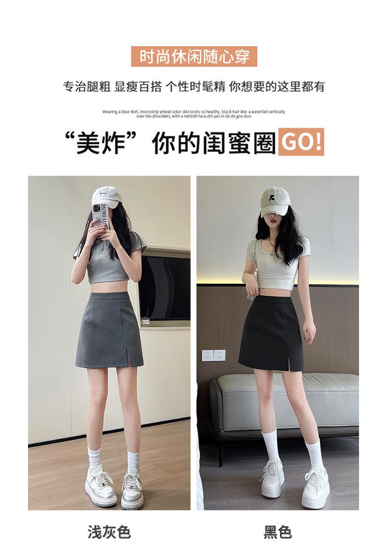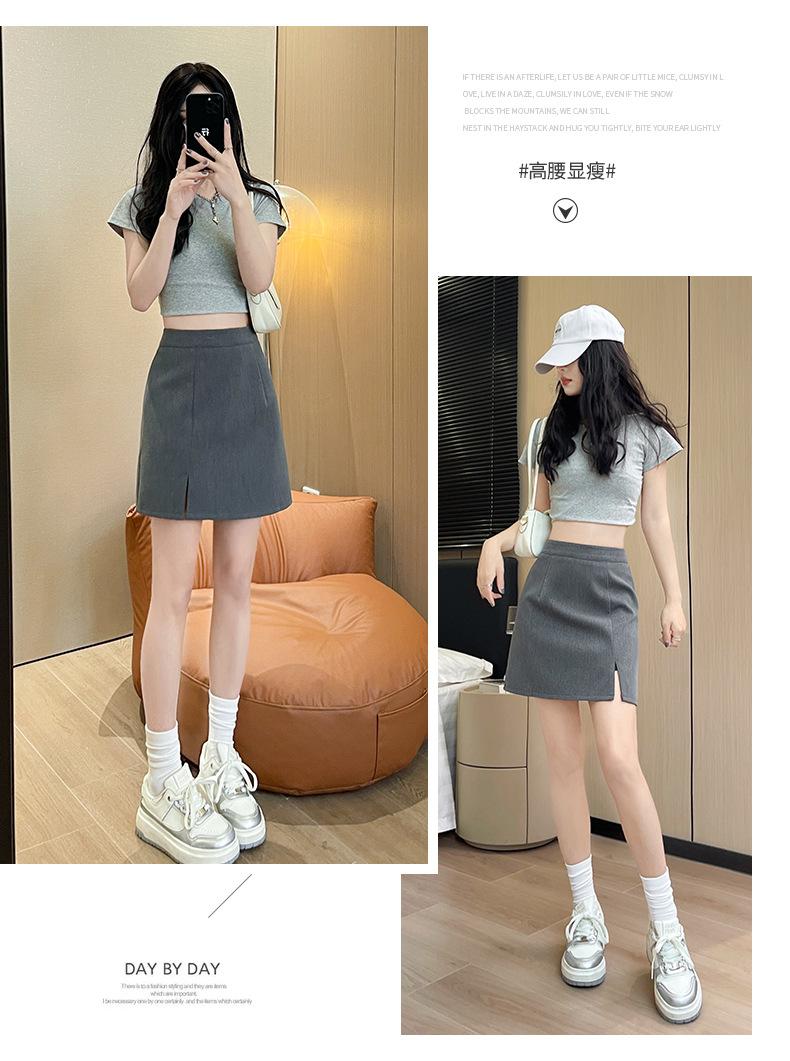 Falda Dividida de Cintura Alta Primavera y Verano Falda Línea A Nueva Falda Tubo Ajustada Gris Antirreflejo Traje Falda Spice Girl