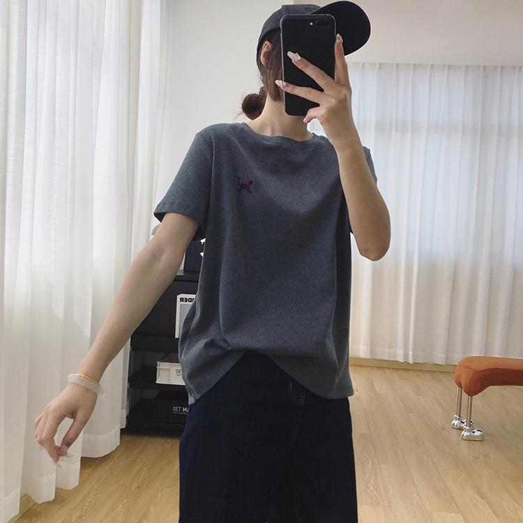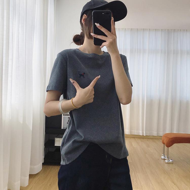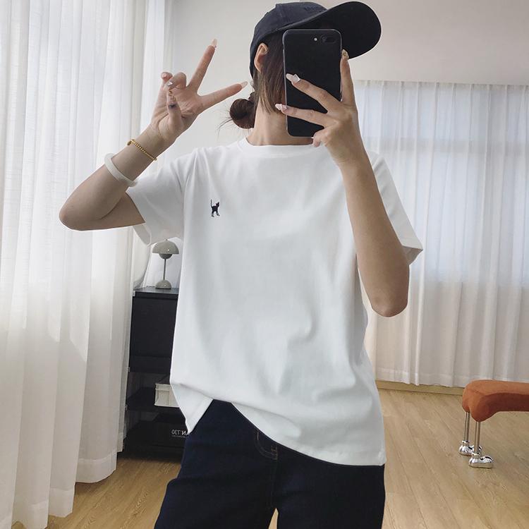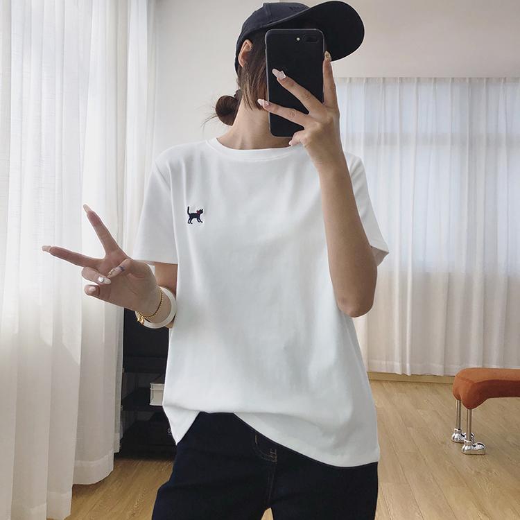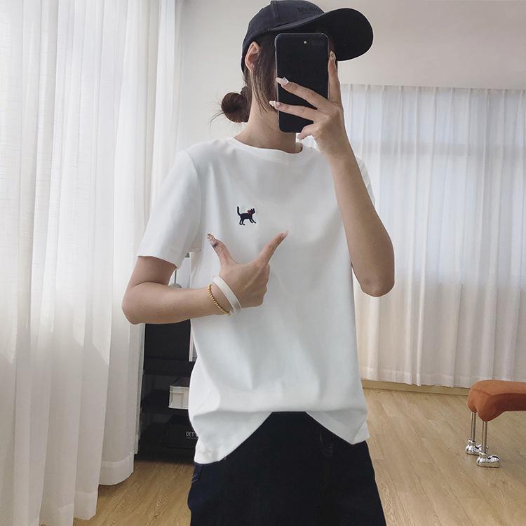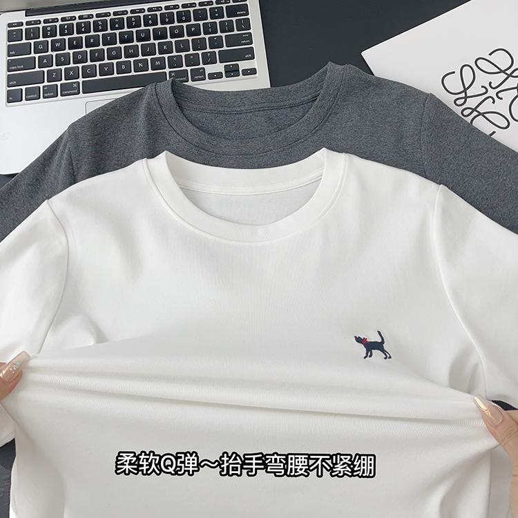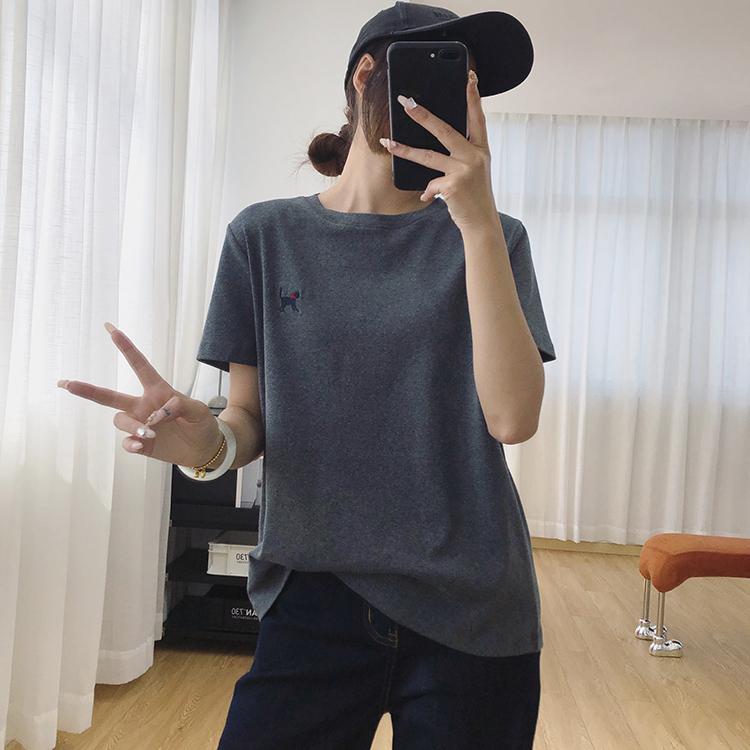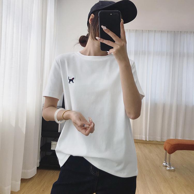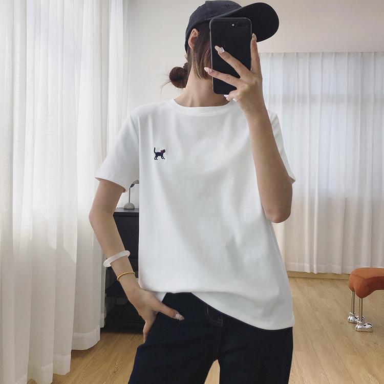 Camiseta de Manga Corta Casual Simple Bordada Suave y Delicada con la Piel para Mujer Verano Algodón 2025 Nueva Cuello Redondo Holgada para Verano