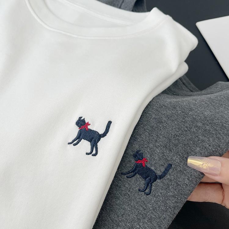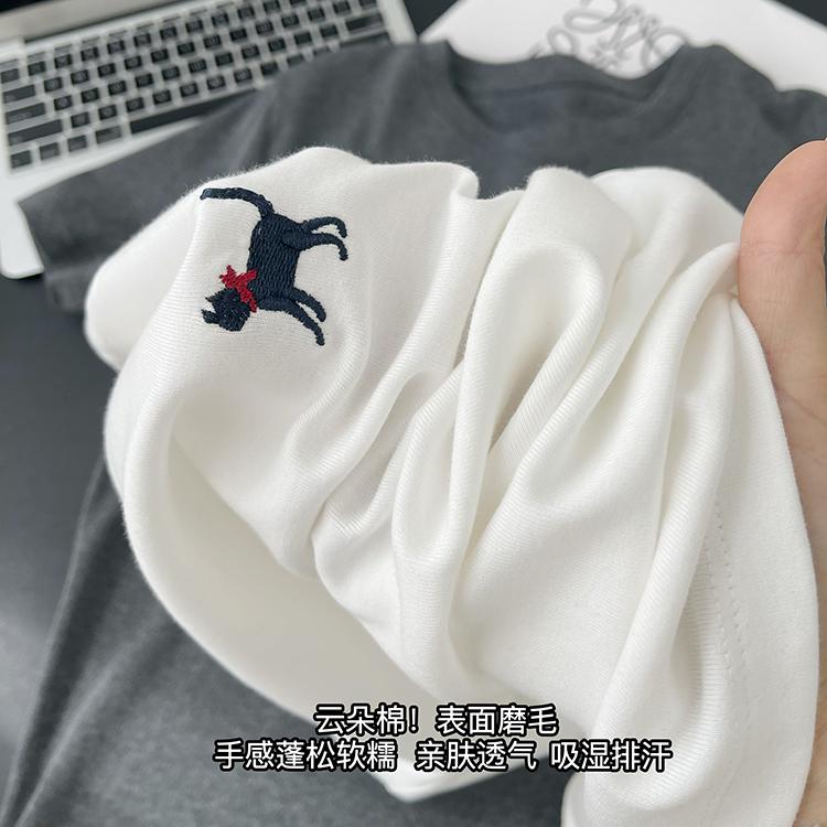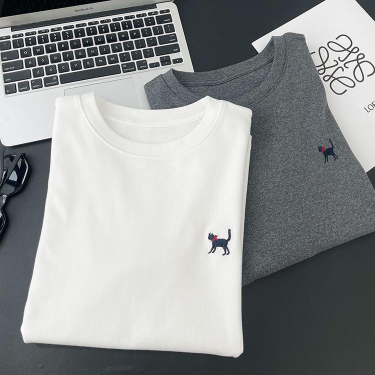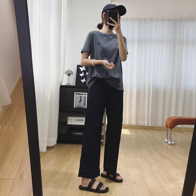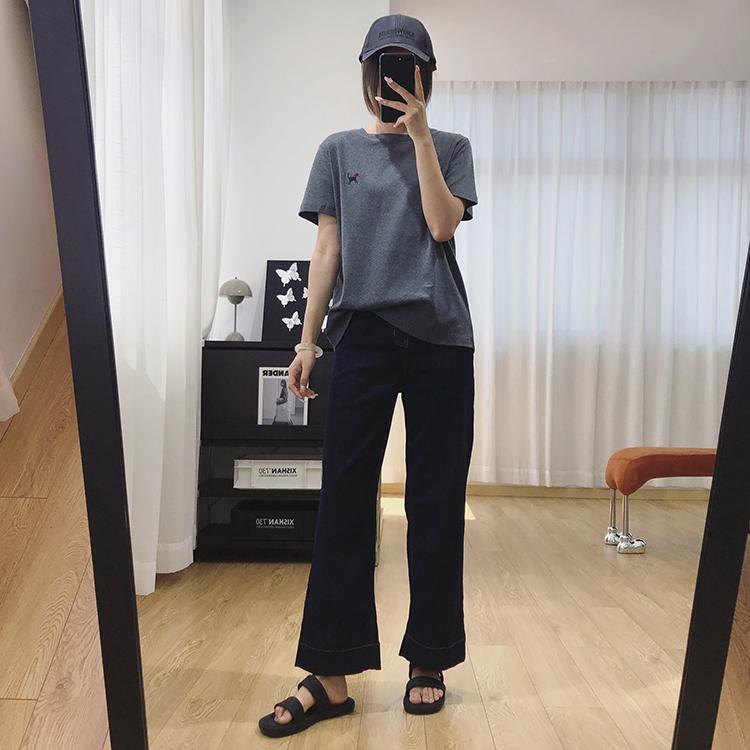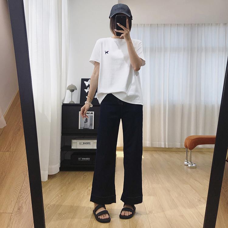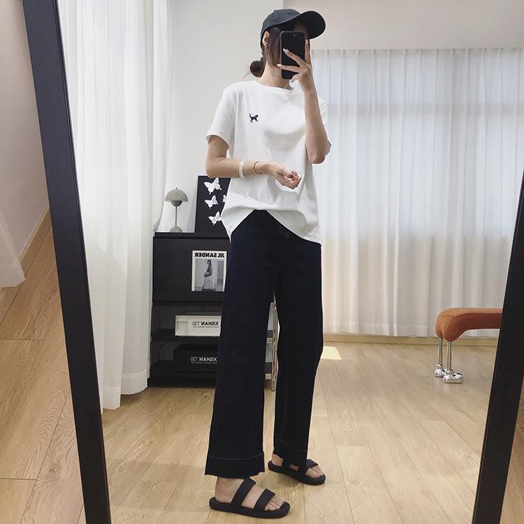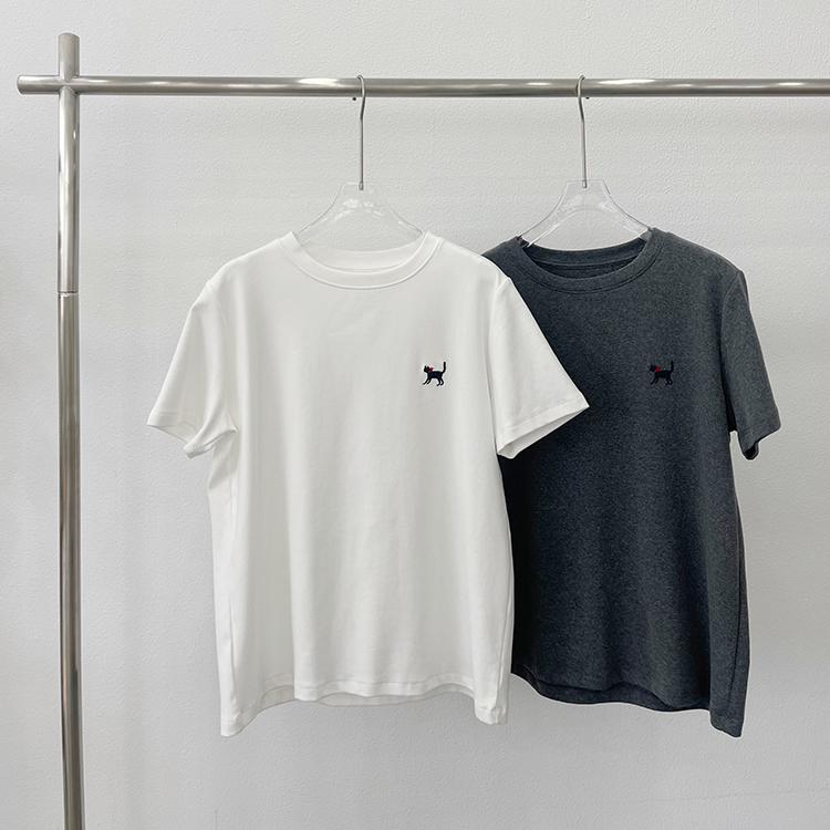 Camiseta de Manga Corta Casual Simple Bordada Suave y Delicada con la Piel para Mujer Verano Algodón 2025 Nueva Cuello Redondo Holgada para Verano